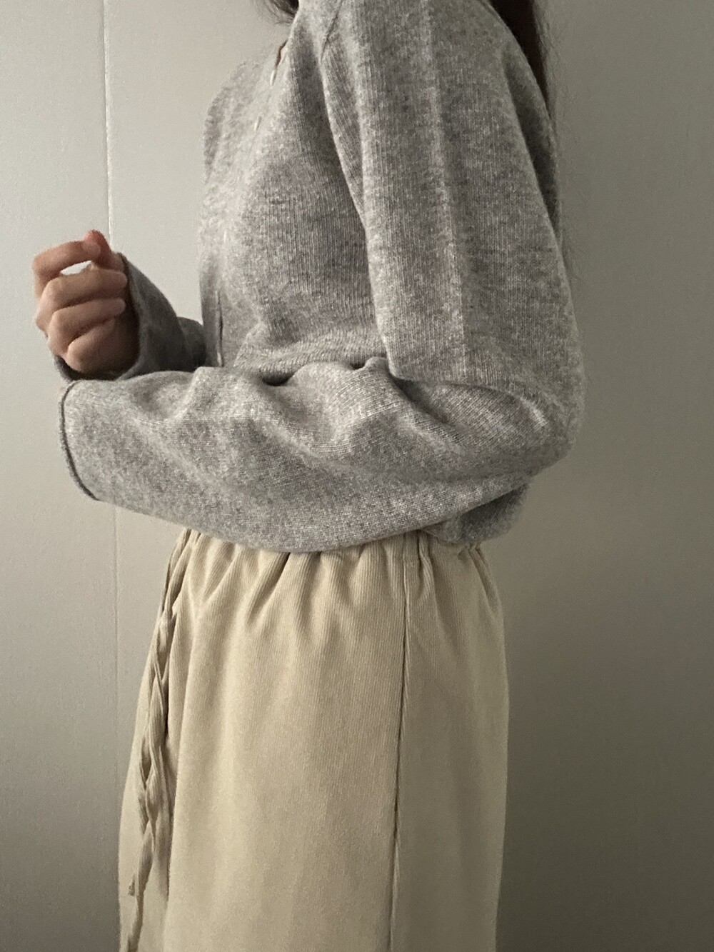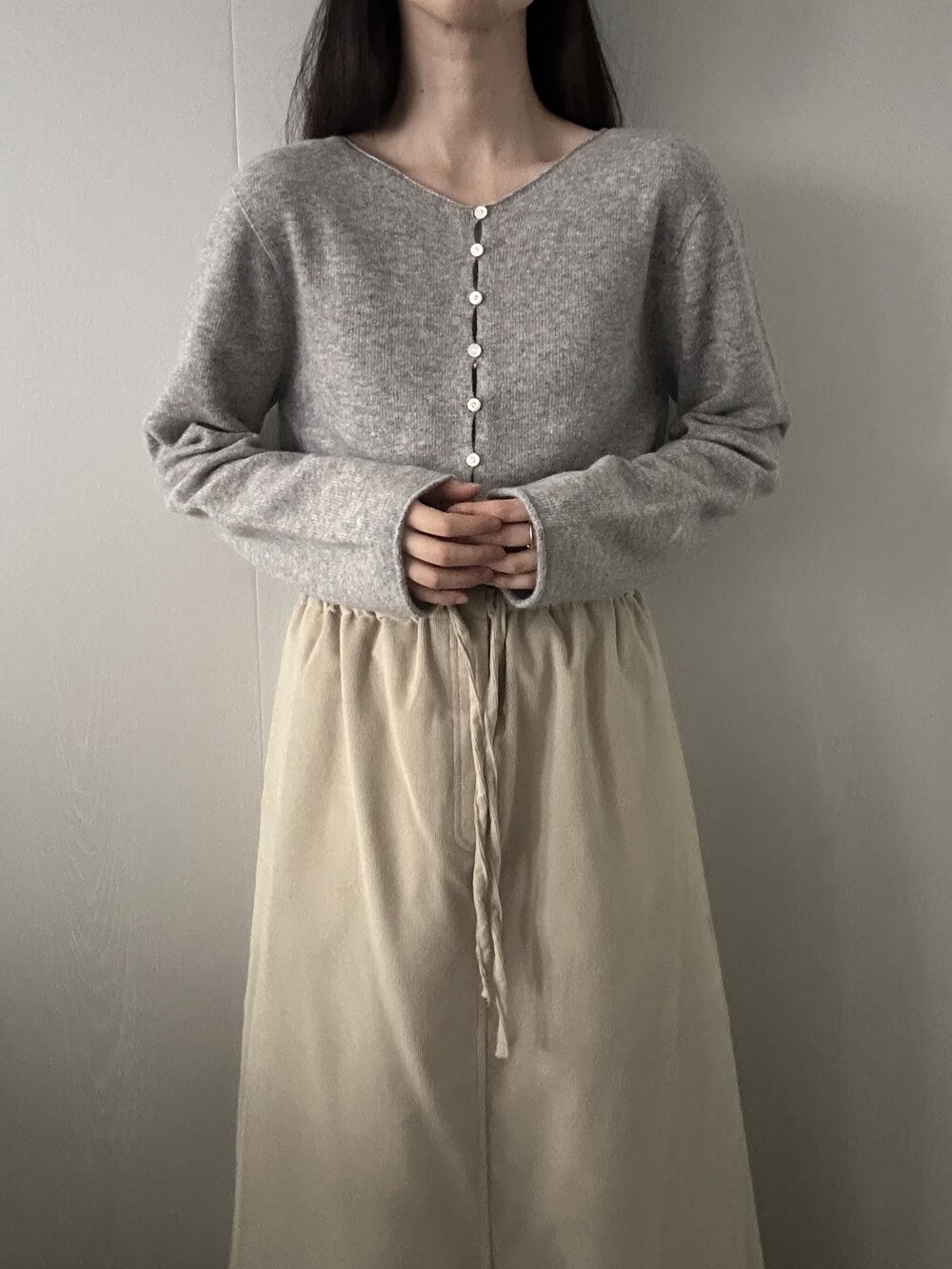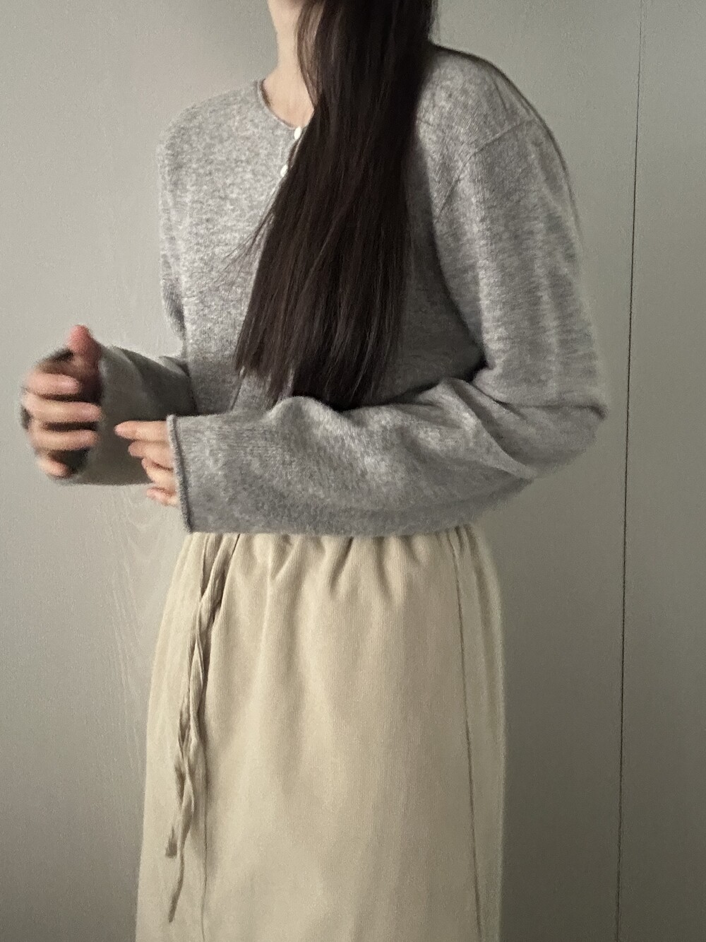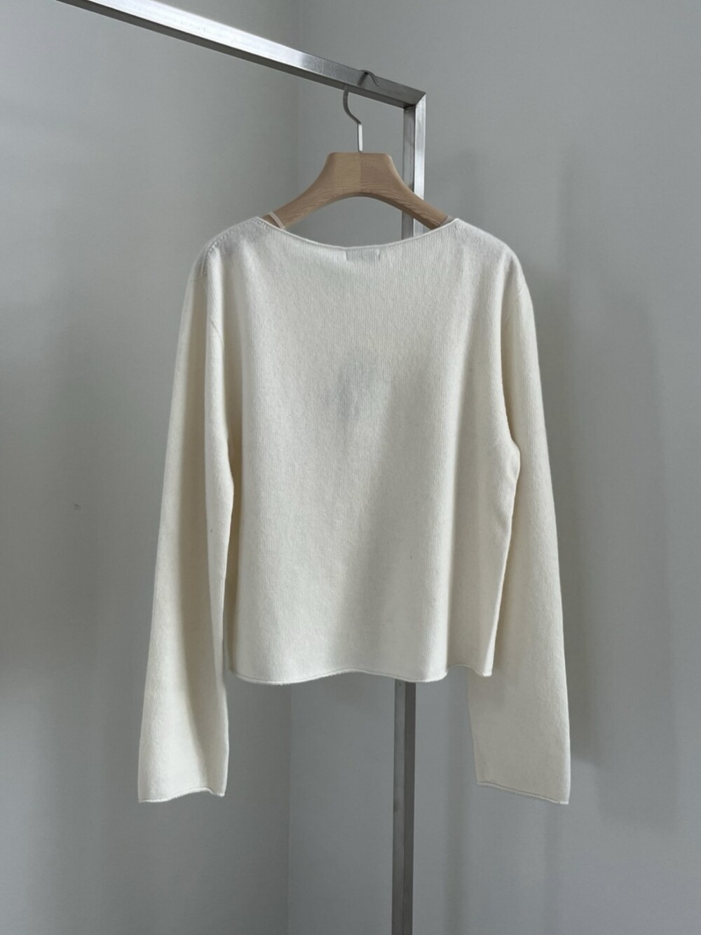은은한 보트넥 디자인으로 넥 라인이 아름다워 보이며 길지 않은 길이감으로 다양한 하의와 매치하기 좋습니다.