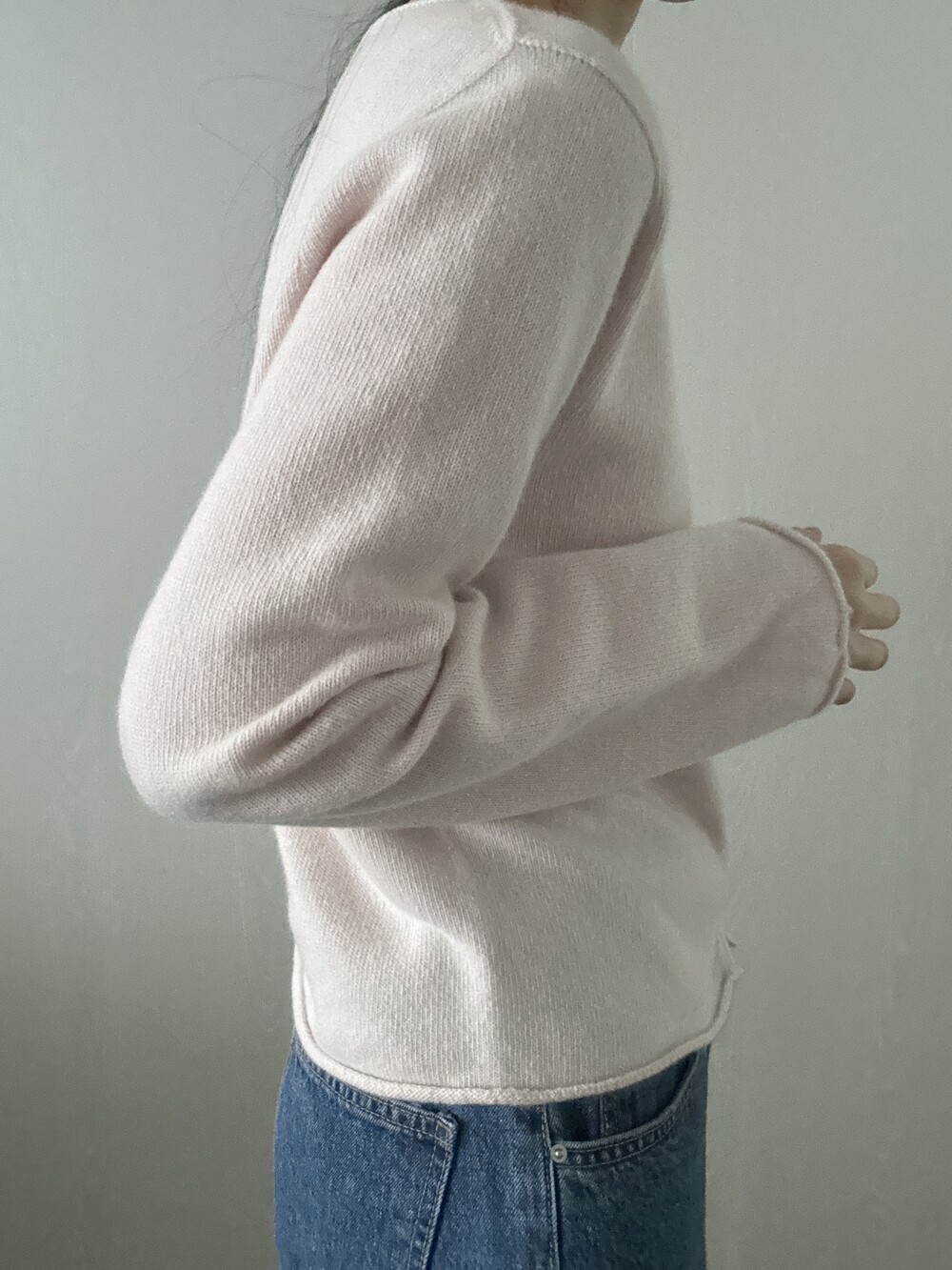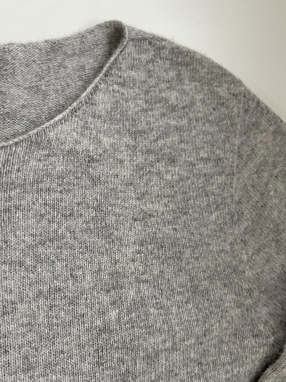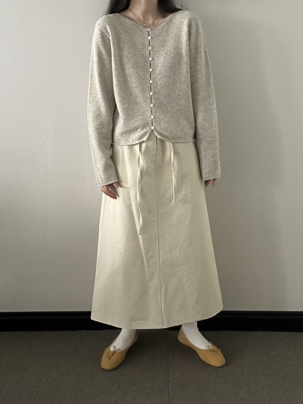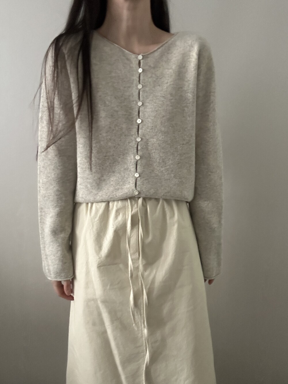 은은한 보트넥 디자인으로 넥 라인이 아름다워 보이며 길지 않은 길이감으로 다양한 하의와 매치하기 좋습니다.