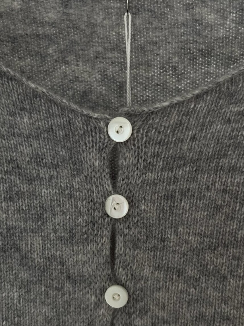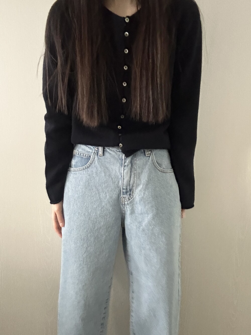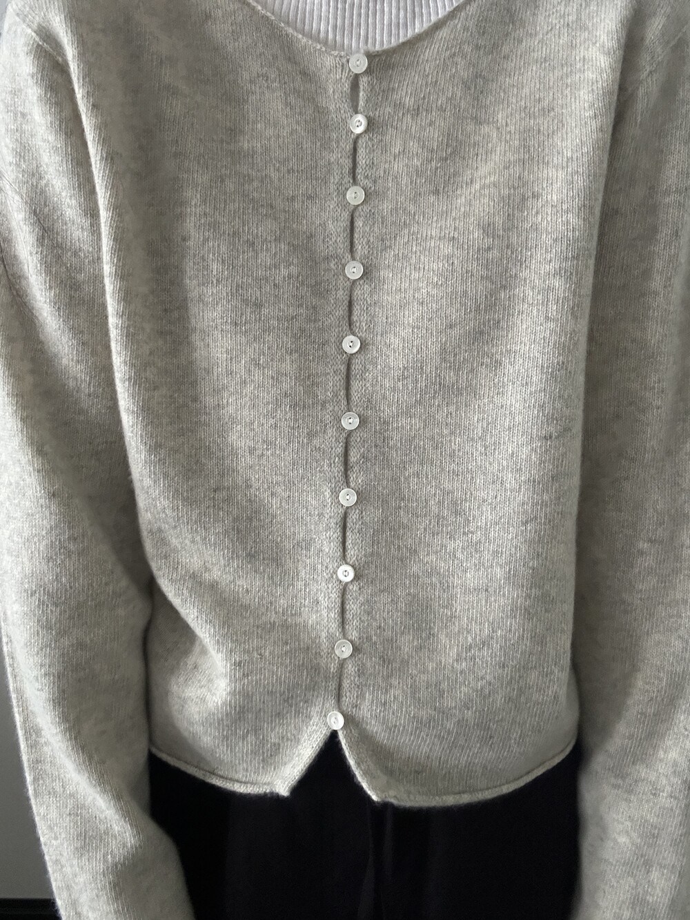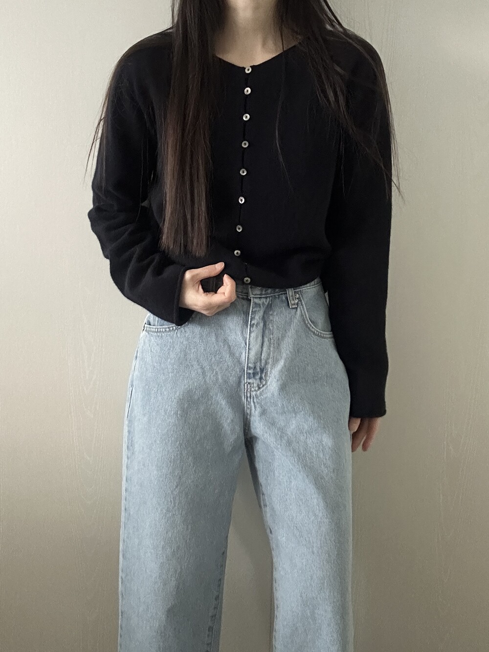 촘촘히 달려있는 자개단추와 레귤러한 핏 , 포근해 보이는 헤어감이 고급스럽습니다.
