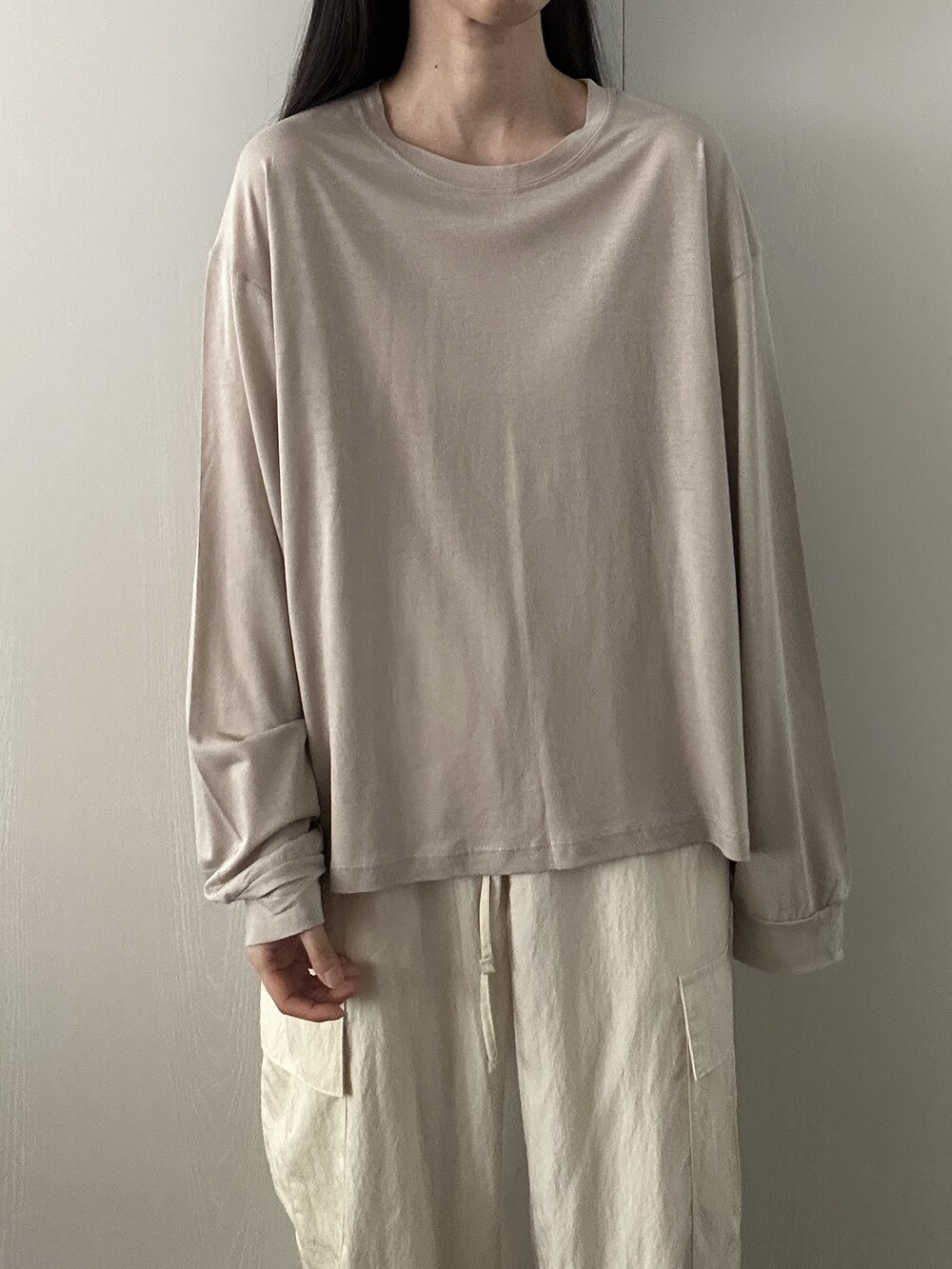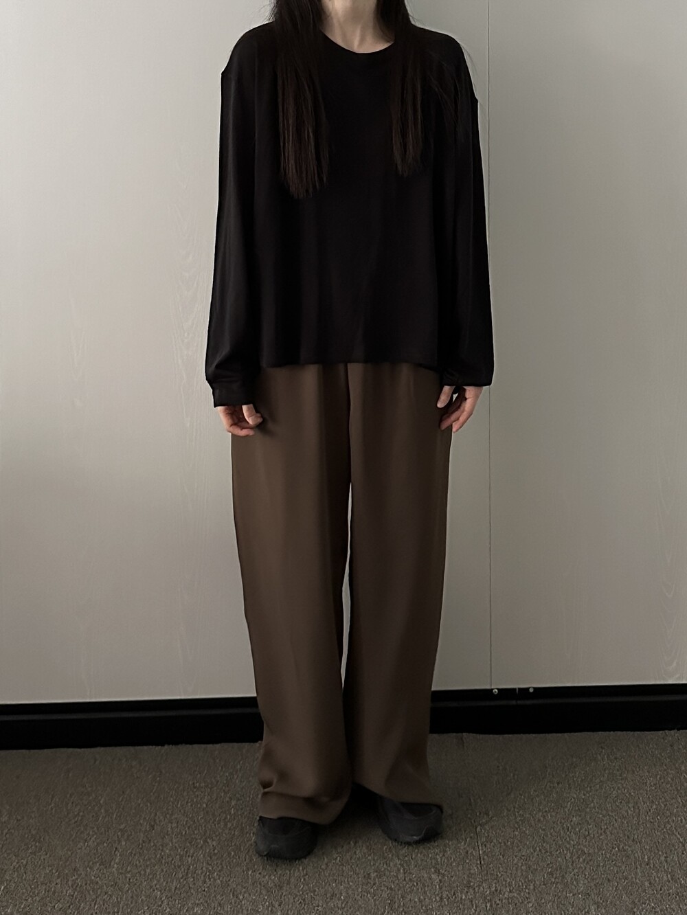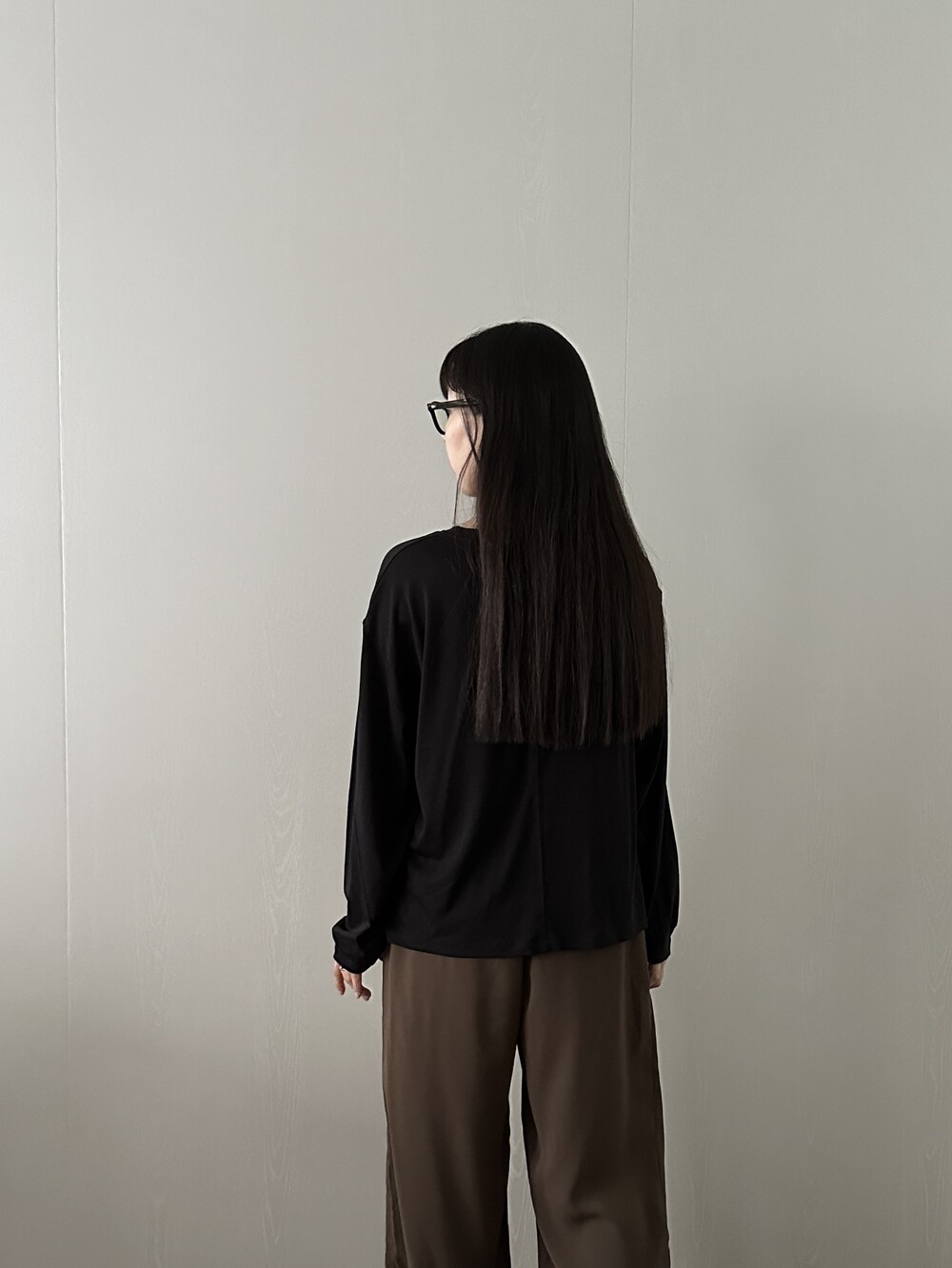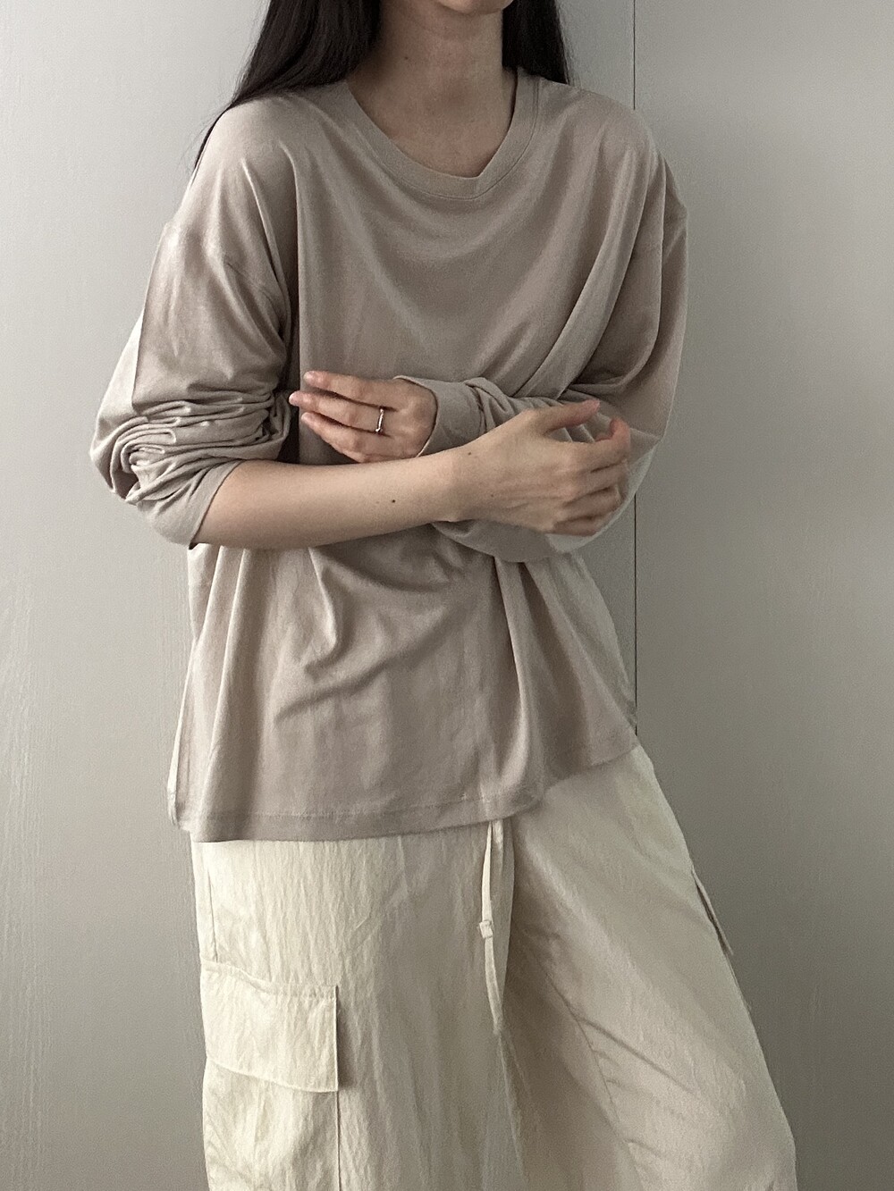 적당히 차가운 느낌이 들면서 차르르 흐르는 텍스처가 입었을 때 핏도 살려주고 몸에 닿는 터치감도 자극이 없어 좋습니다.