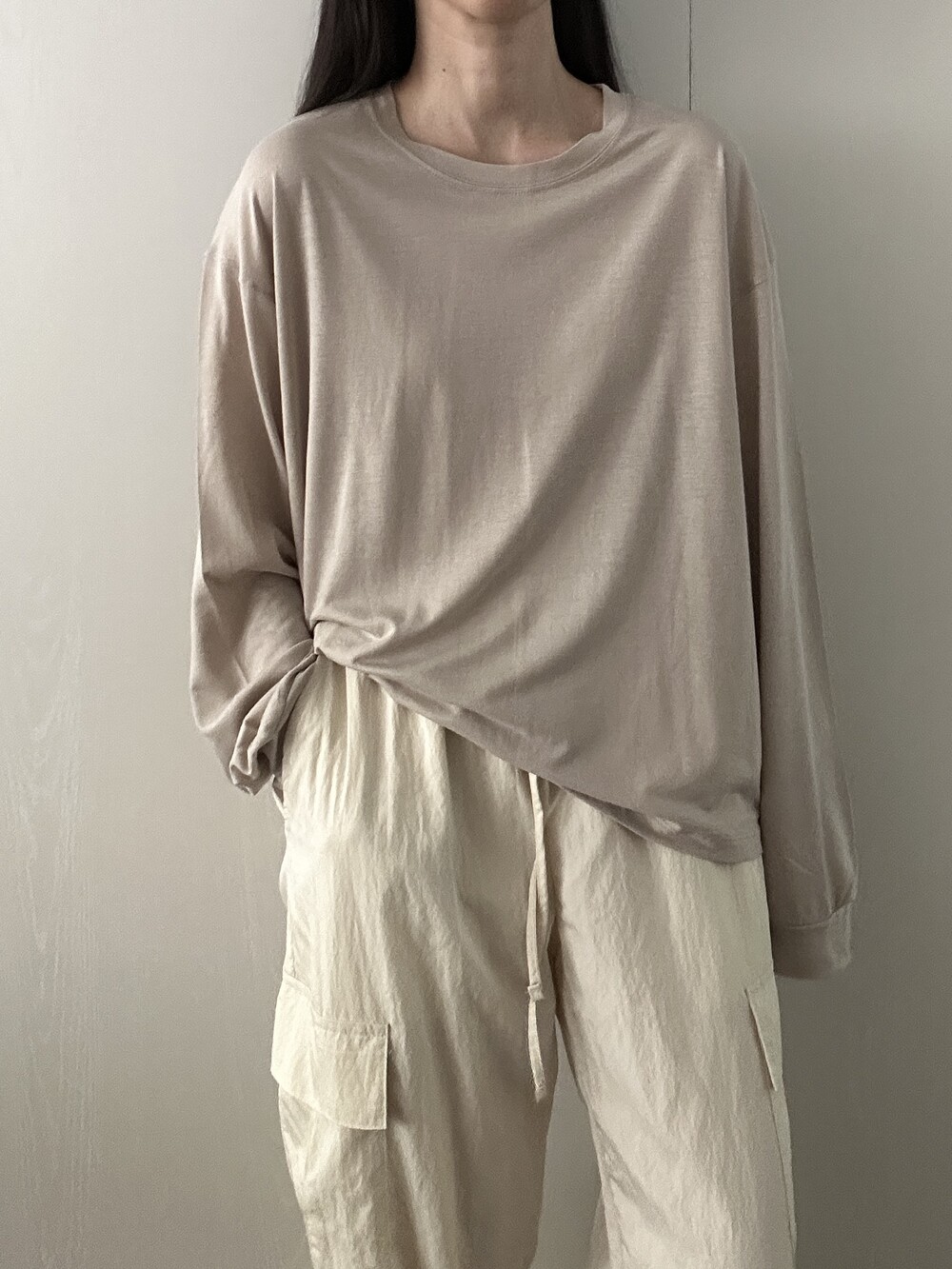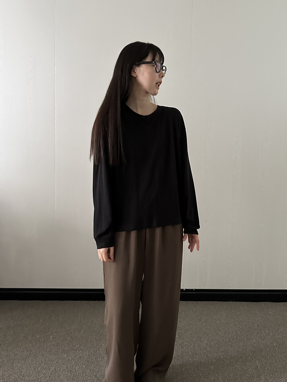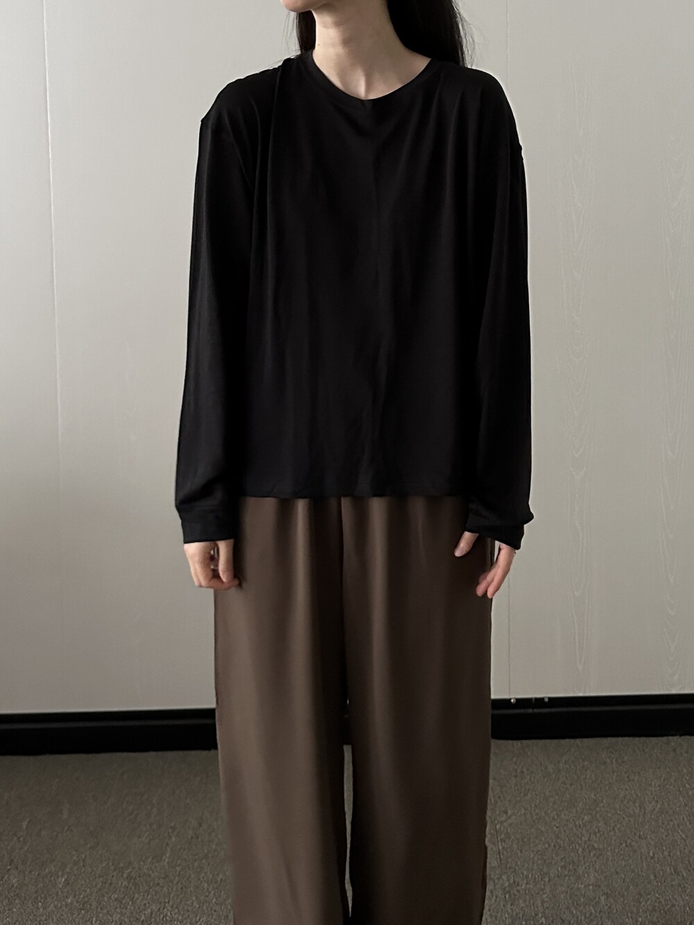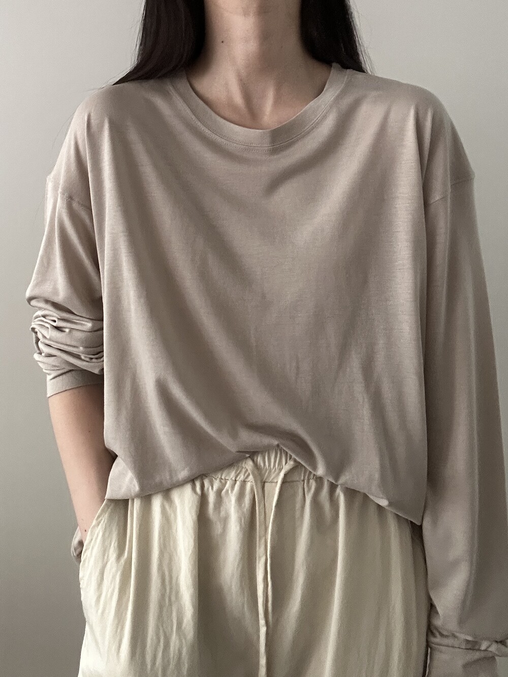 적당히 차가운 느낌이 들면서 차르르 흐르는 텍스처가 입었을 때 핏도 살려주고 몸에 닿는 터치감도 자극이 없어 좋습니다.