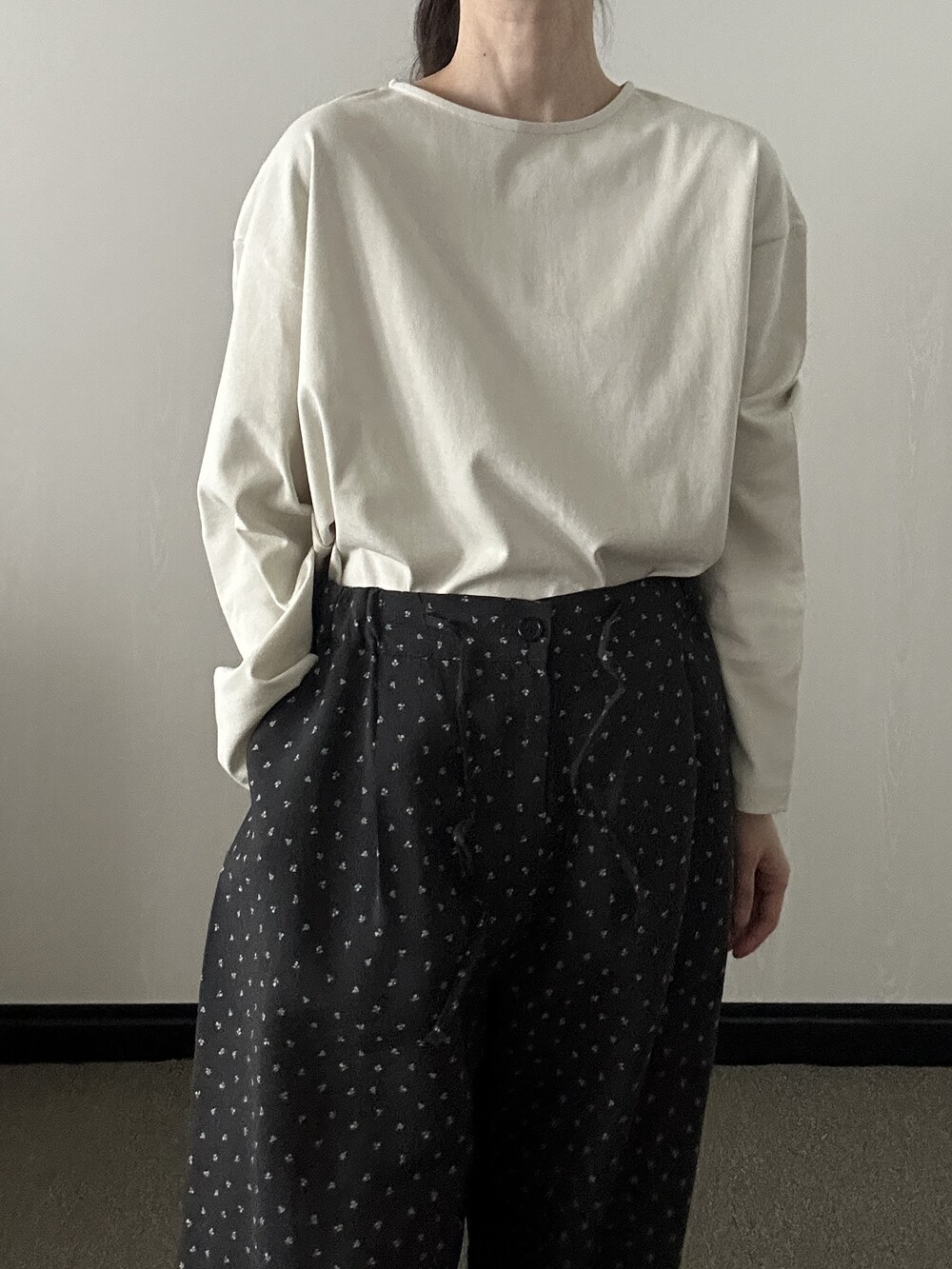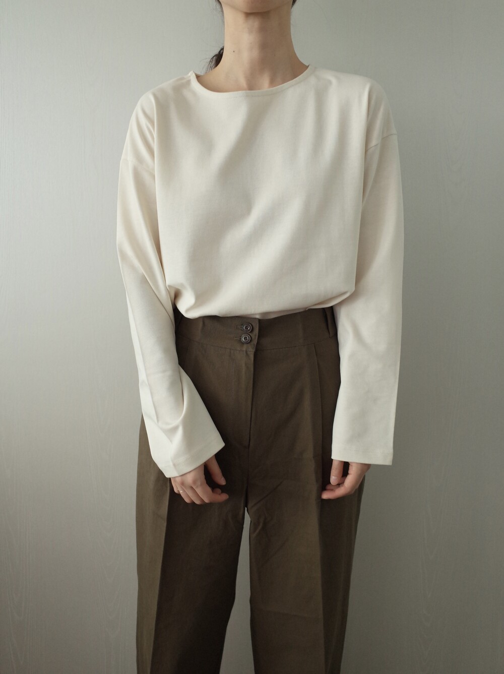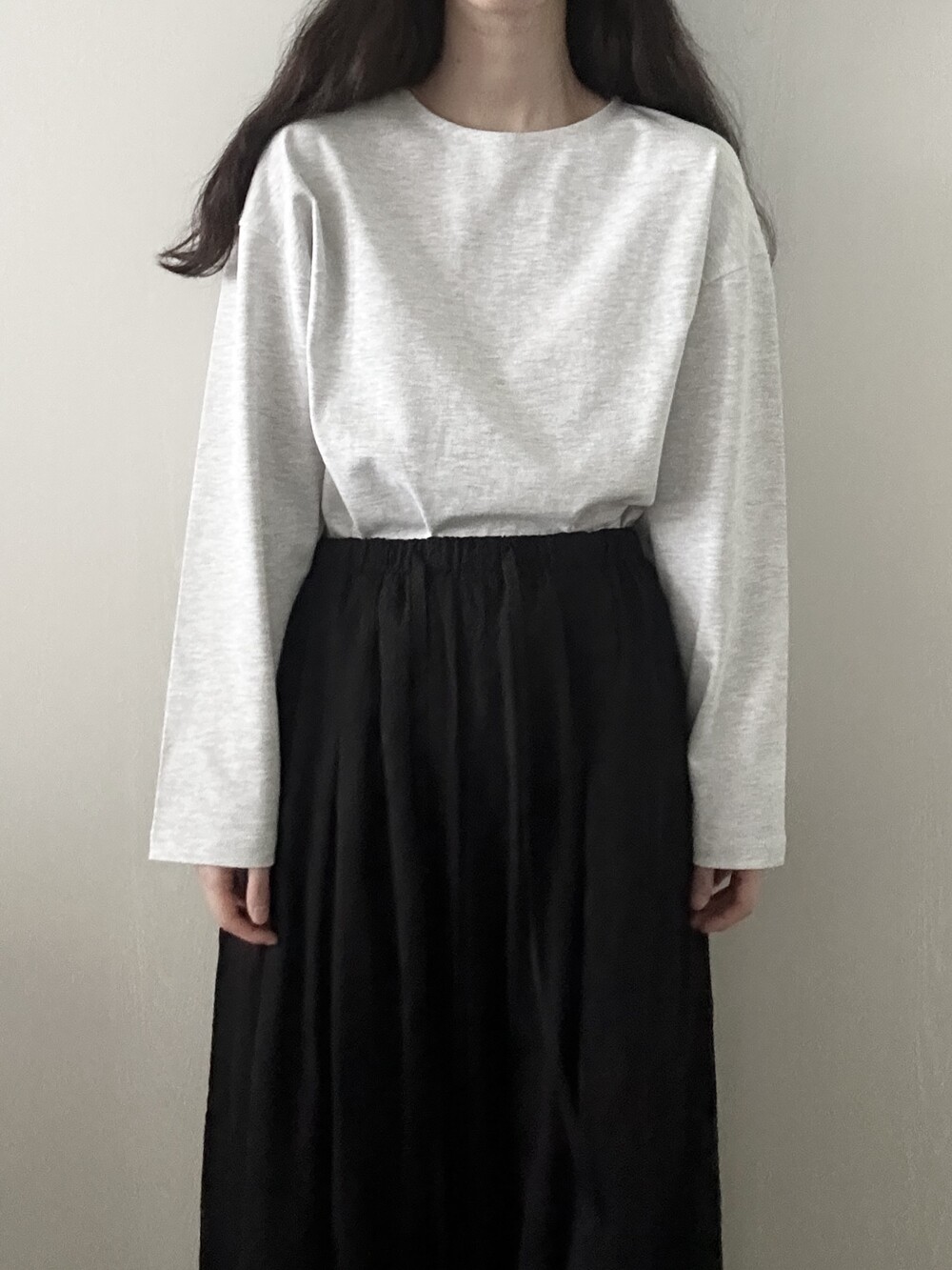 긴소매와 심플하고 군더더기 없는 라운드넥으로 사이즈 또한 여유 있어 누구나 입기 좋습니다.