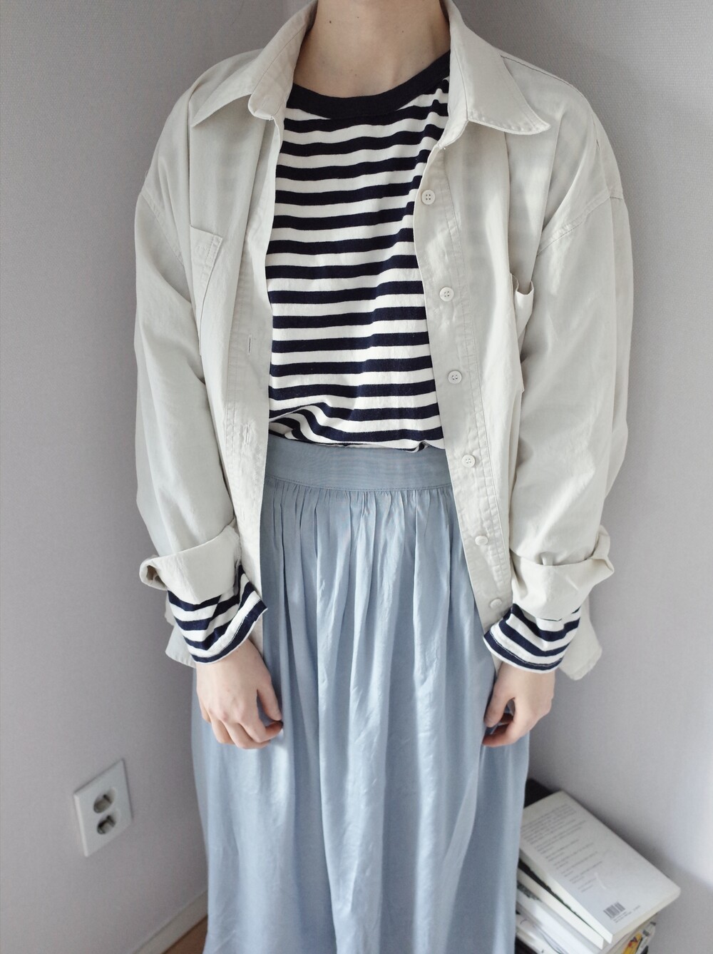 셔츠의 경우 소재가 너무 빳빳하거나 힘이 있을 경우 하의에 넣었을 때 모양이 예쁘게 잘 안되더라고요.