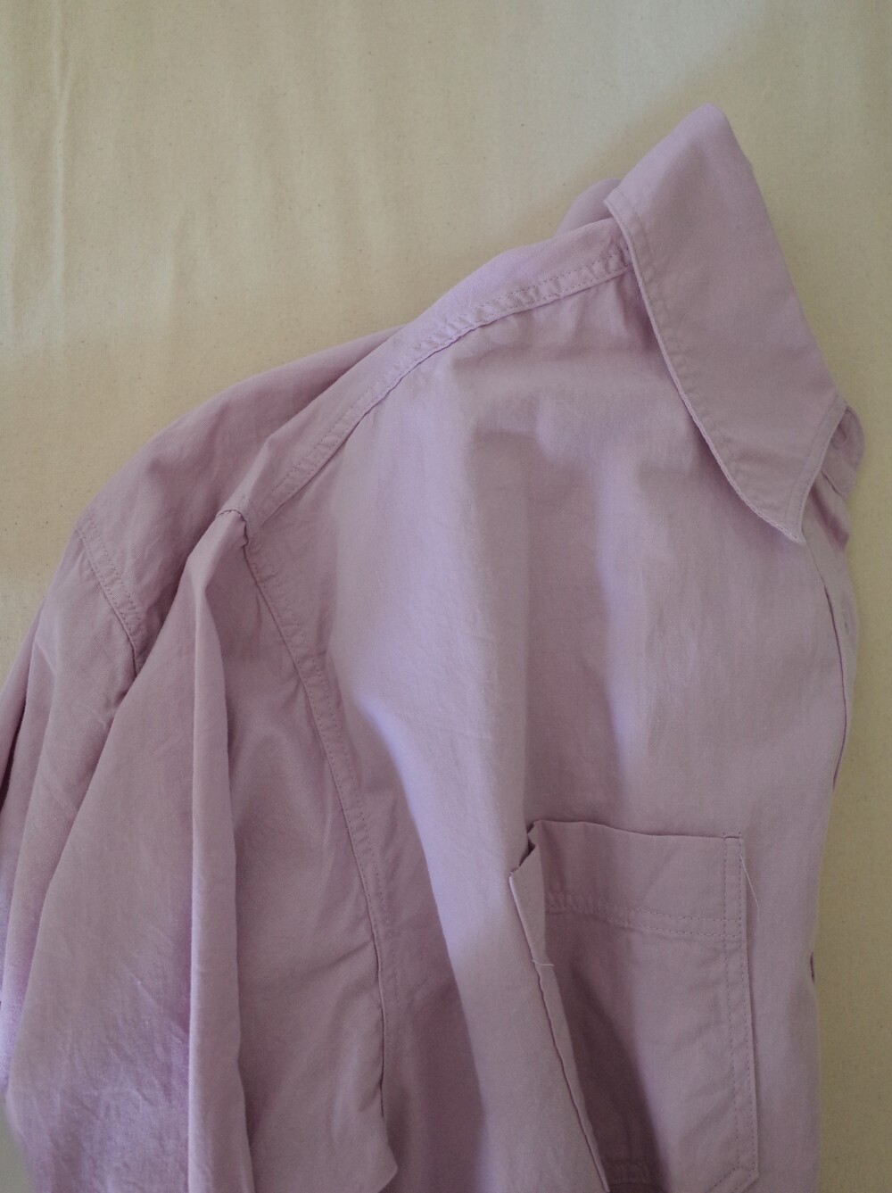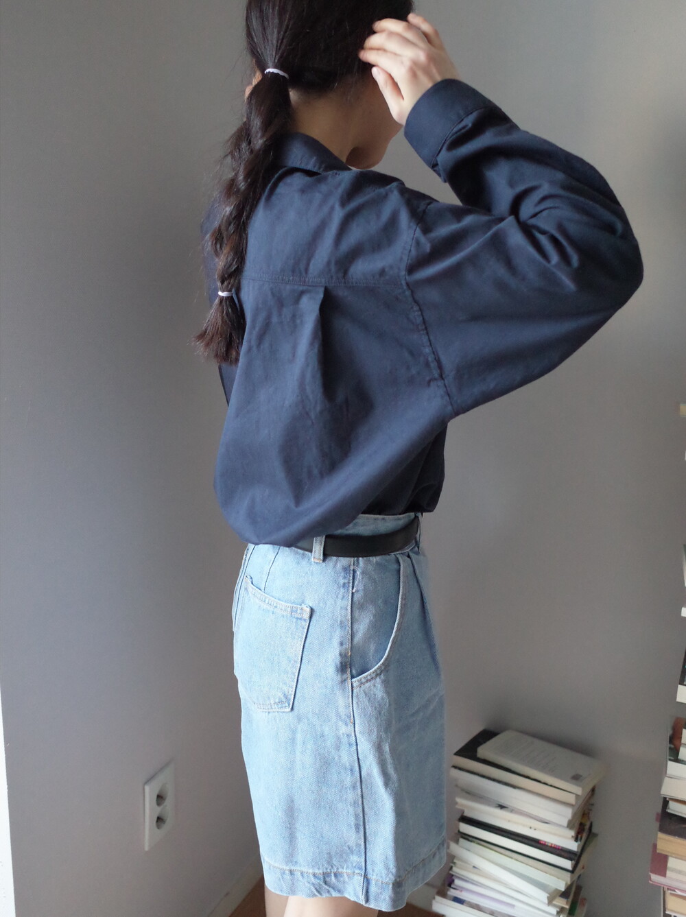 버튼을 모두 채워도 넥 부분이 답답하지 않고요 , 소매를 돌돌 말아 착용해도 좋습니다.