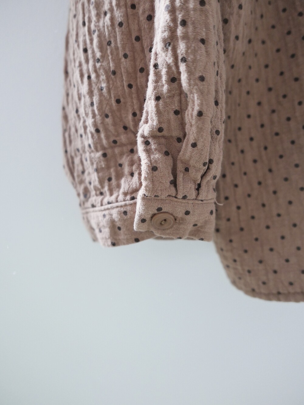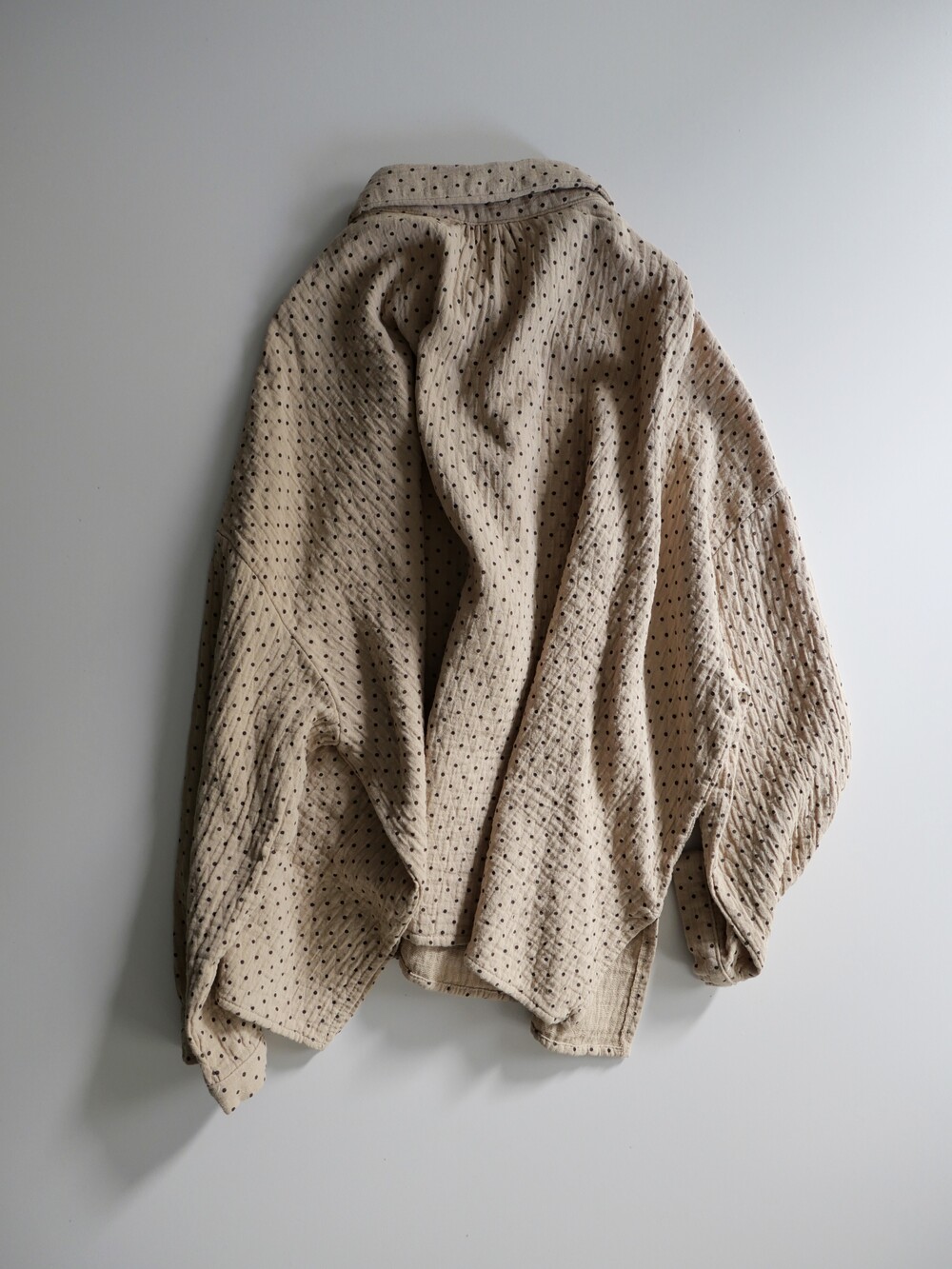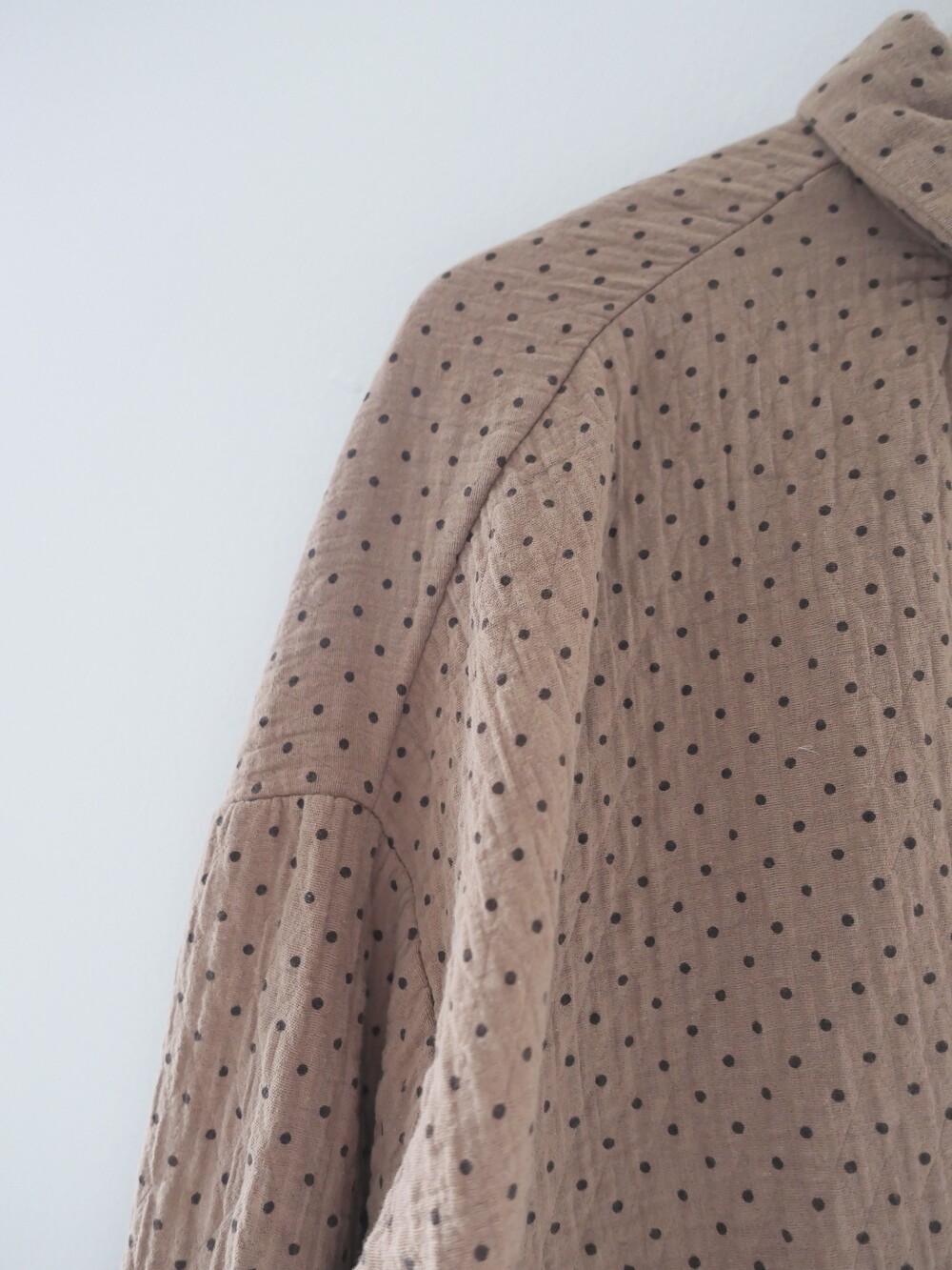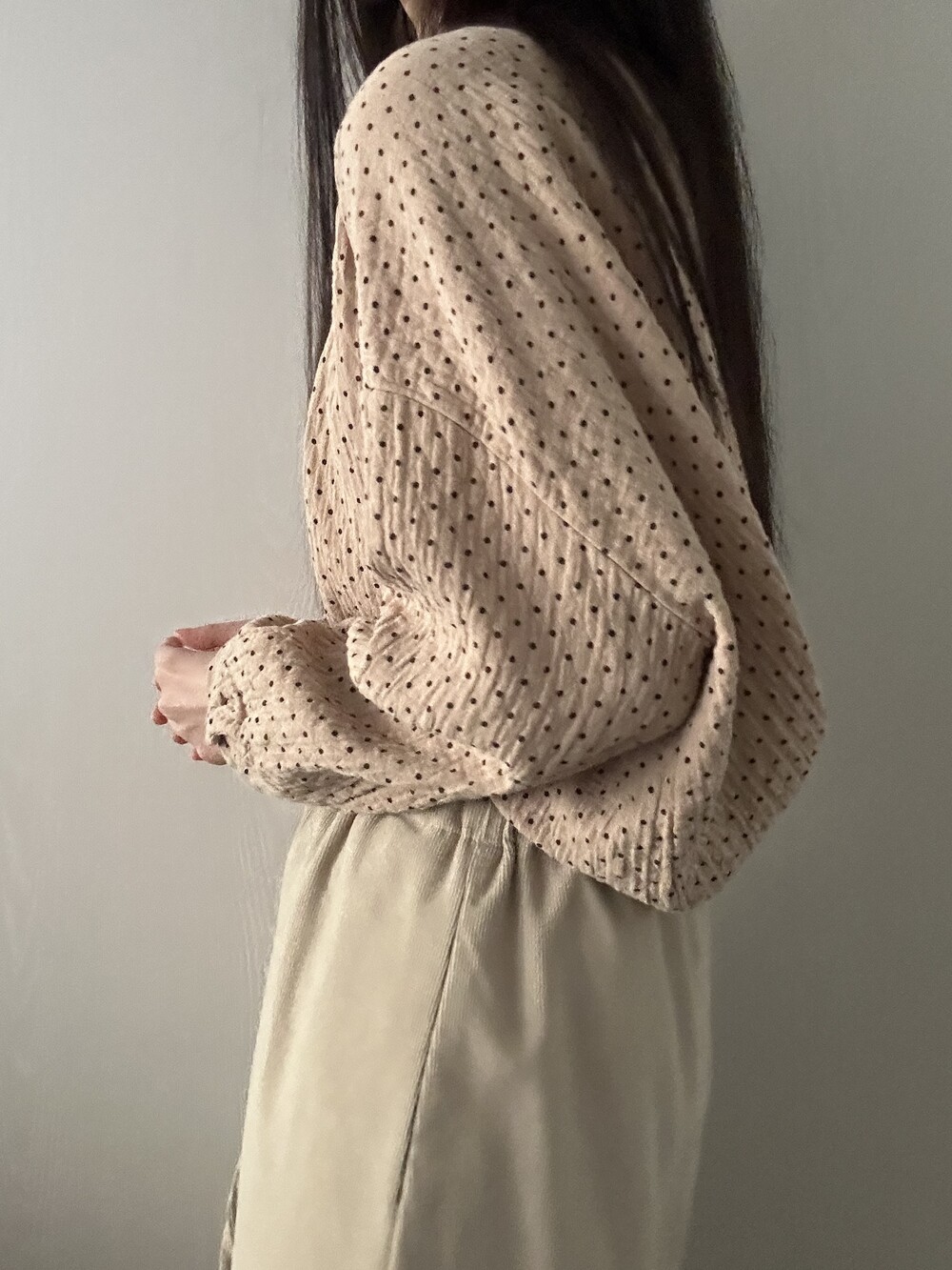 빈티지한 작은 도트 패턴에 깔끔한 카라 , 아방한 오버핏 디자인으로 유니크한 요소를 갖고 있어요.