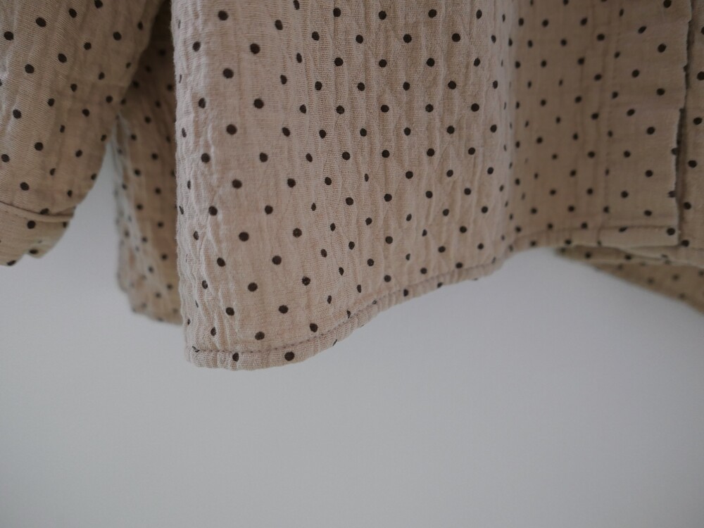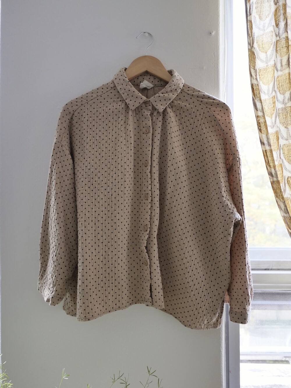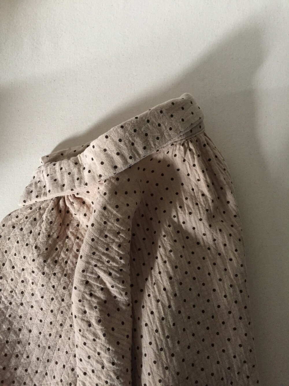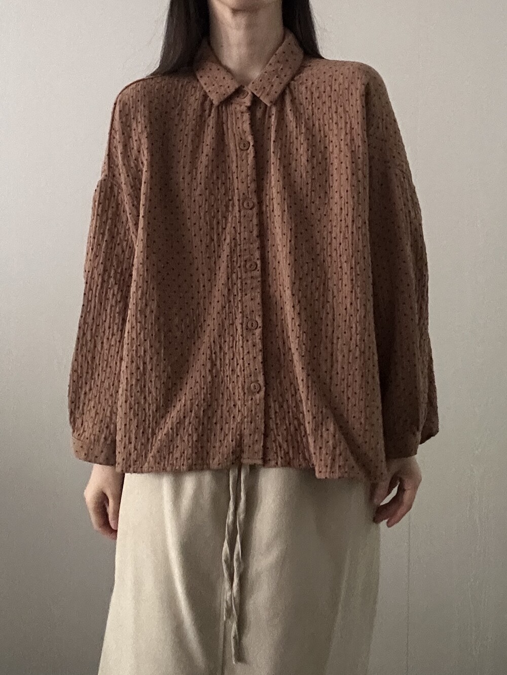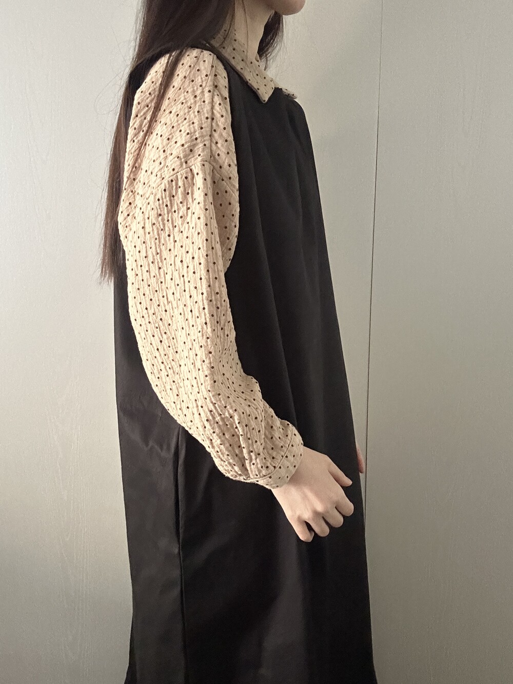 빈티지한 작은 도트 패턴에 깔끔한 카라 , 아방한 오버핏 디자인으로 유니크한 요소를 갖고 있어요.
