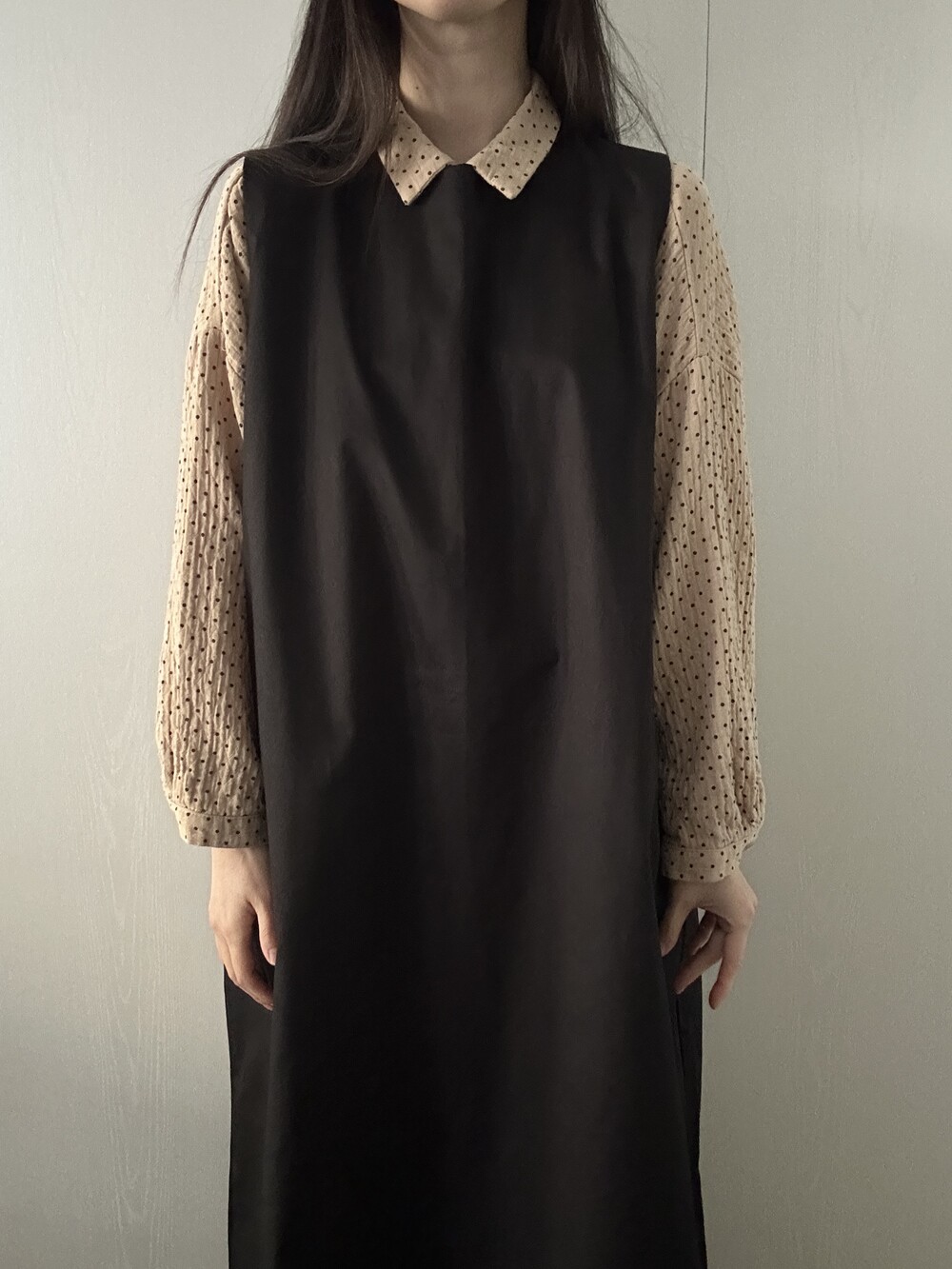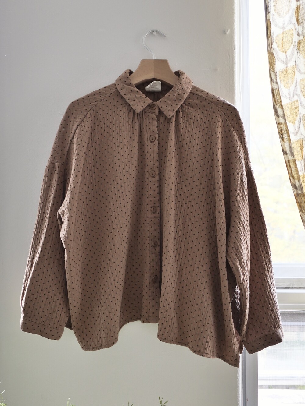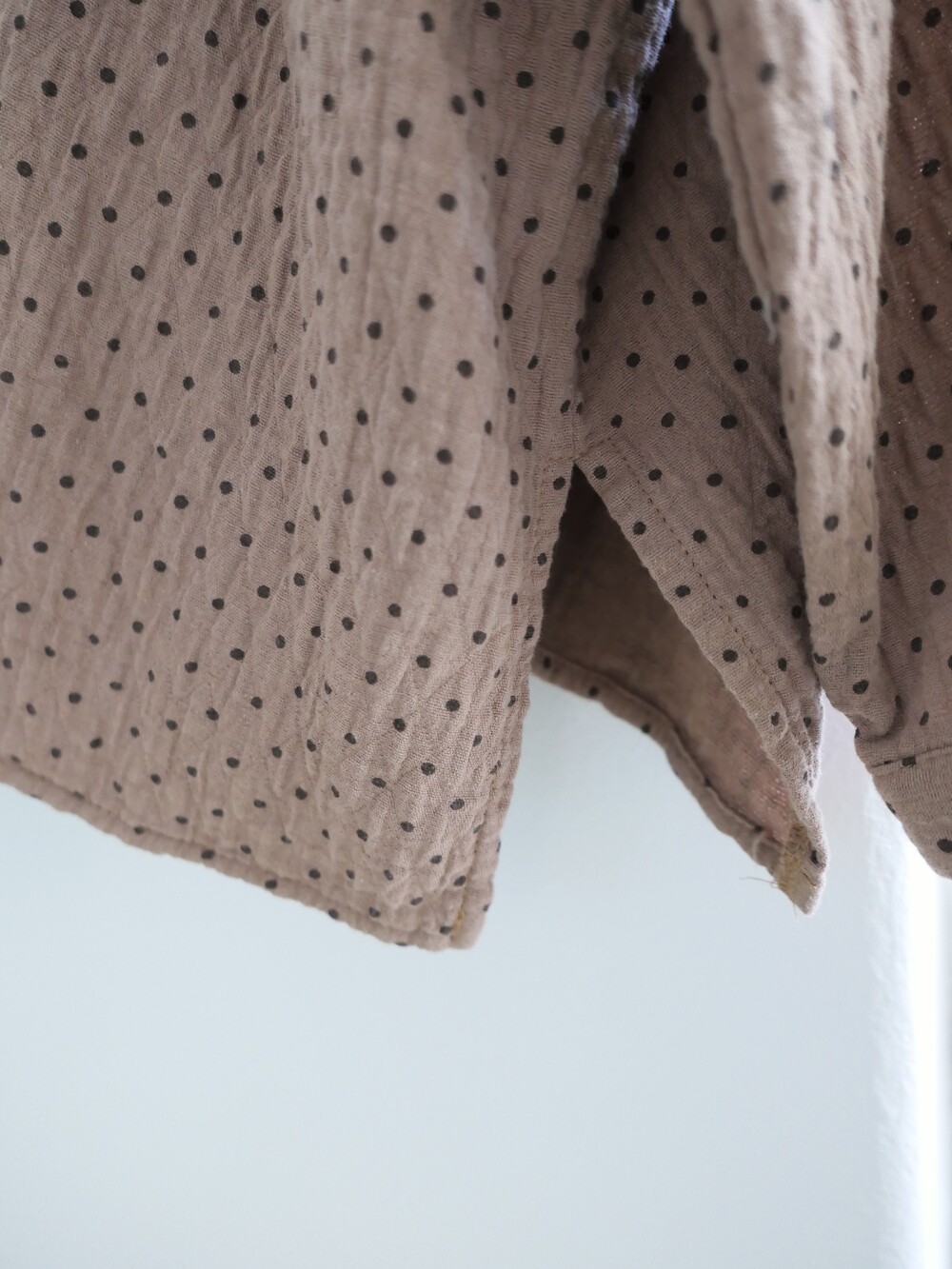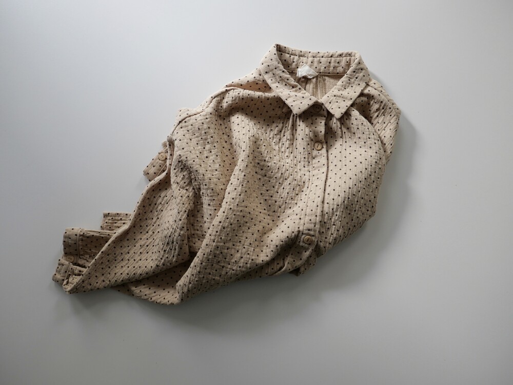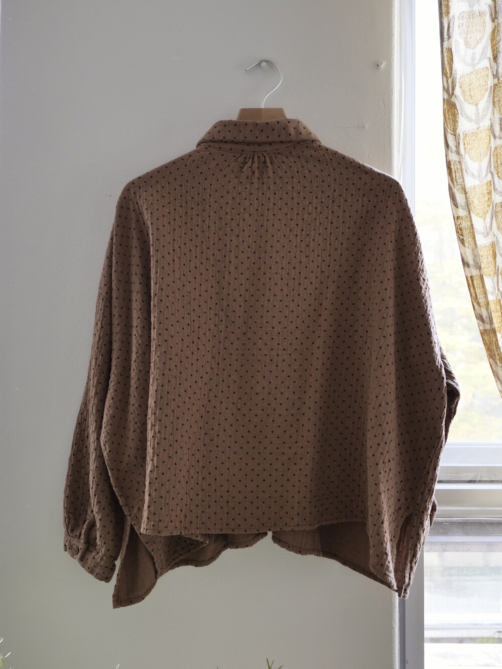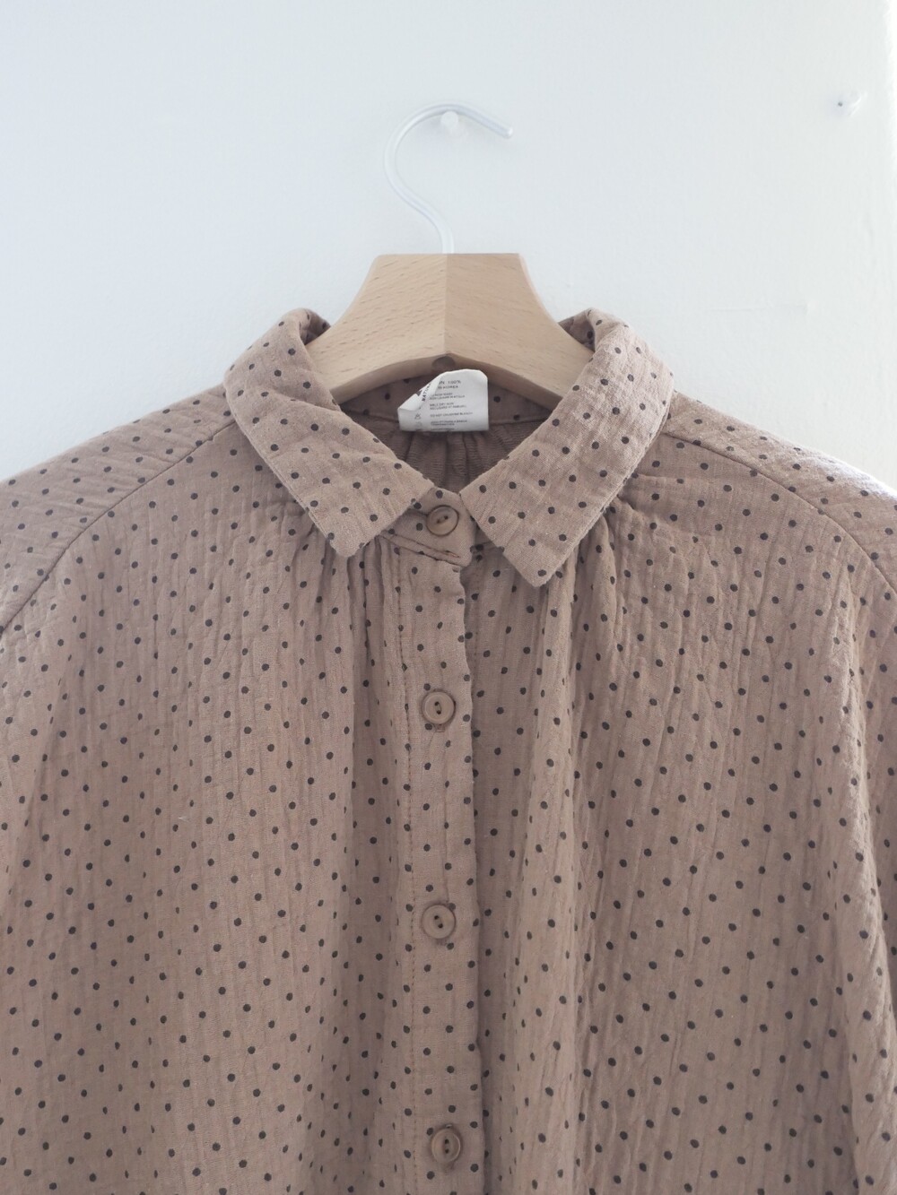 빈티지한 작은 도트 패턴에 깔끔한 카라 , 아방한 오버핏 디자인으로 유니크한 요소를 갖고 있어요.