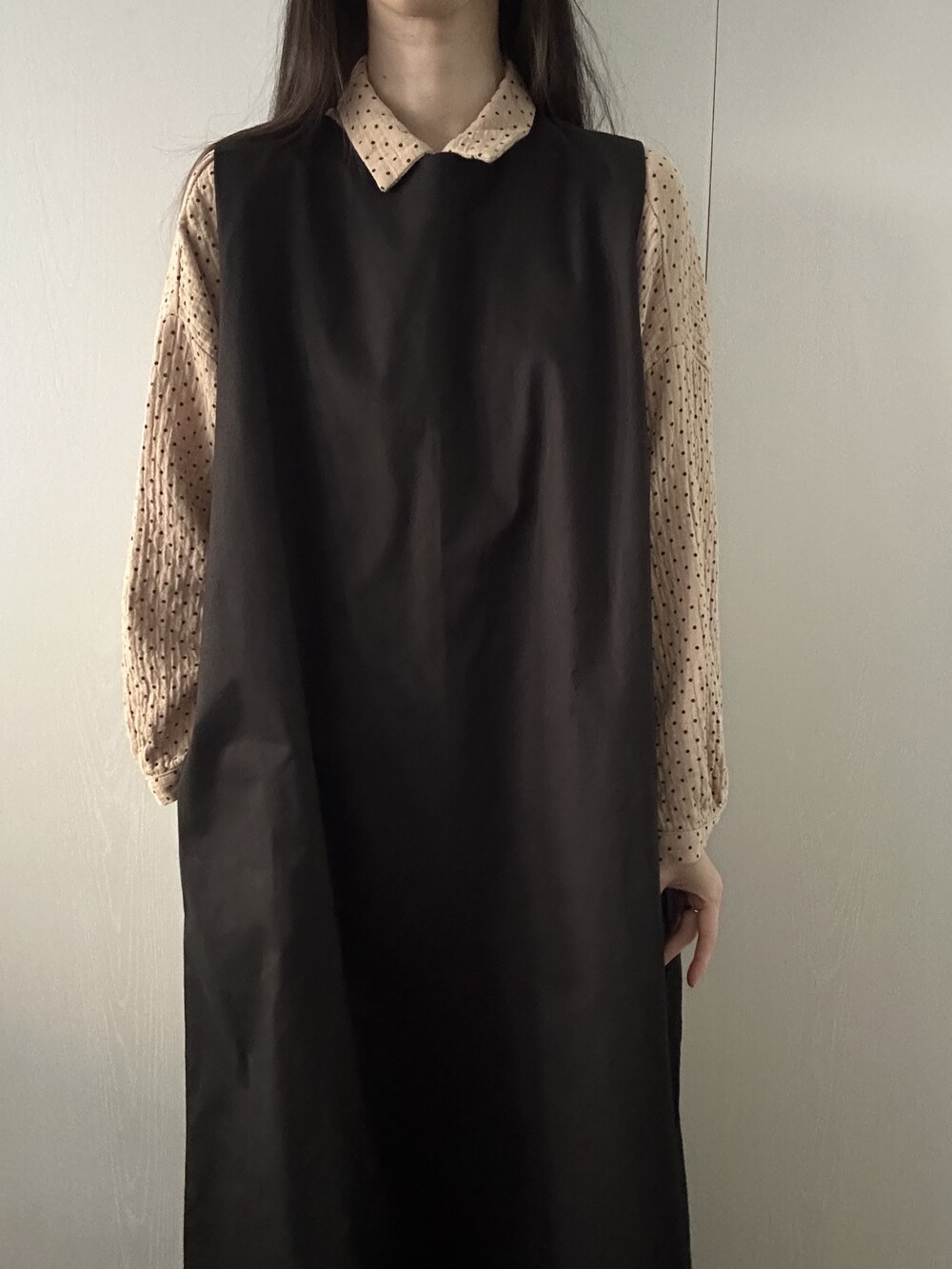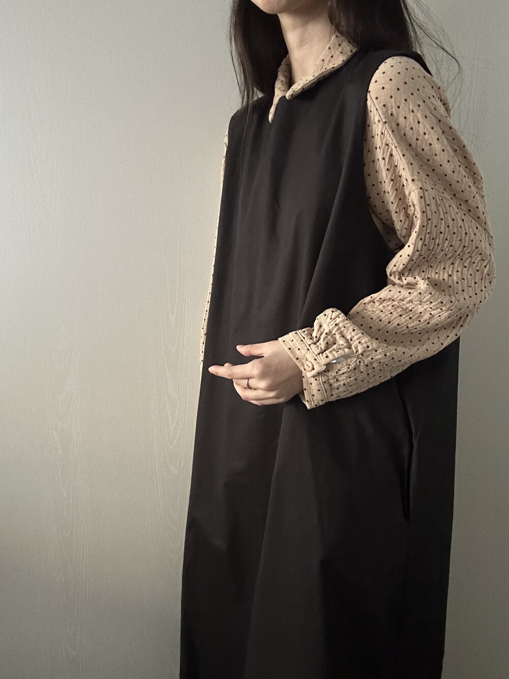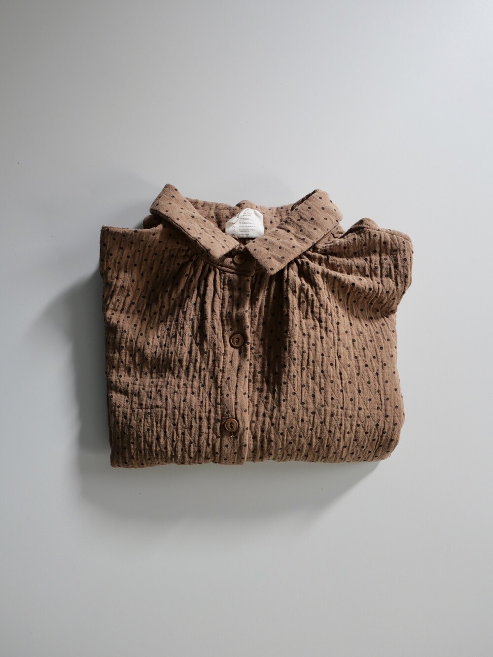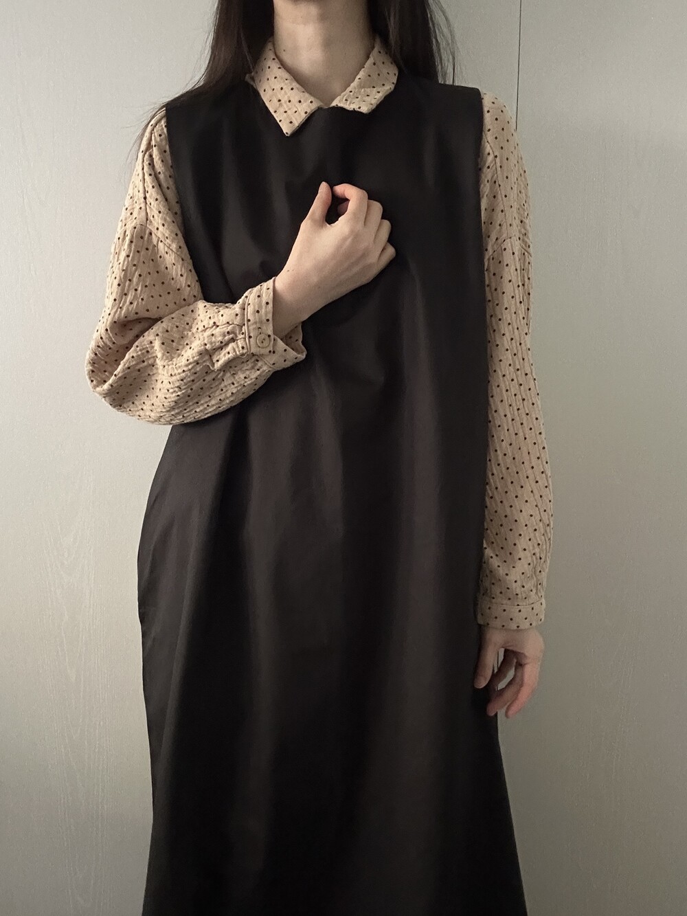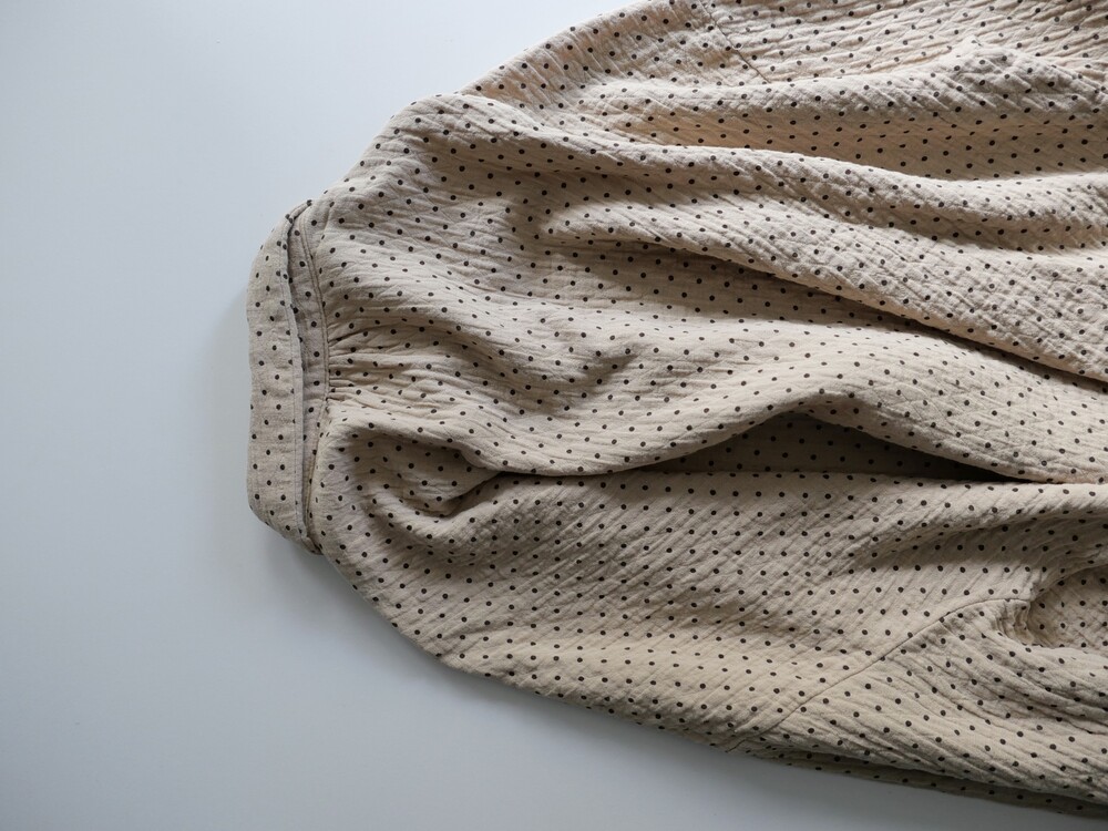 빈티지한 작은 도트 패턴에 깔끔한 카라 , 아방한 오버핏 디자인으로 유니크한 요소를 갖고 있어요.