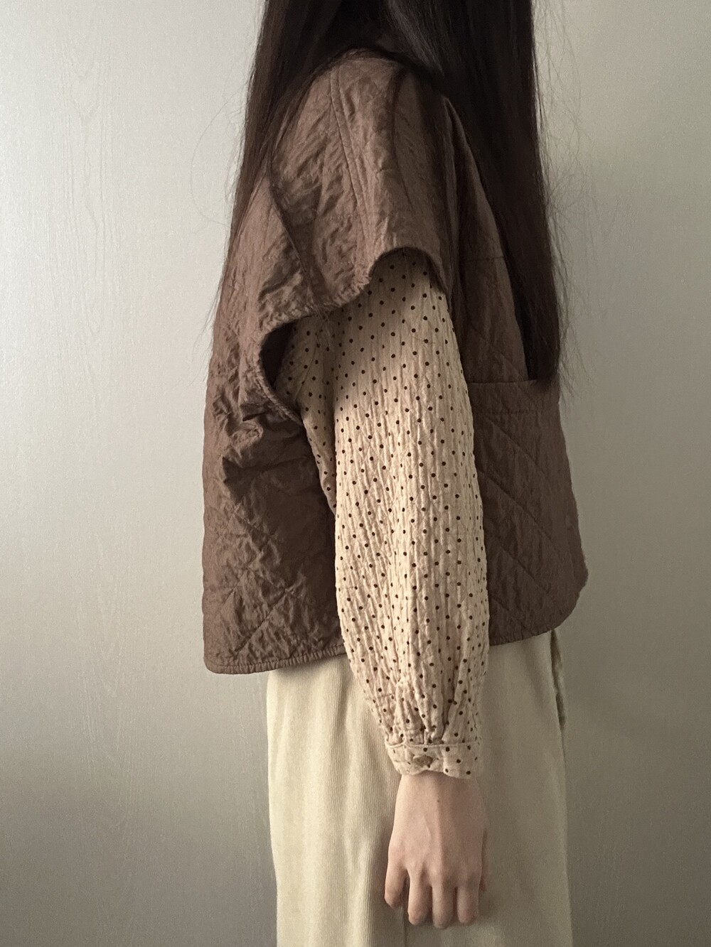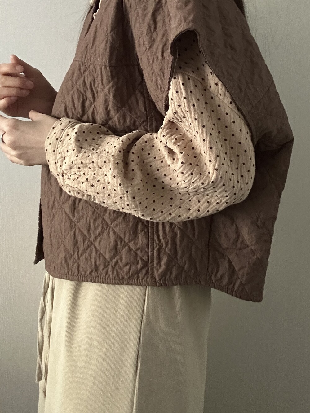 이중지 코튼 소재로 일반 블라우스보다 두께감이 도톰해 보온성이 좋고 스퀘어 라인으로 누빔이 되어 있어 더욱 내추럴한 무드를 느낄 수 있습니다.