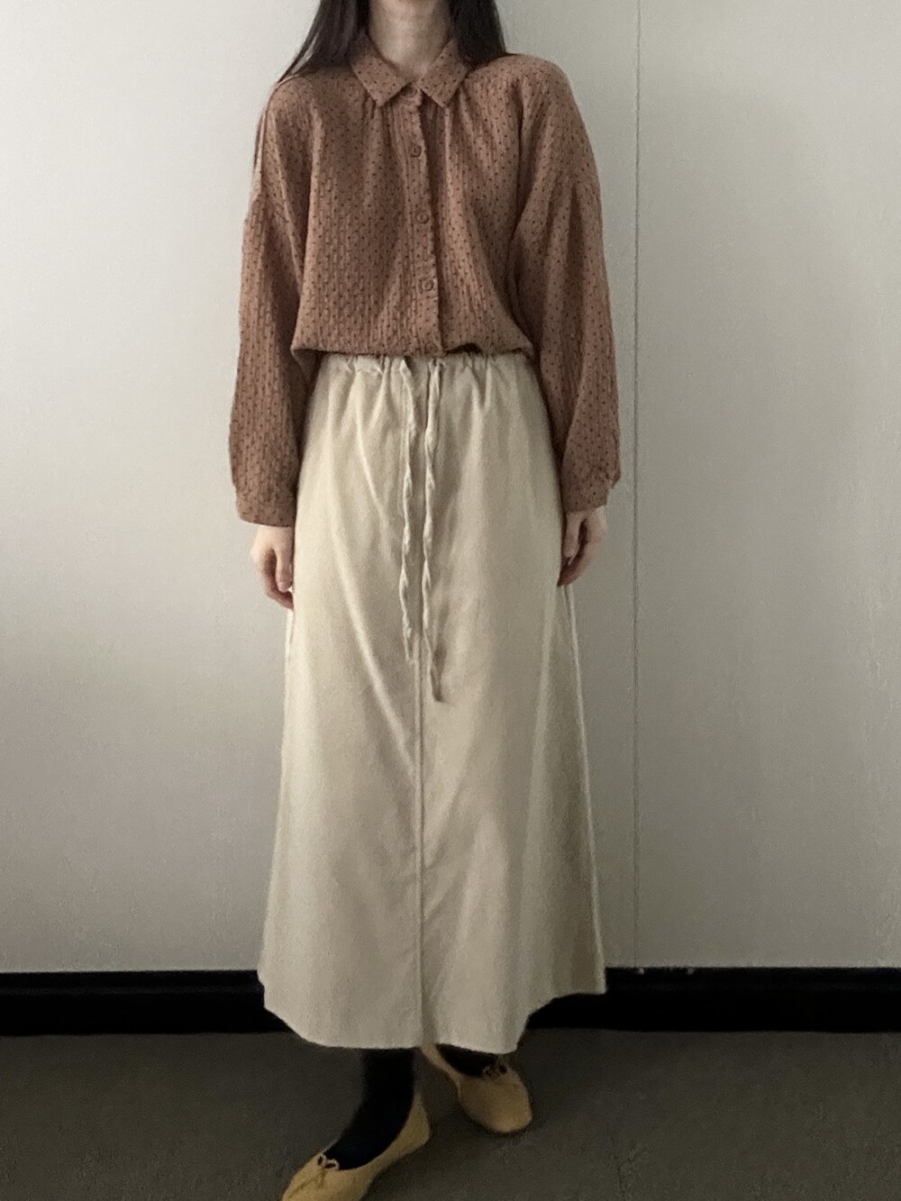 내추럴한 무드의 컬러와 소재 , 디자인으로 새 옷 느낌보단 원래 내 옷장에 있던 익숙한 옷처럼 정감이 가는 제품입니다.