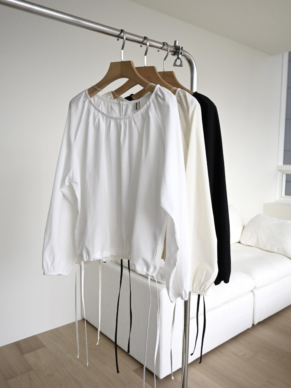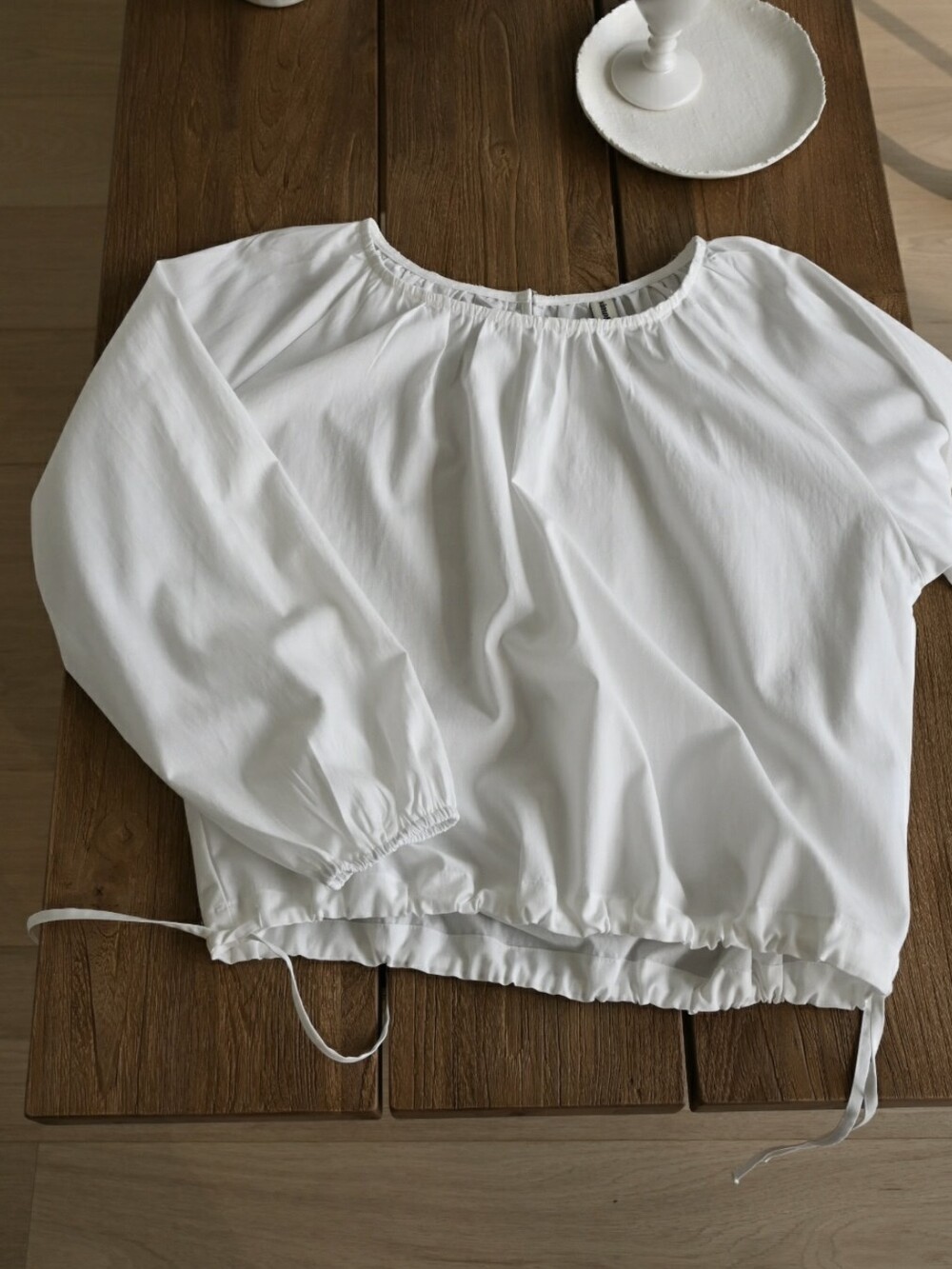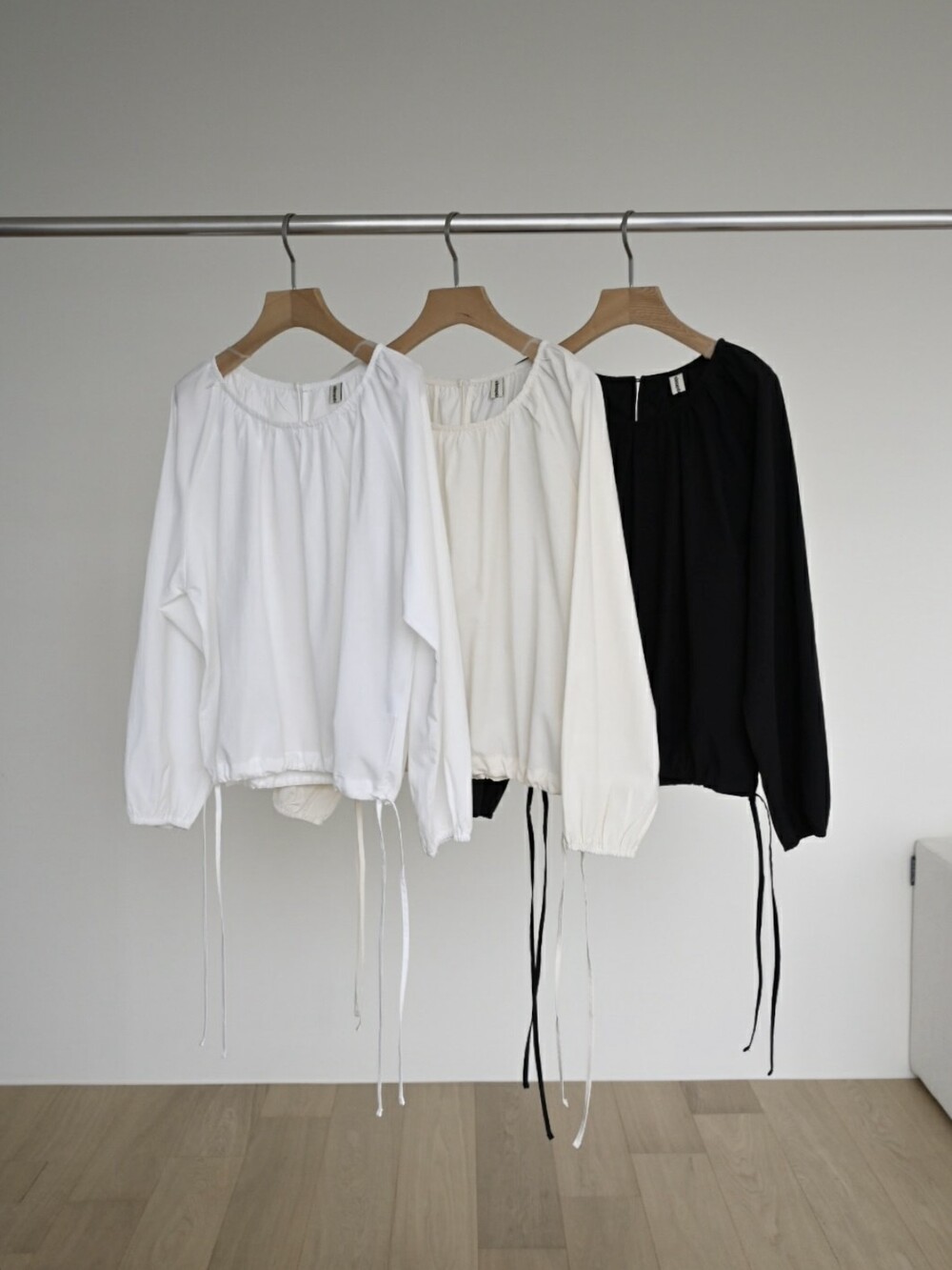 우아하면서도 데일리로 입기 좋은 블라우스 소개합니다. 넥 라인에 잡힌 셔링은 페미닌하고 밑단엔 스트링이 있어 자칫 무거워질 수 있는 무드를 캐주얼하고 경쾌하게 풀어낸 제품입니다.