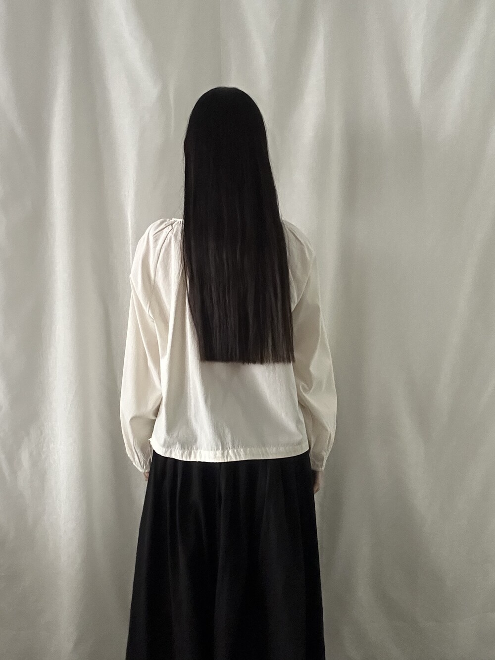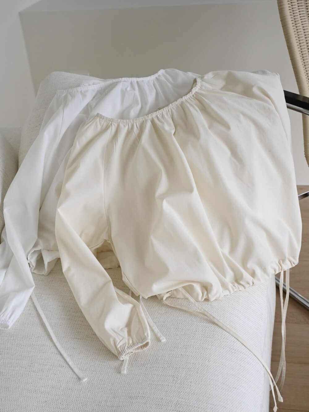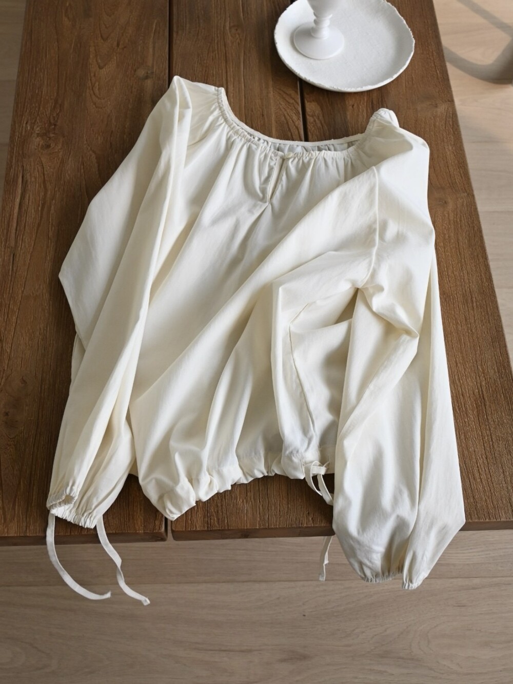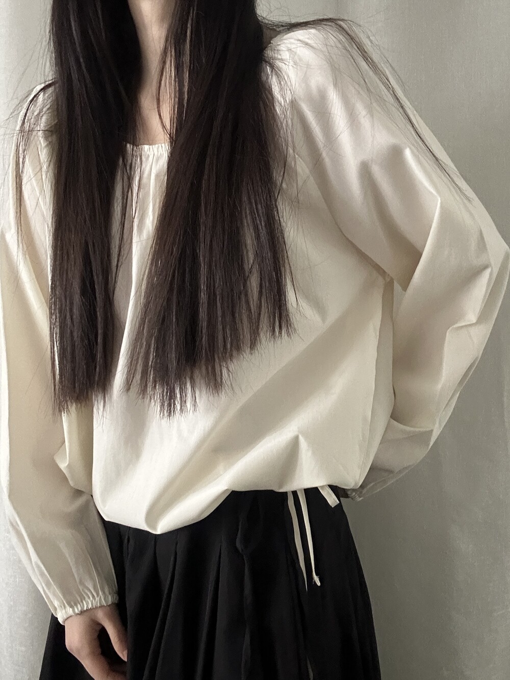 우아하면서도 데일리로 입기 좋은 블라우스 소개합니다. 넥 라인에 잡힌 셔링은 페미닌하고 밑단엔 스트링이 있어 자칫 무거워질 수 있는 무드를 캐주얼하고 경쾌하게 풀어낸 제품입니다.