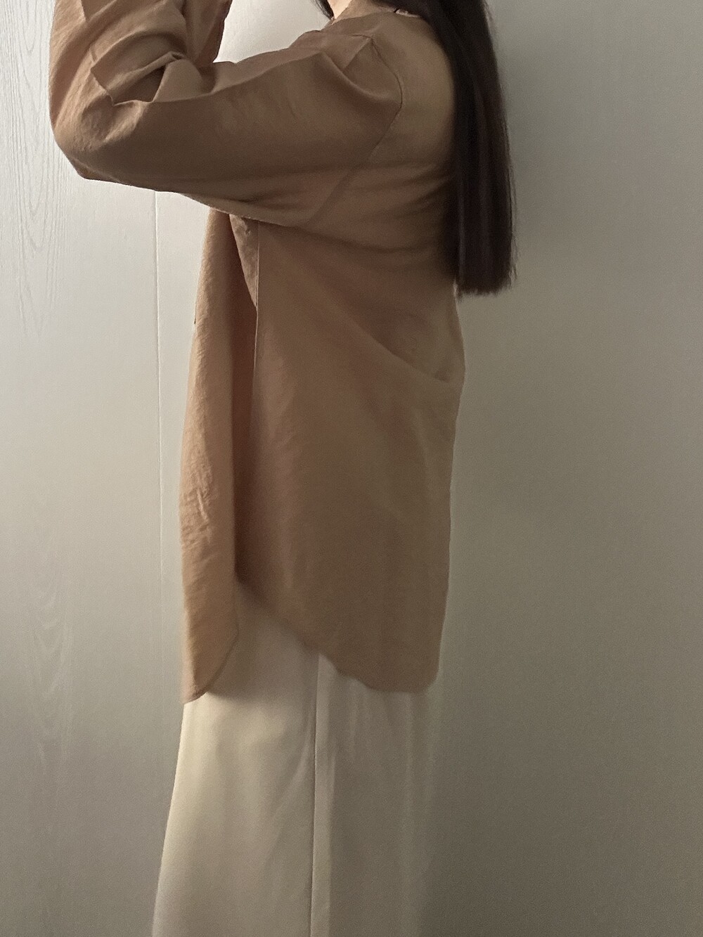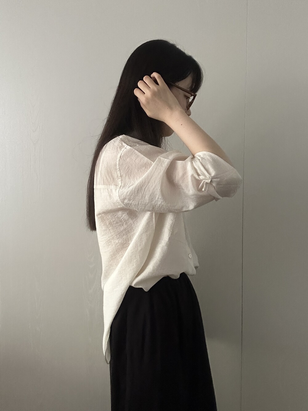 넥 라인이 답답하지 않아 단추를 모두 잠그고 입어도 좋고 오픈 후 입을 땐 또 다른 느낌을 낼 수 있습니다.