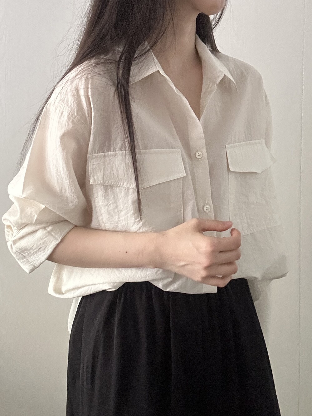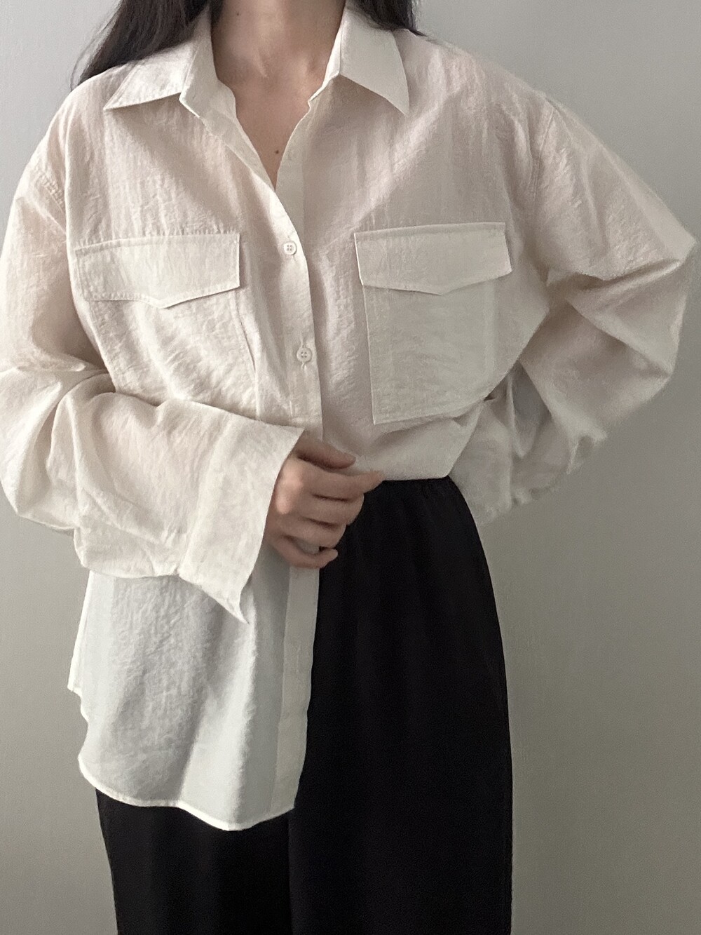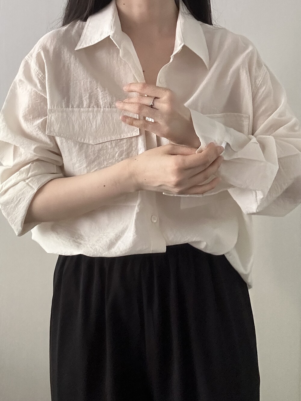 미니멀하고 심플함이 매력적인 포켓 블라우스입니다.