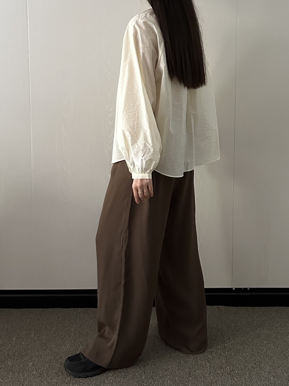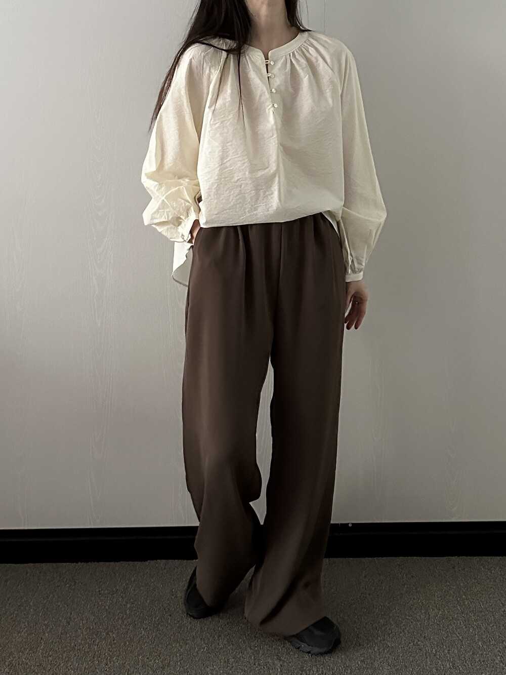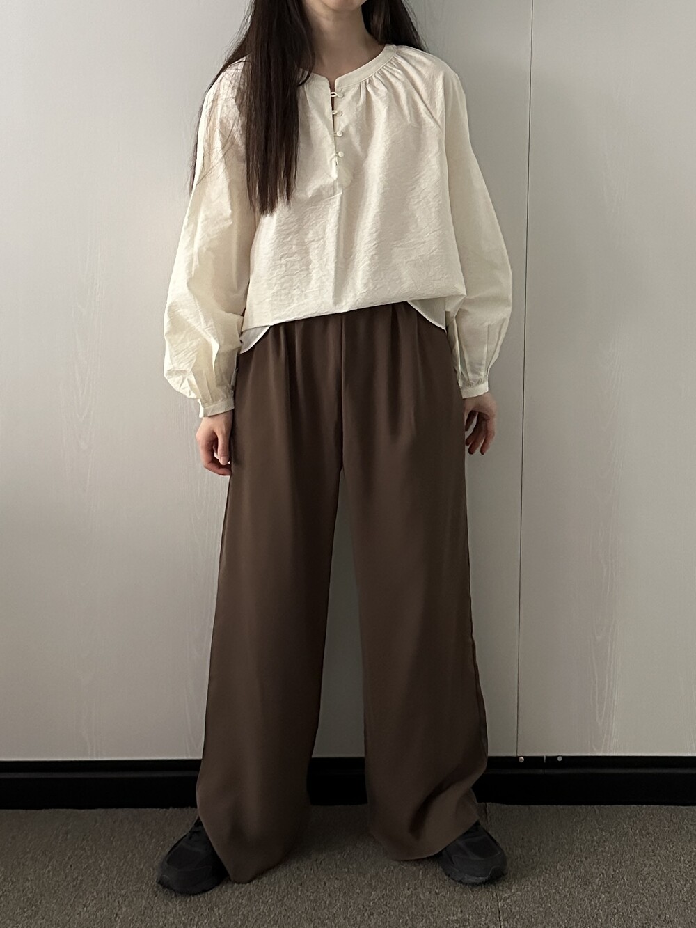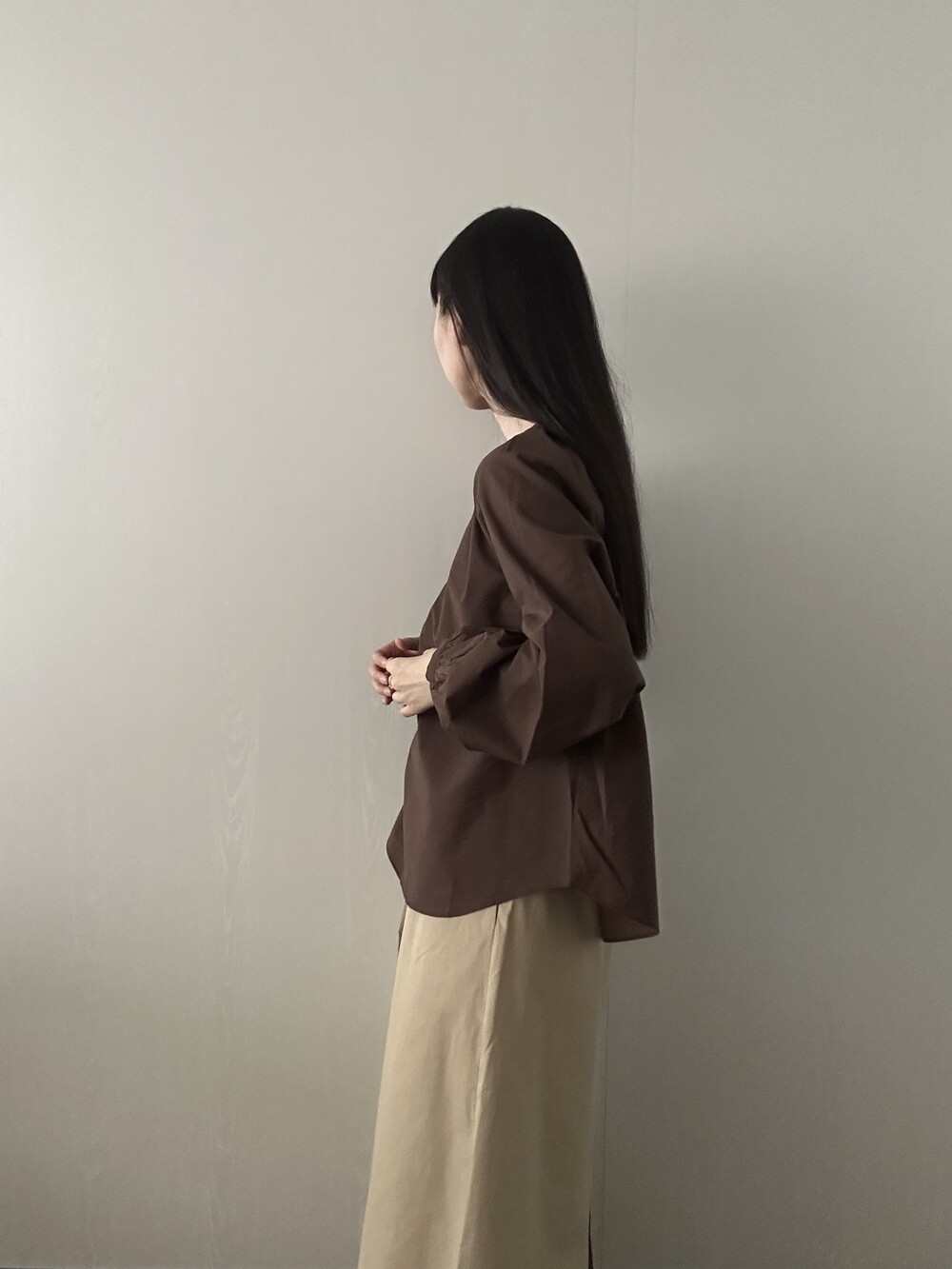 넥 라인이 부담스럽지 않아 마른 체형의 분들이 입기에도 좋으며 데일리룩 뿐 아니라 오피스룩으로도 활용하기 좋습니다.