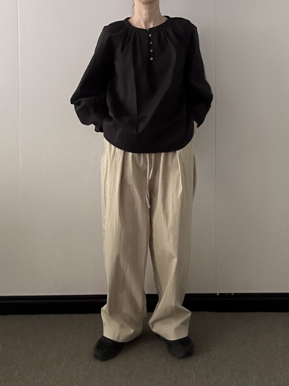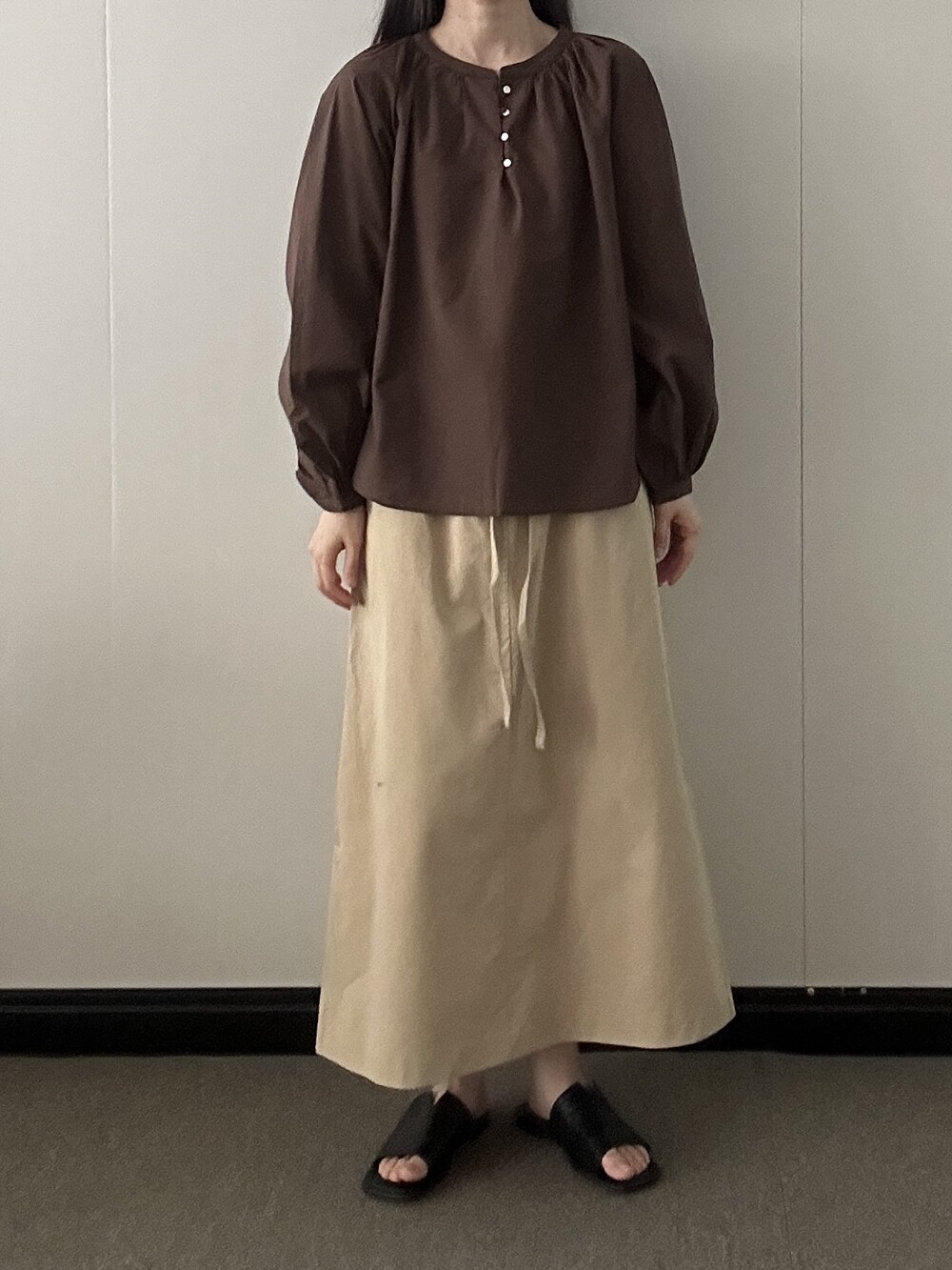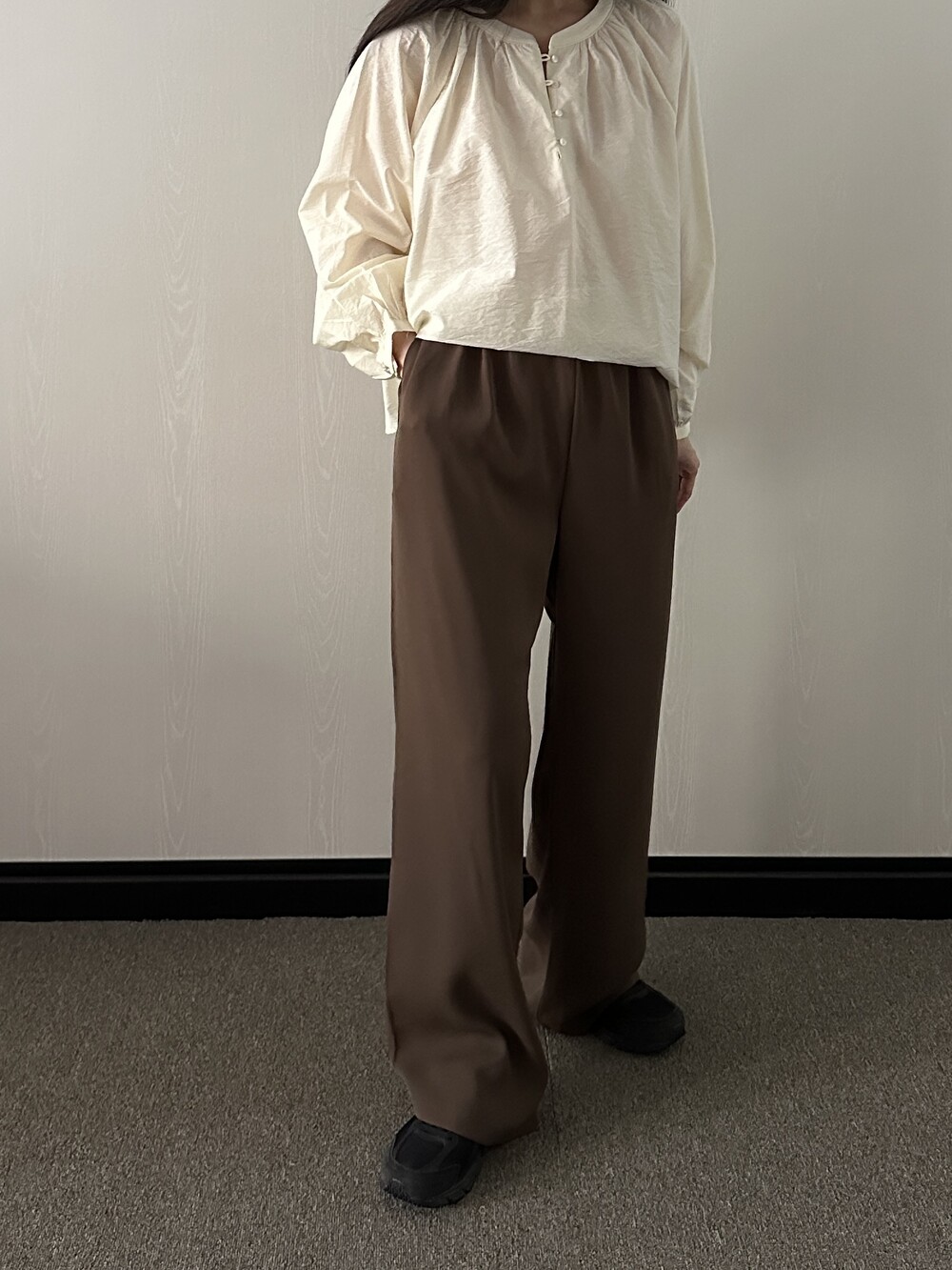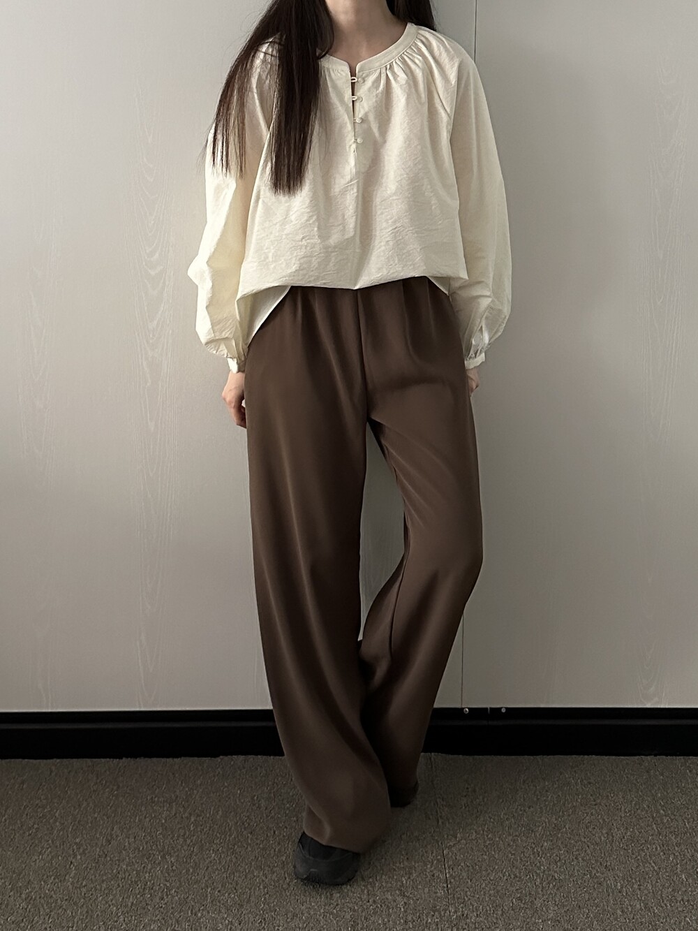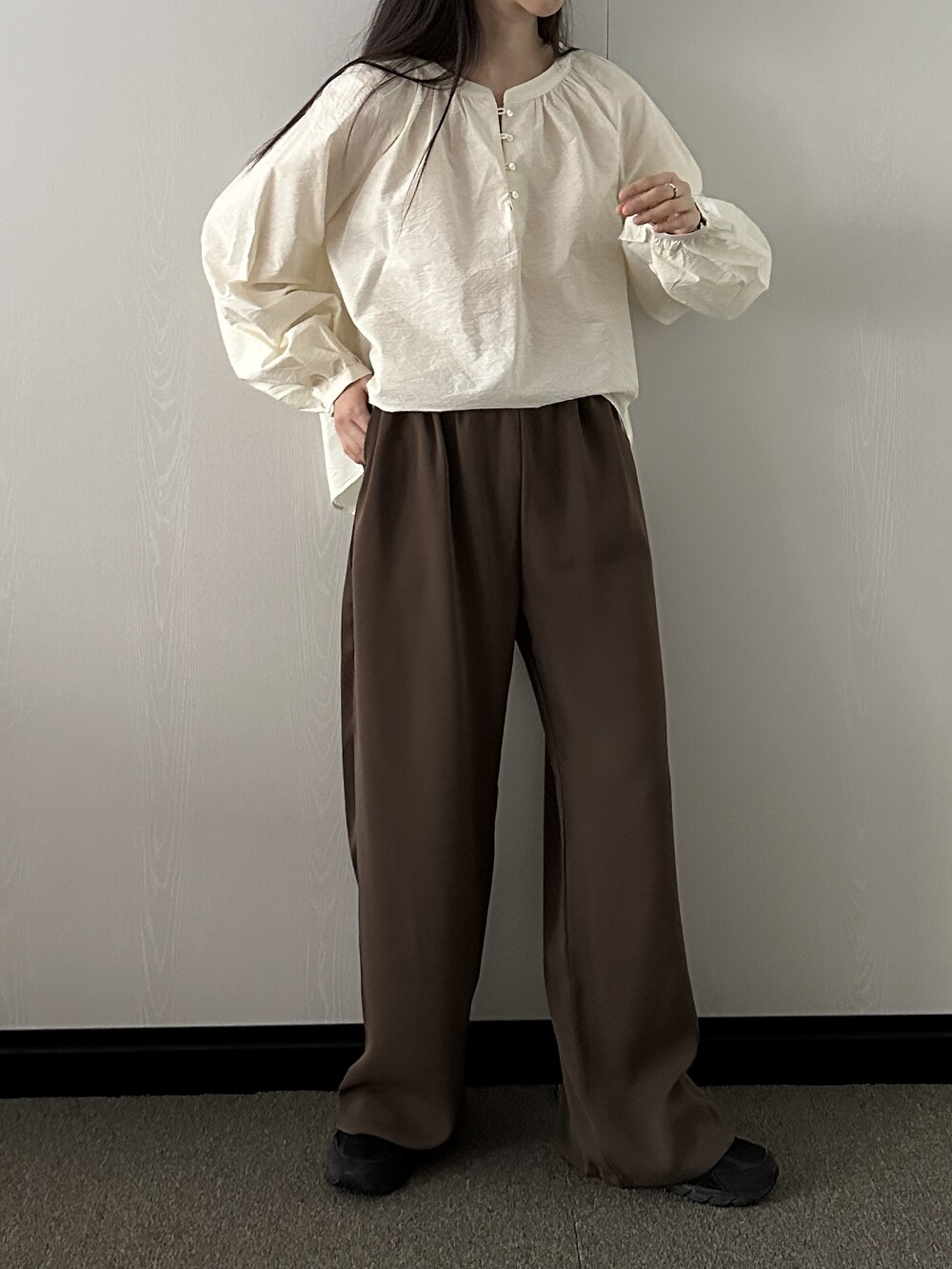 넥 라인이 부담스럽지 않아 마른 체형의 분들이 입기에도 좋으며 데일리룩 뿐 아니라 오피스룩으로도 활용하기 좋습니다.