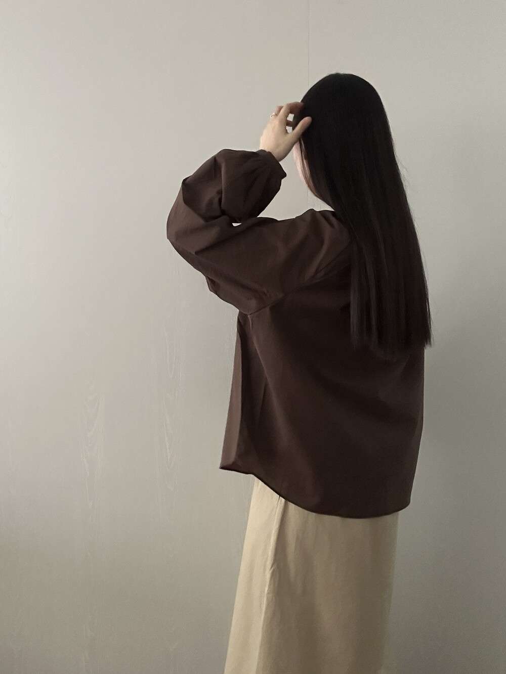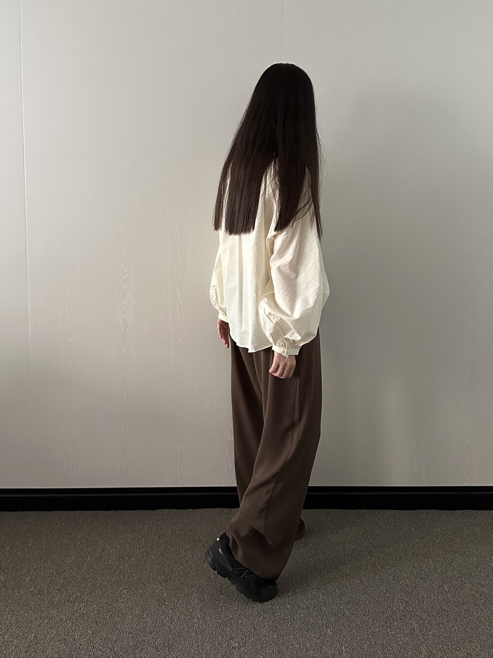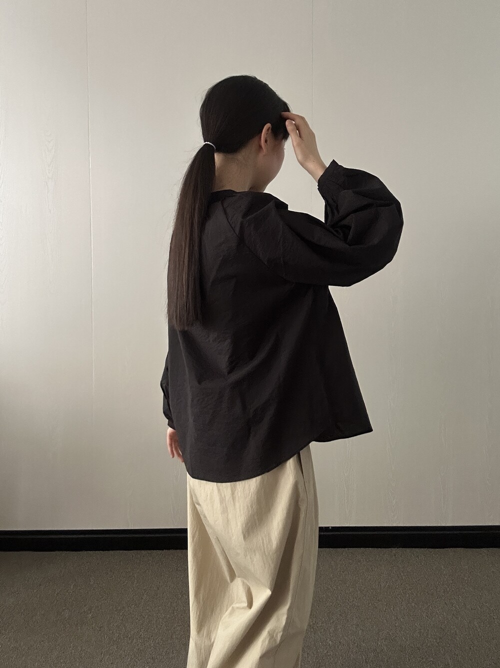 소매에 얇게 잡힌 셔링은 고급 봉제 기술로 소매에 볼륨감을 살려주며 전체적으로 아방한 핏을 만들어 줍니다.