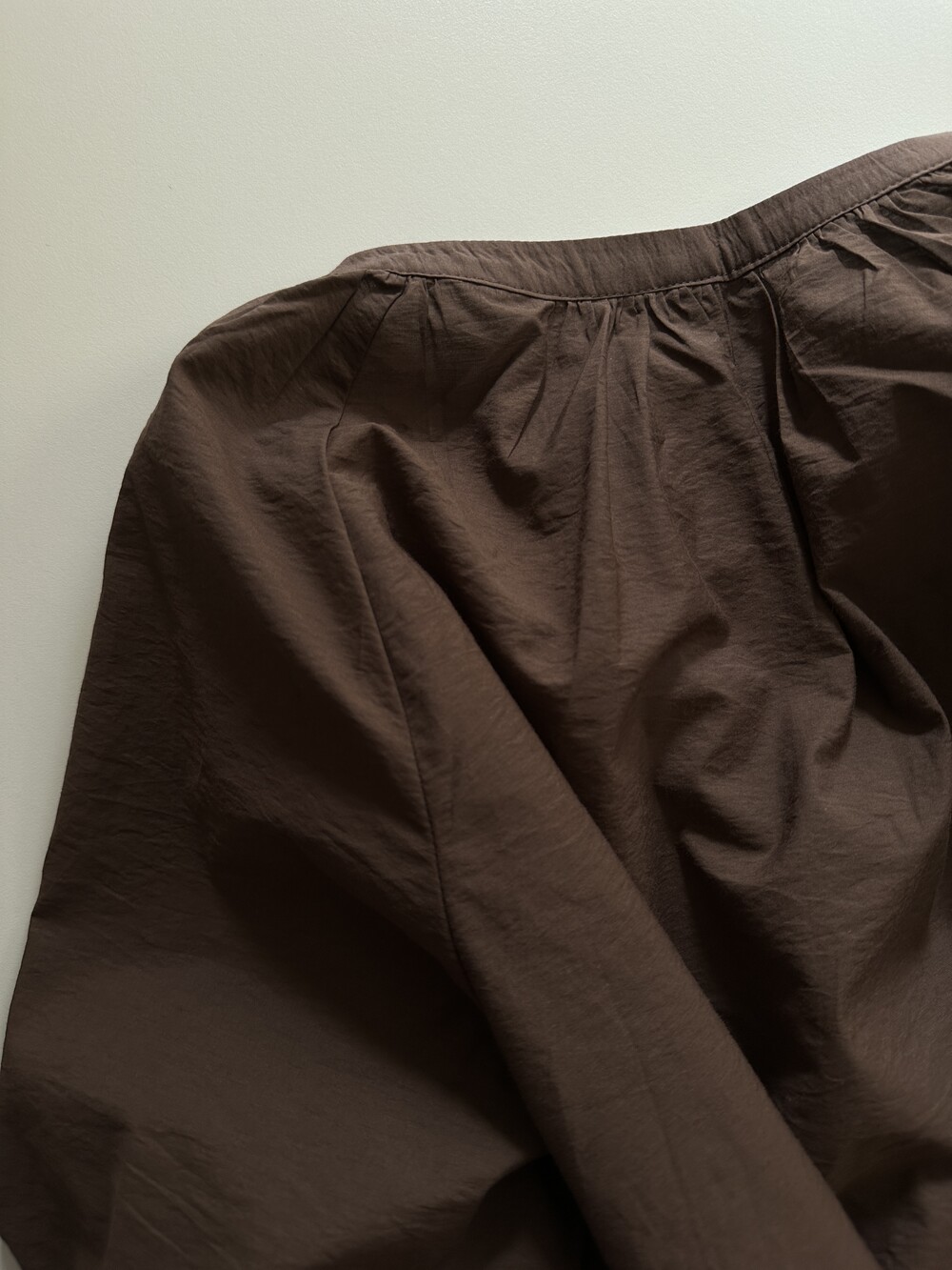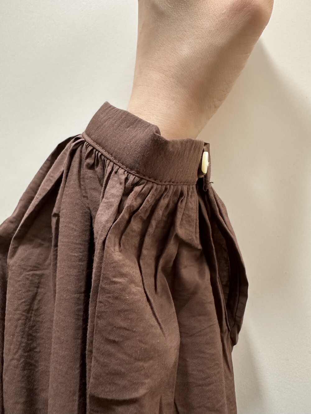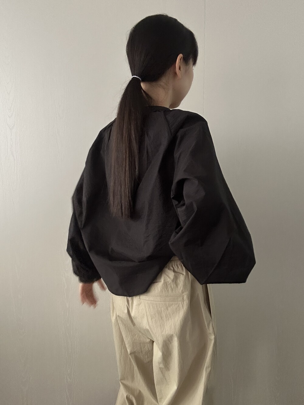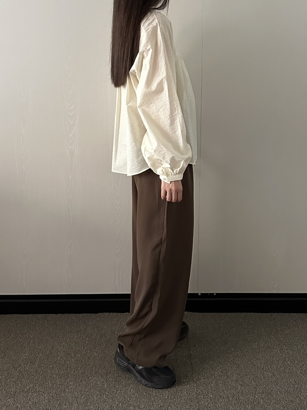 소매에 얇게 잡힌 셔링은 고급 봉제 기술로 소매에 볼륨감을 살려주며 전체적으로 아방한 핏을 만들어 줍니다.