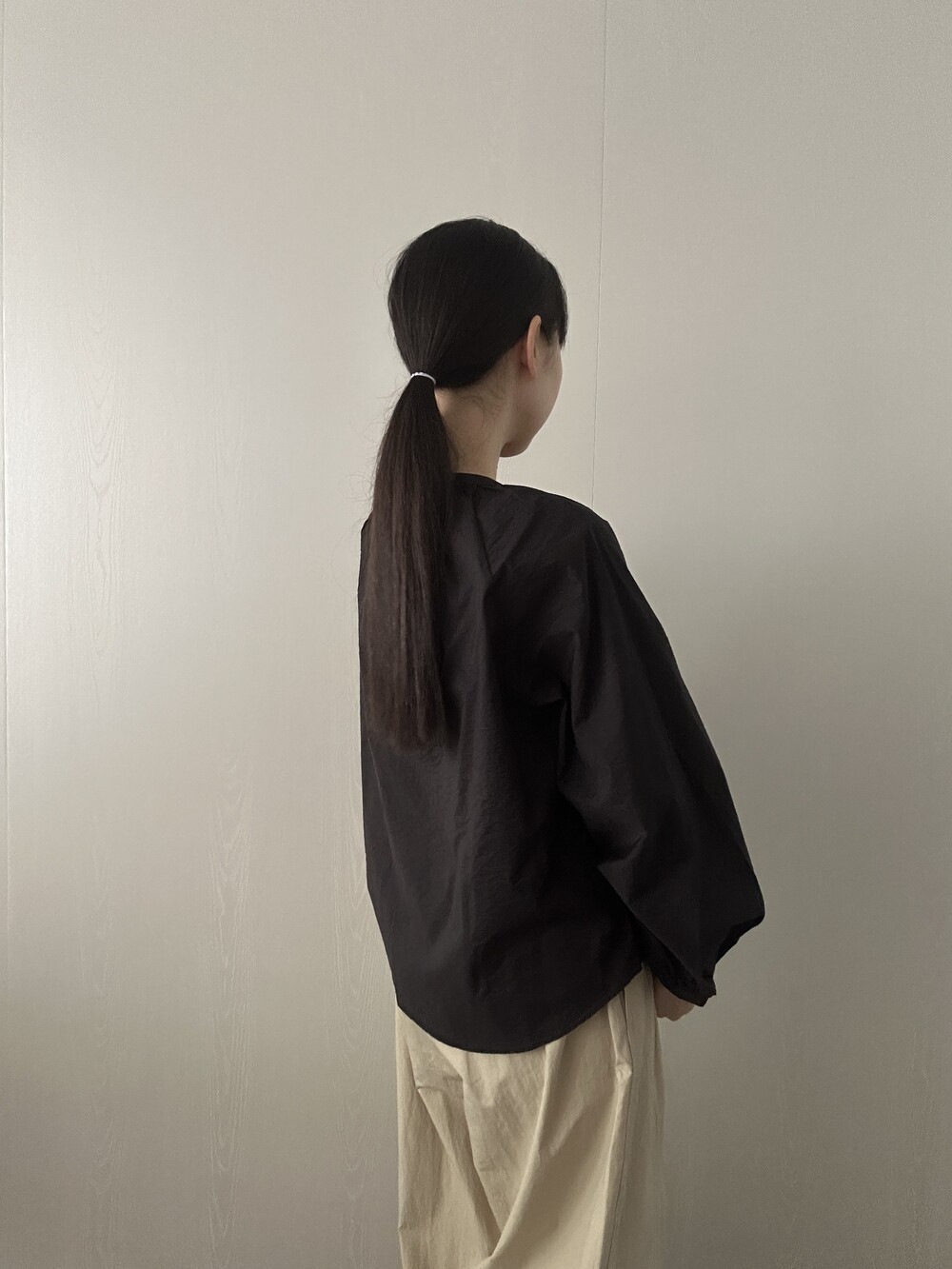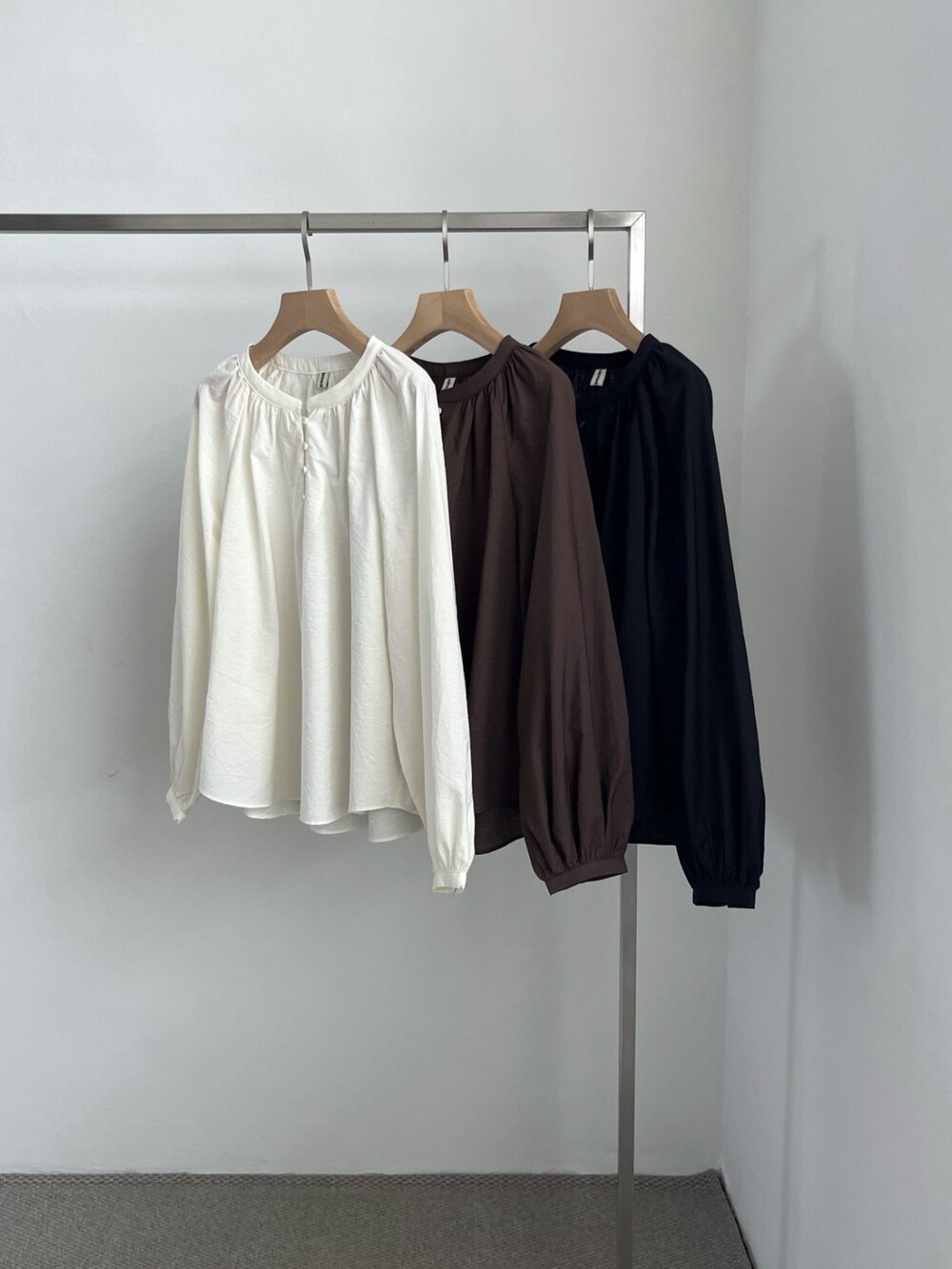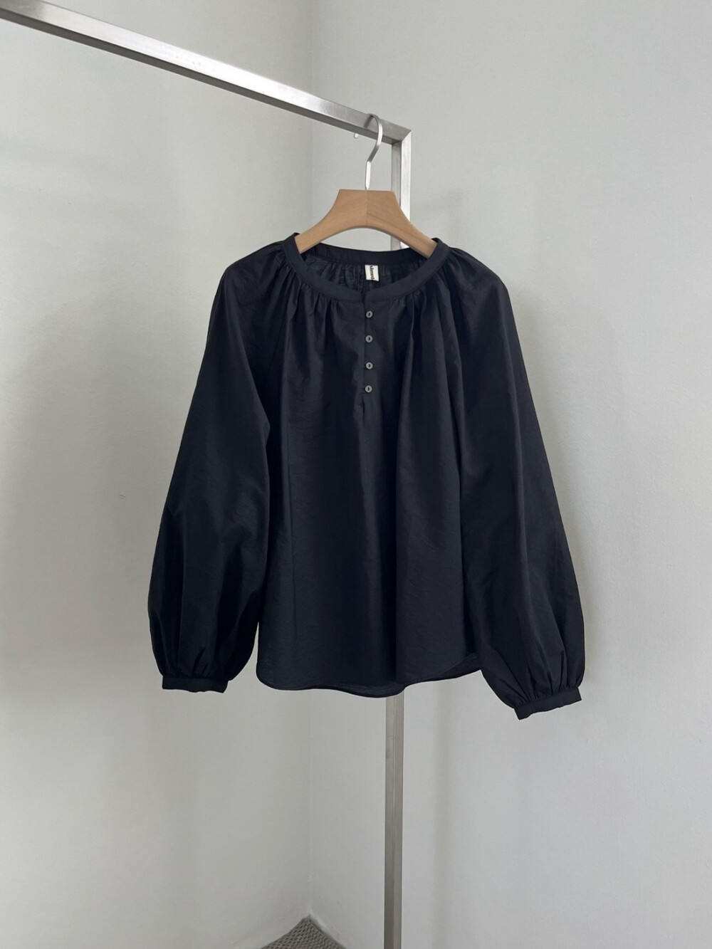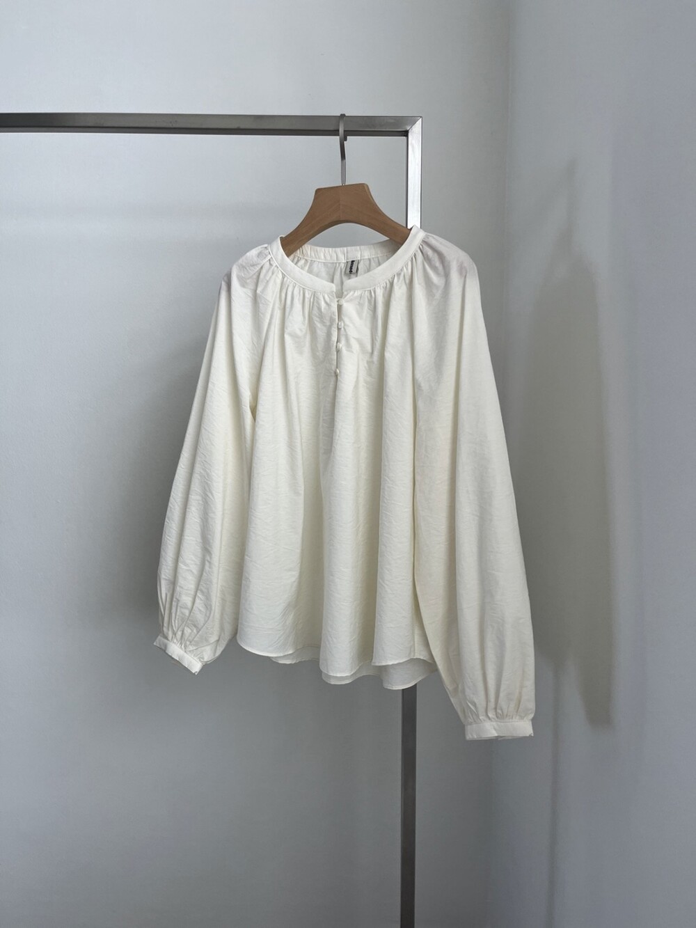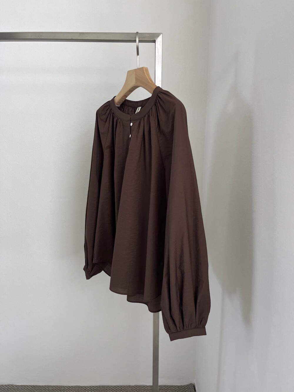 네크라인에 셔링이 매력적인 라글란 블라우스입니다.