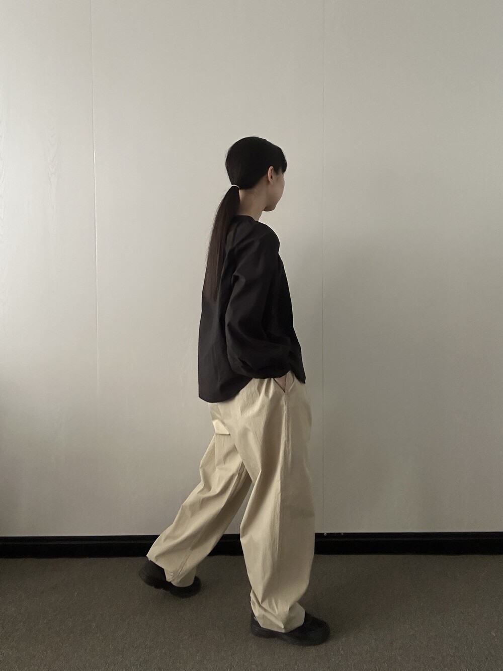 코튼 , 나일론 혼방으로 소재로 매끄러운 느낌과 매트한 느낌을 동시에 갖고 있어 유니크합니다.