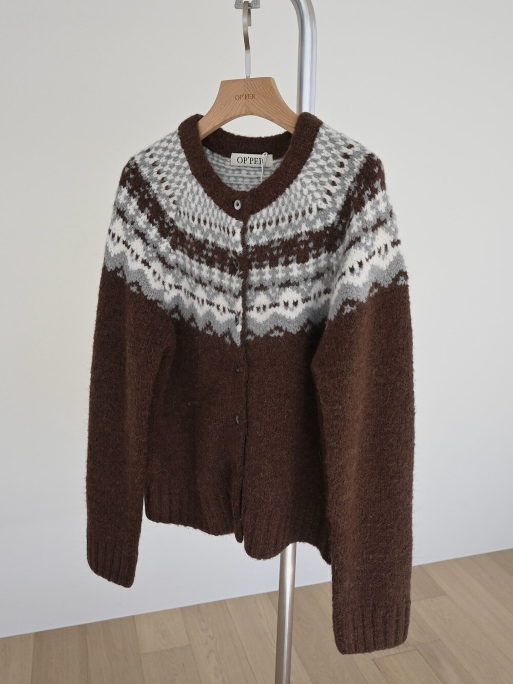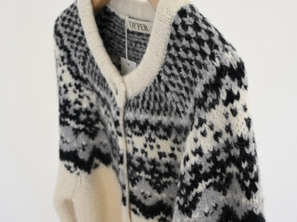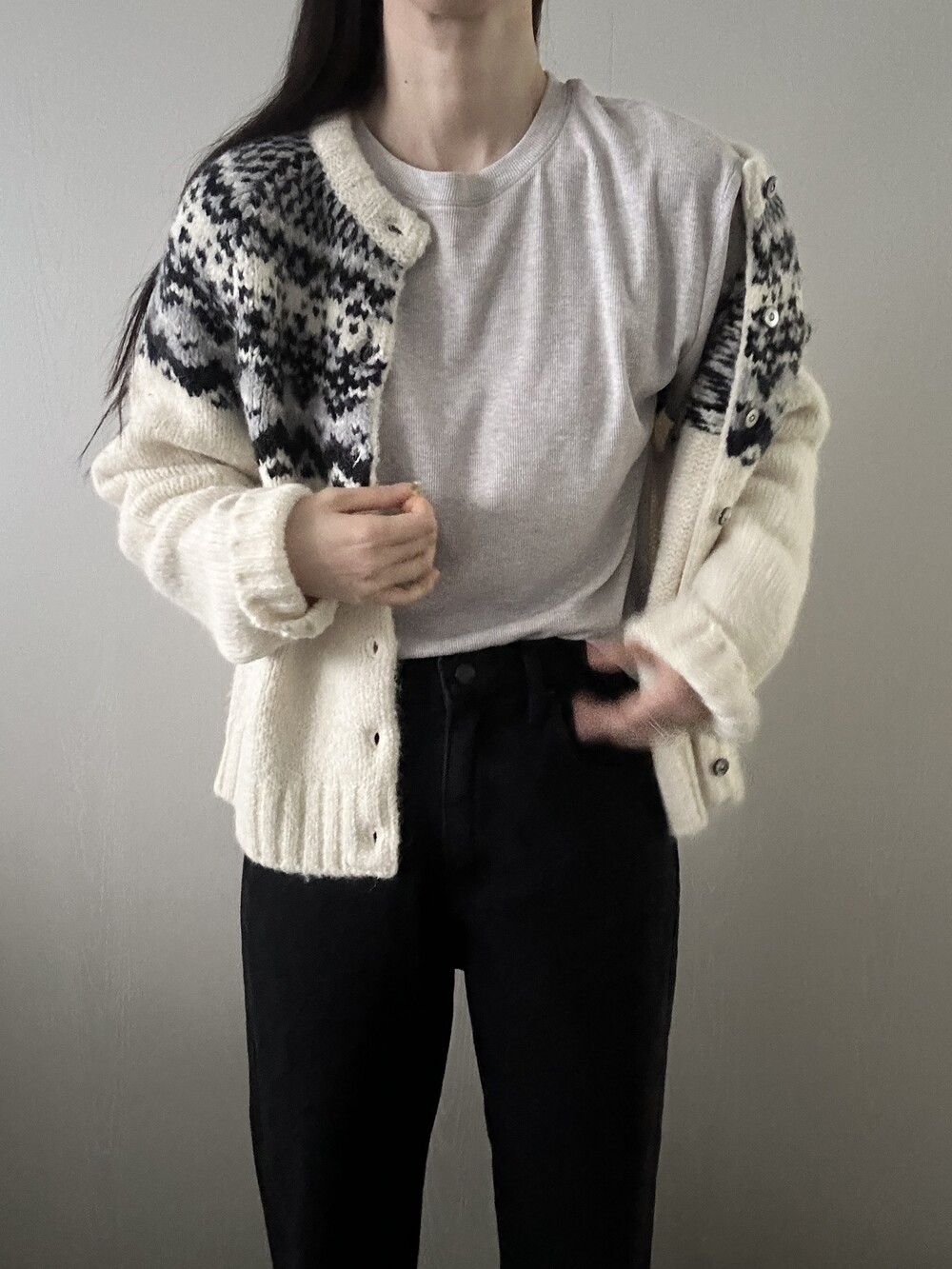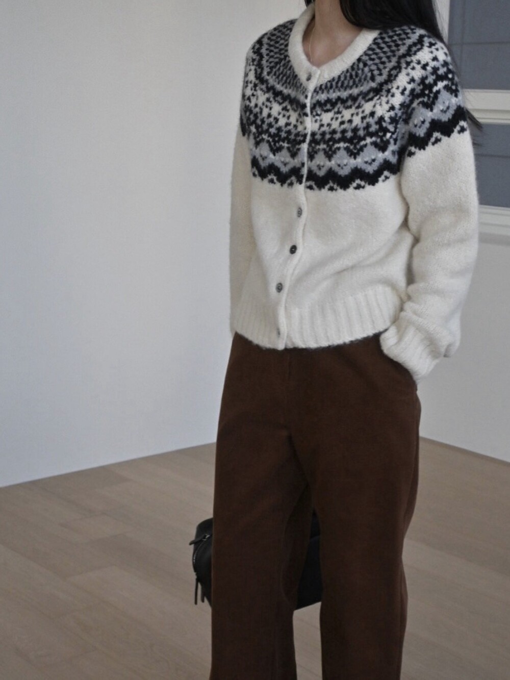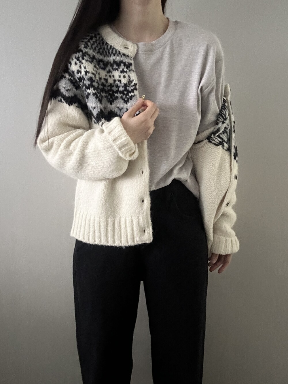 빈티지한 자가드 패턴이 매력적인 가디건입니다.