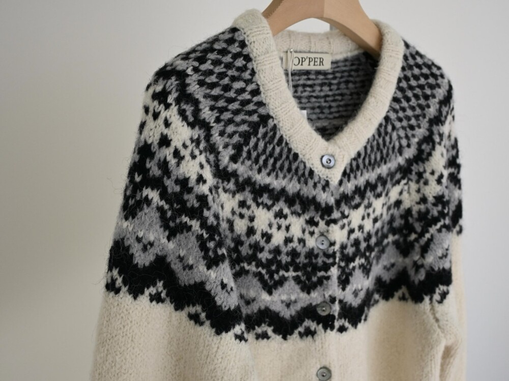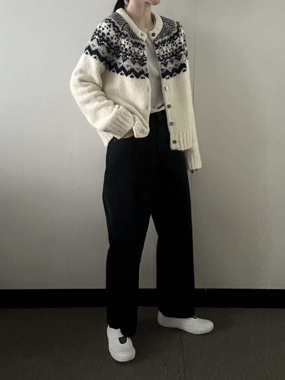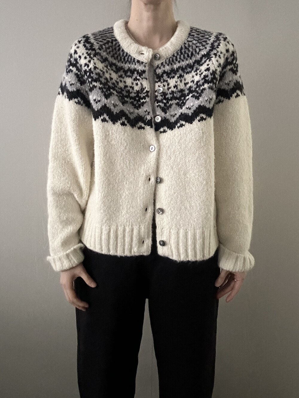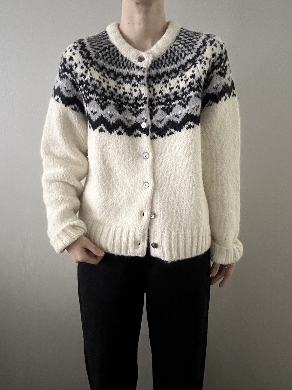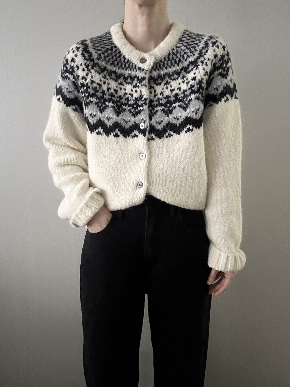 빈티지한 자가드 패턴이 매력적인 가디건입니다.