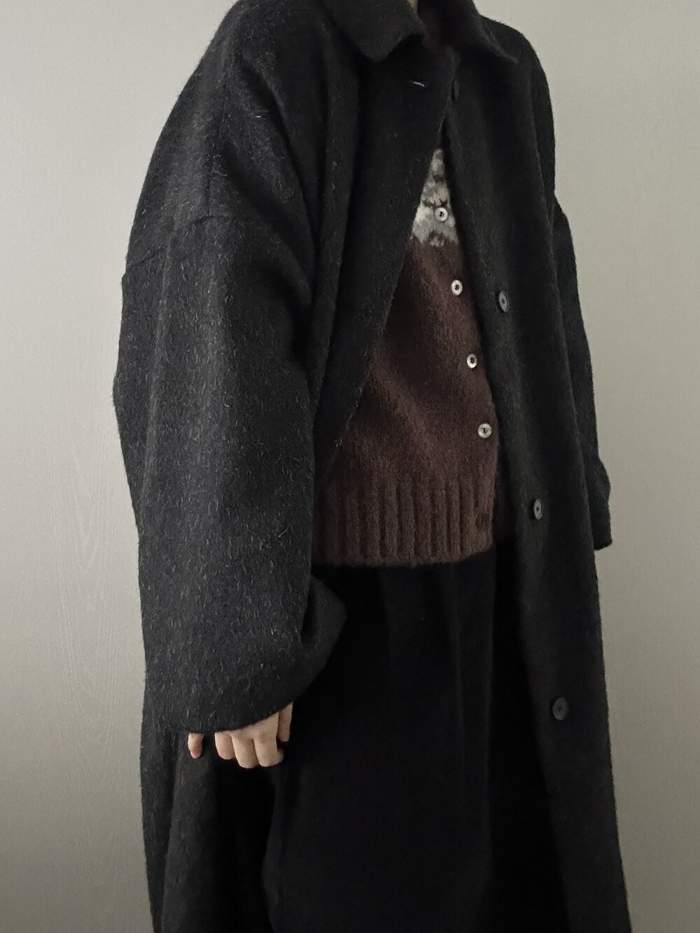 알파카가 함유되어 있어 특유의 포근해 보이는 헤어감이 느껴지는 포슬포슬한 소재입니다.