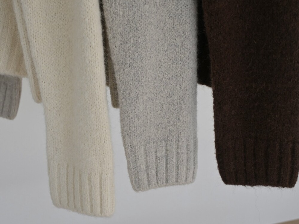 보통 알파카 가디건은 조금 따갑다는 단점이 있는데요 , 이 제품은 아크릴 나일론 혼방으로 최대한 거친 느낌을 보완하였습니다.