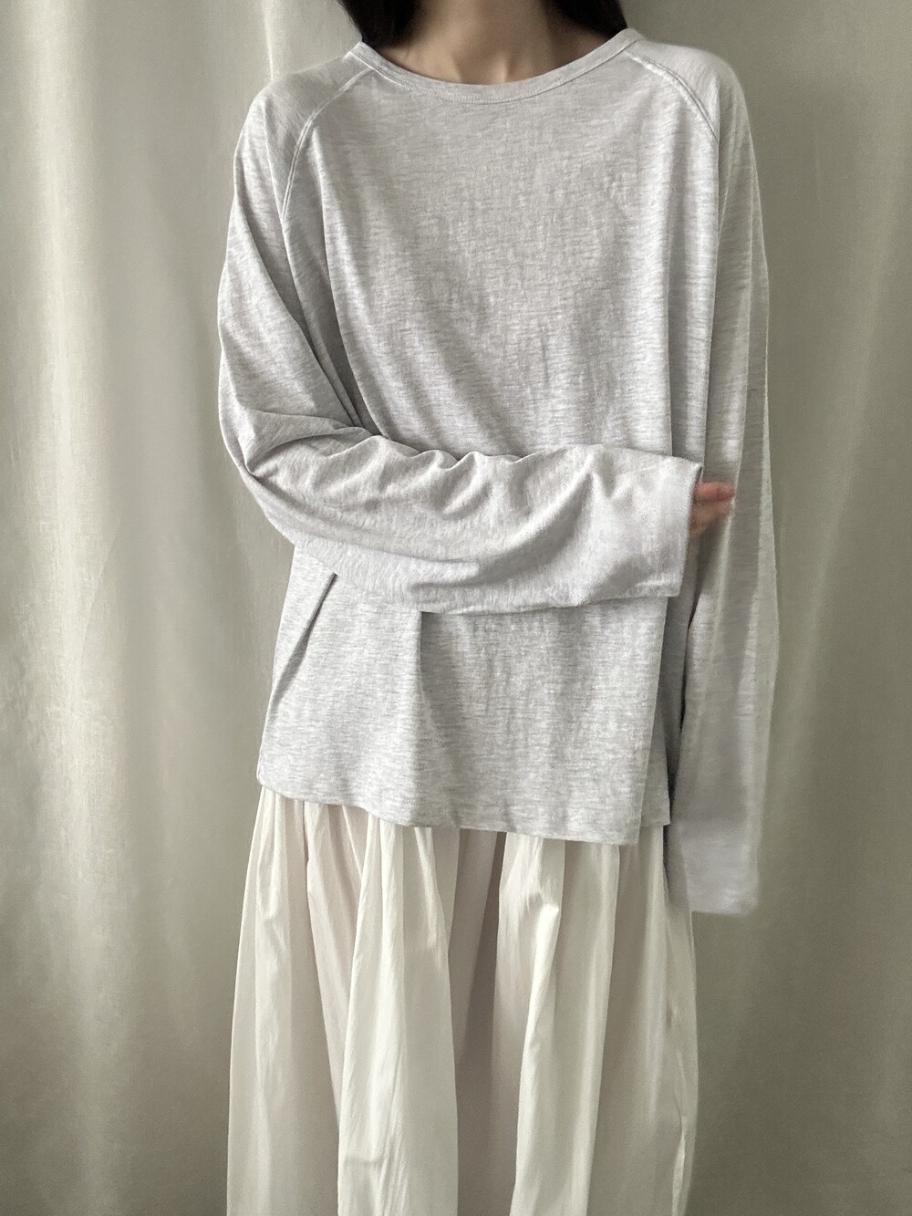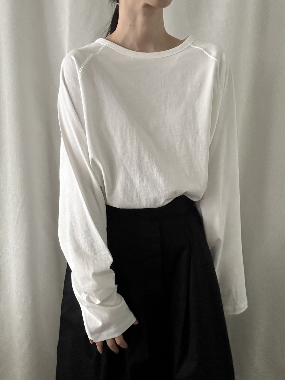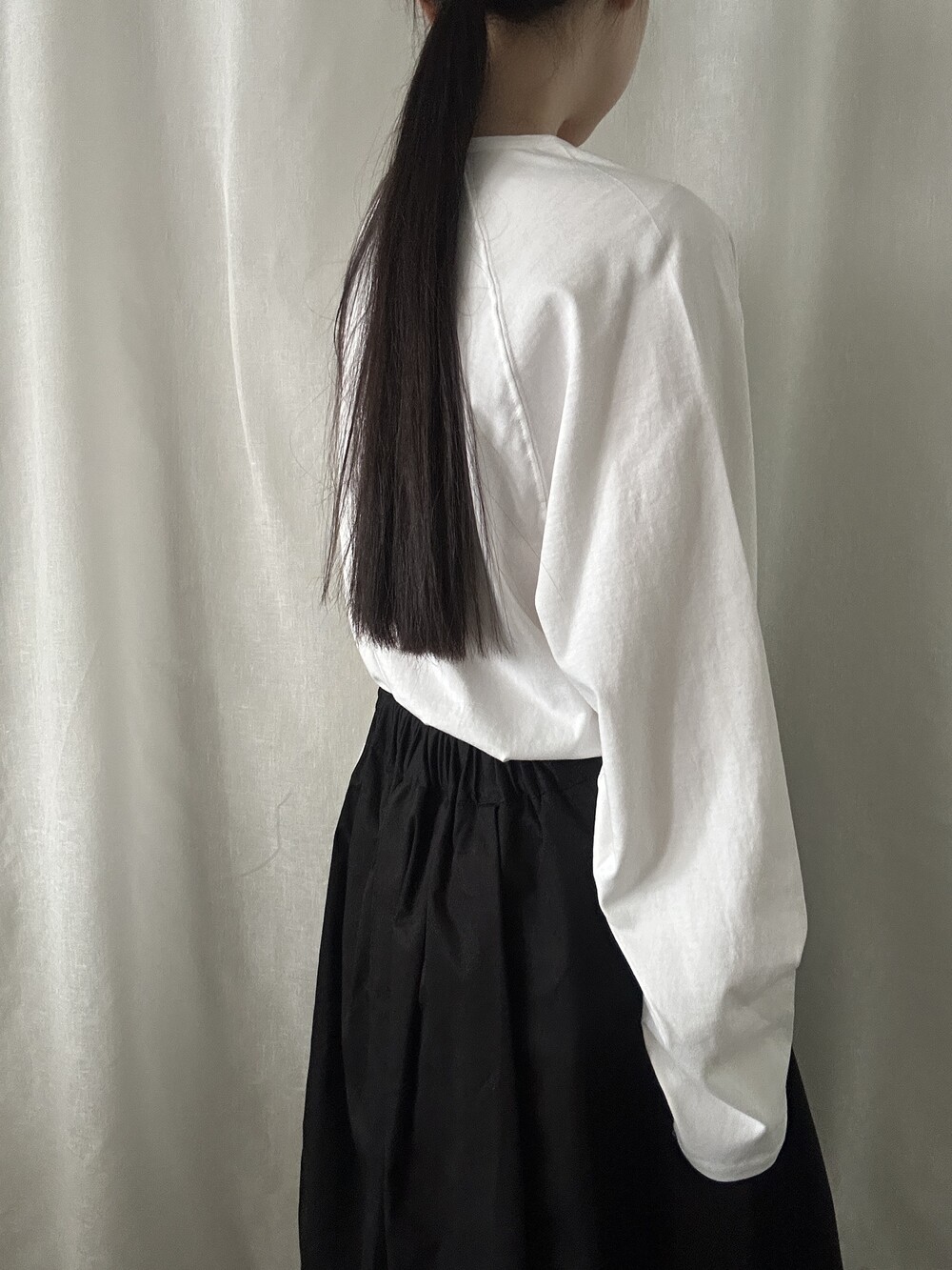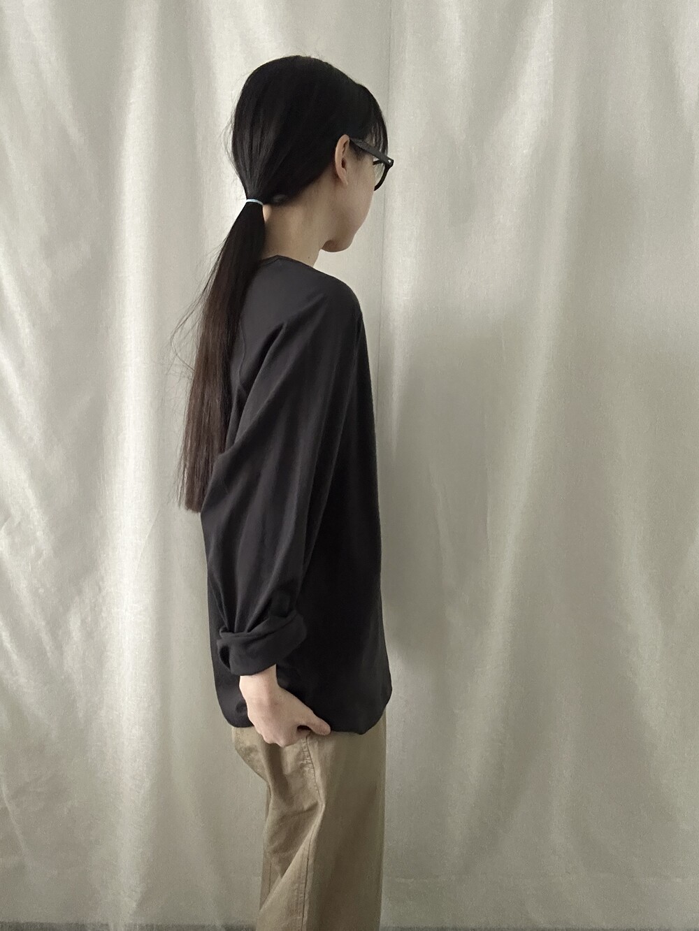 톡톡한 각 잡힌 소재가 아닌 얇고 몸의 실루엣에 따라 흐르듯 떨어지는 티셔츠입니다.