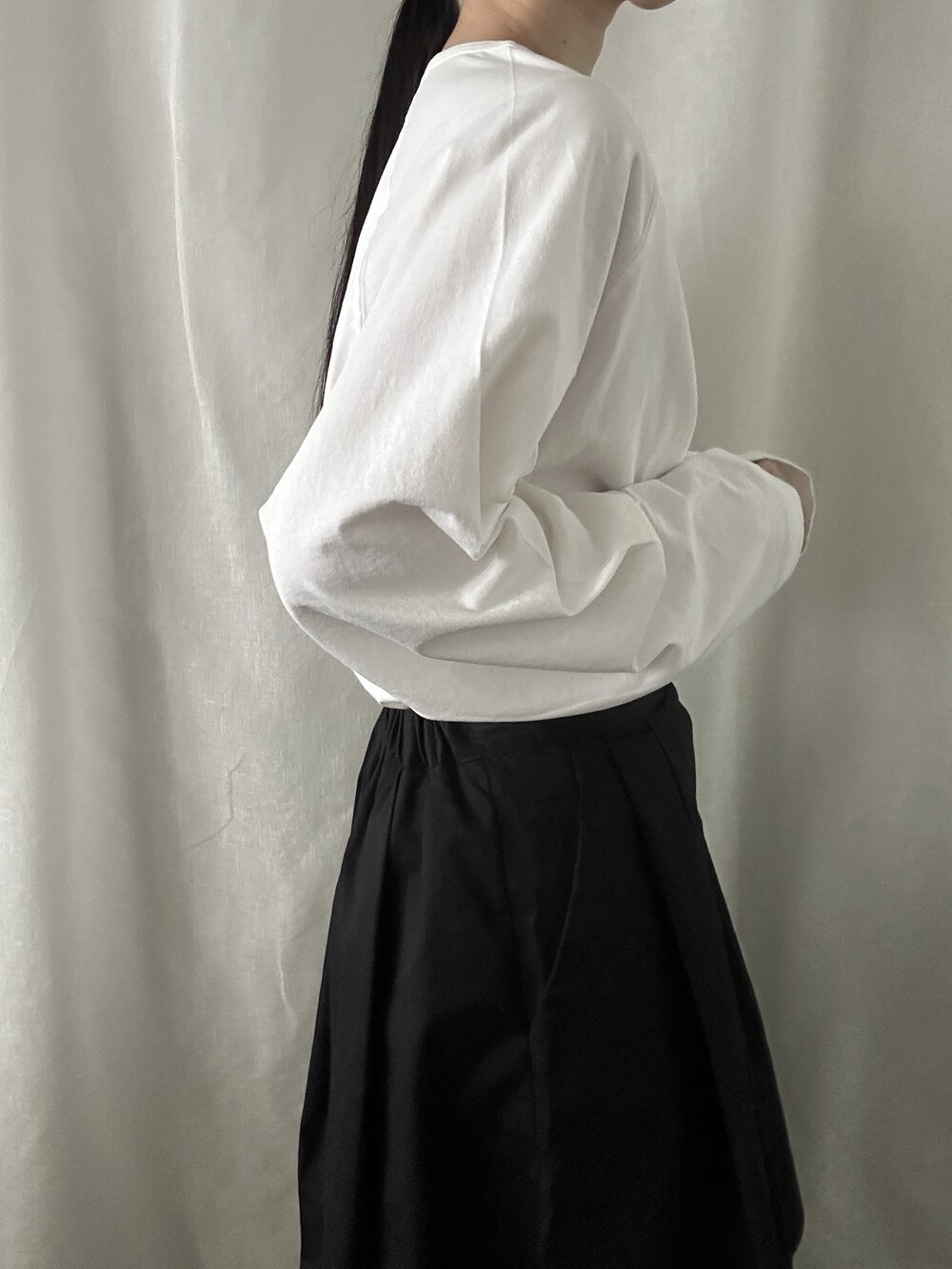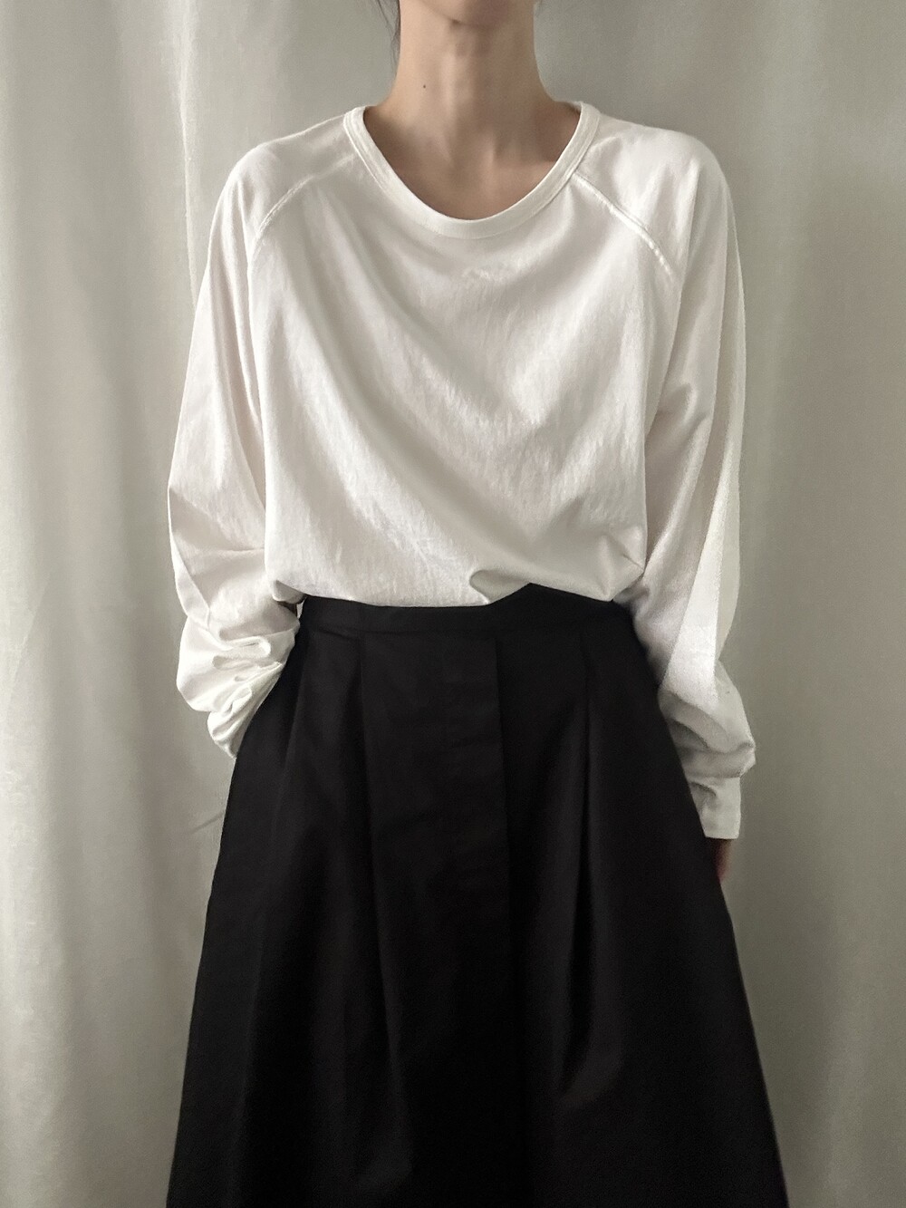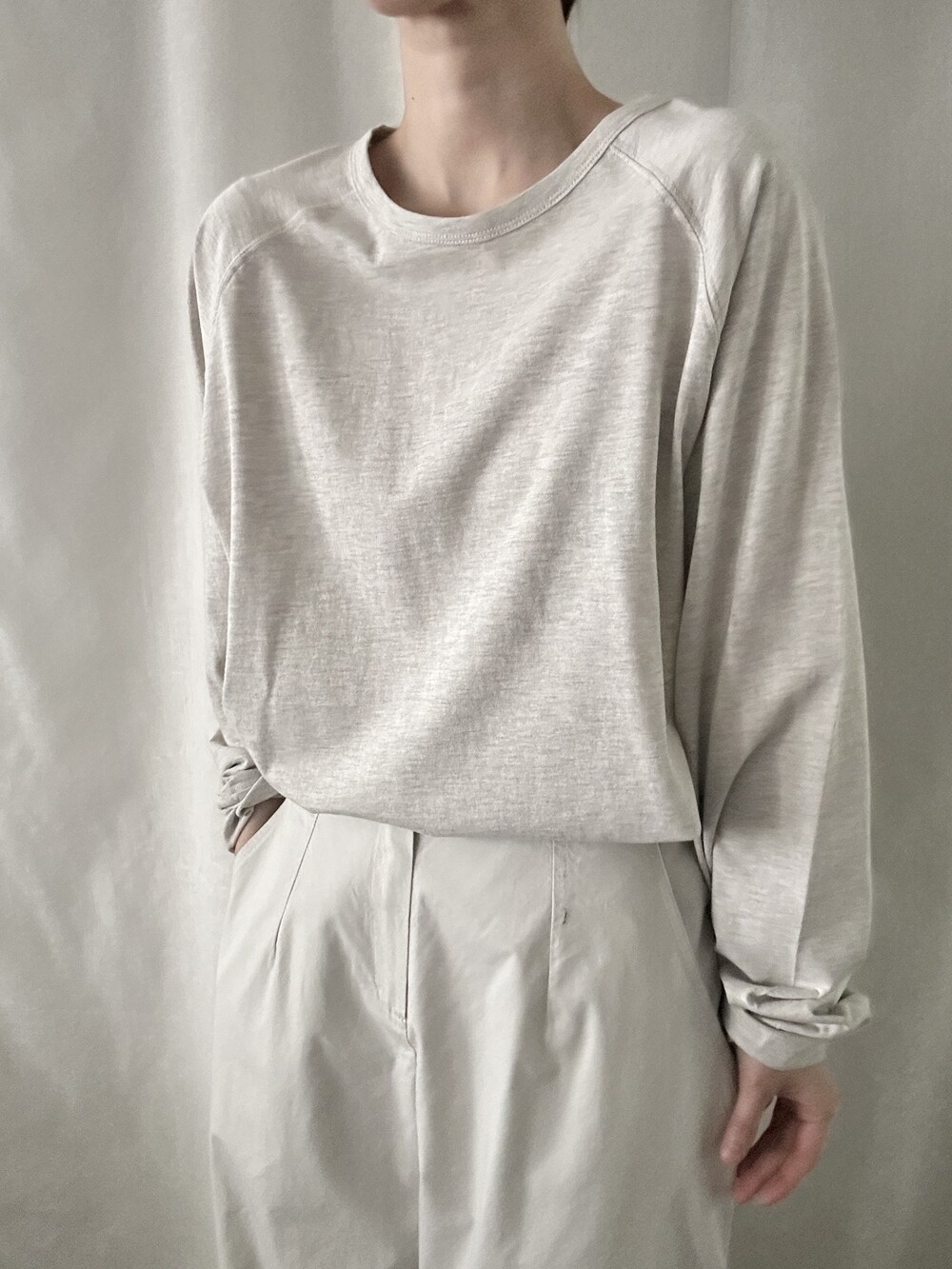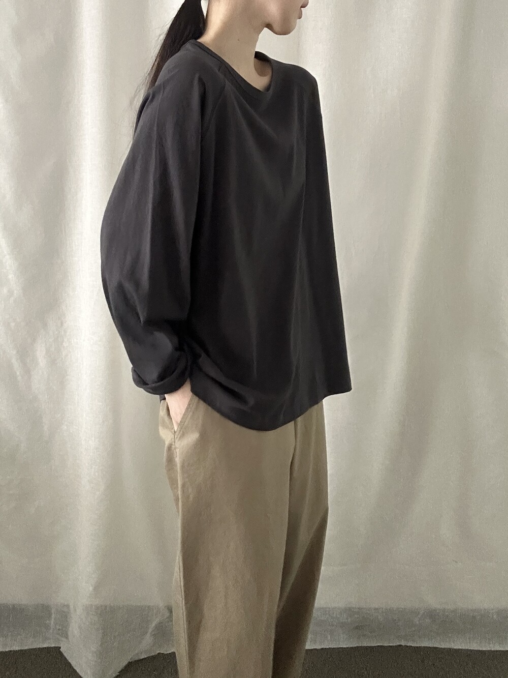 톡톡한 각 잡힌 소재가 아닌 얇고 몸의 실루엣에 따라 흐르듯 떨어지는 티셔츠입니다.