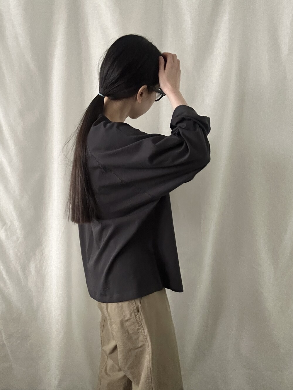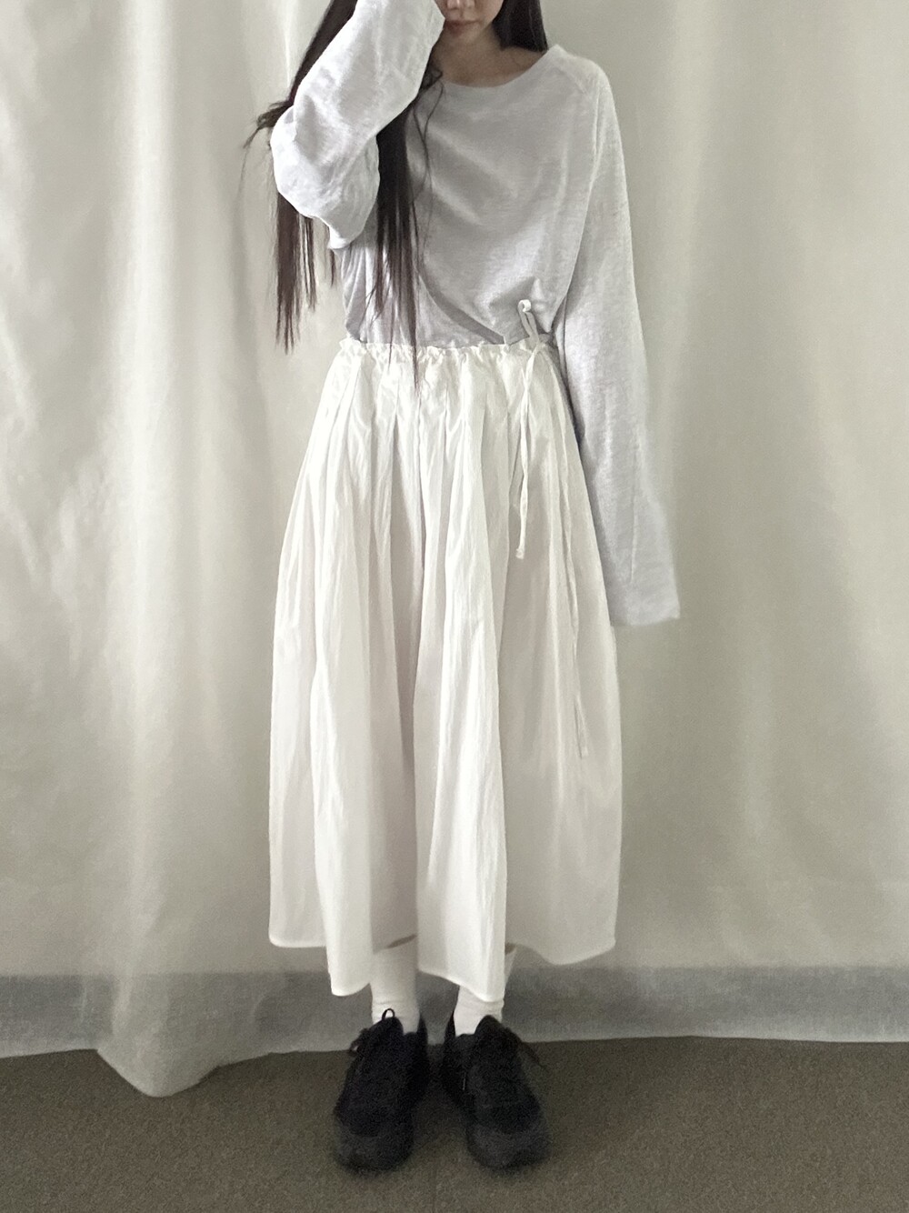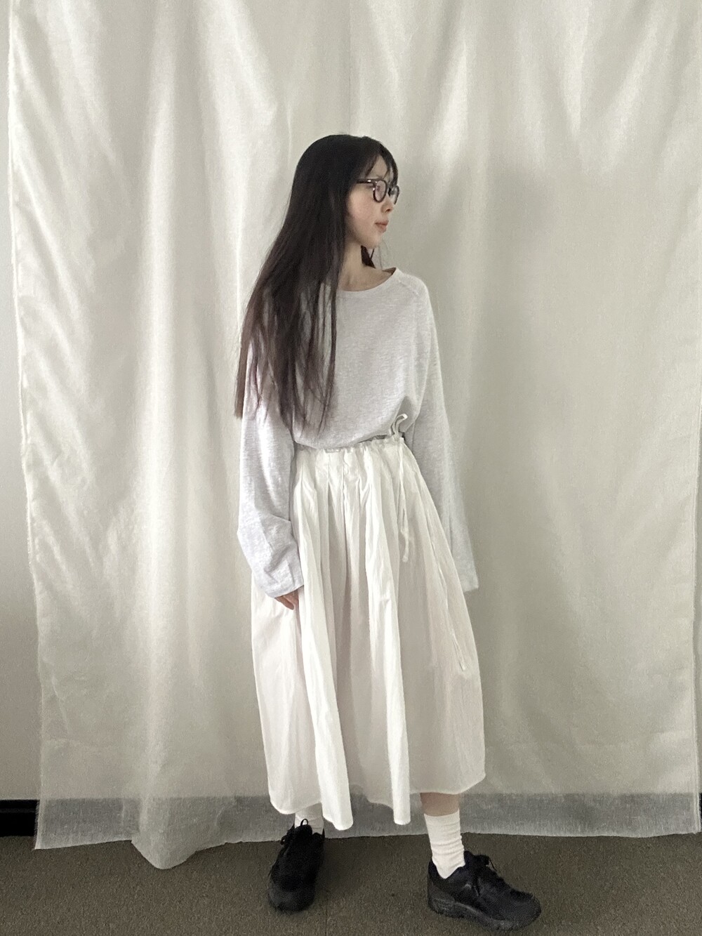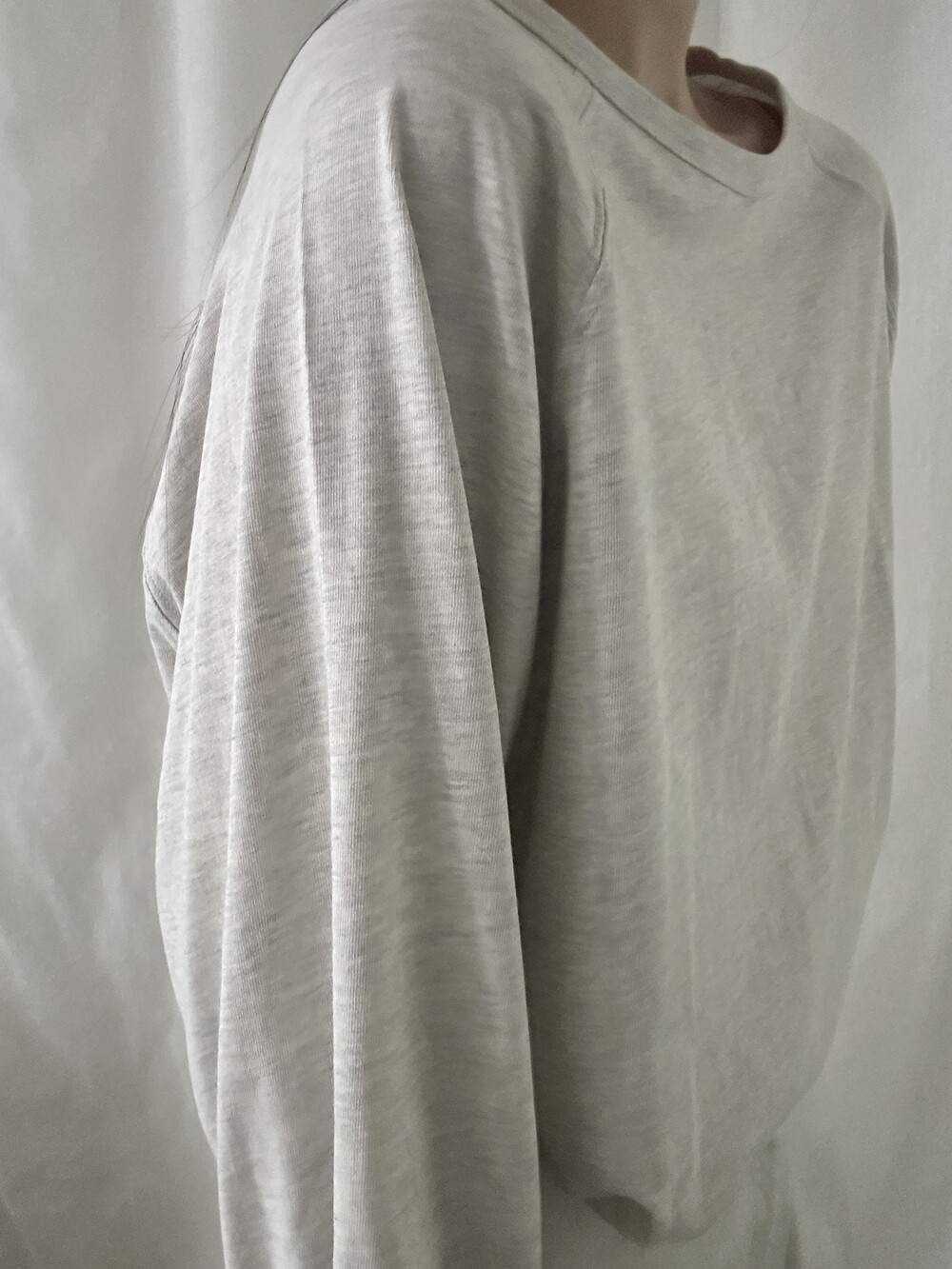 톡톡한 각 잡힌 소재가 아닌 얇고 몸의 실루엣에 따라 흐르듯 떨어지는 티셔츠입니다.