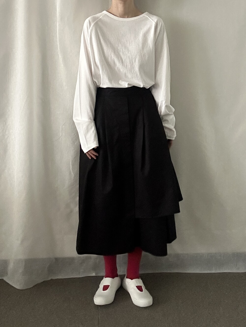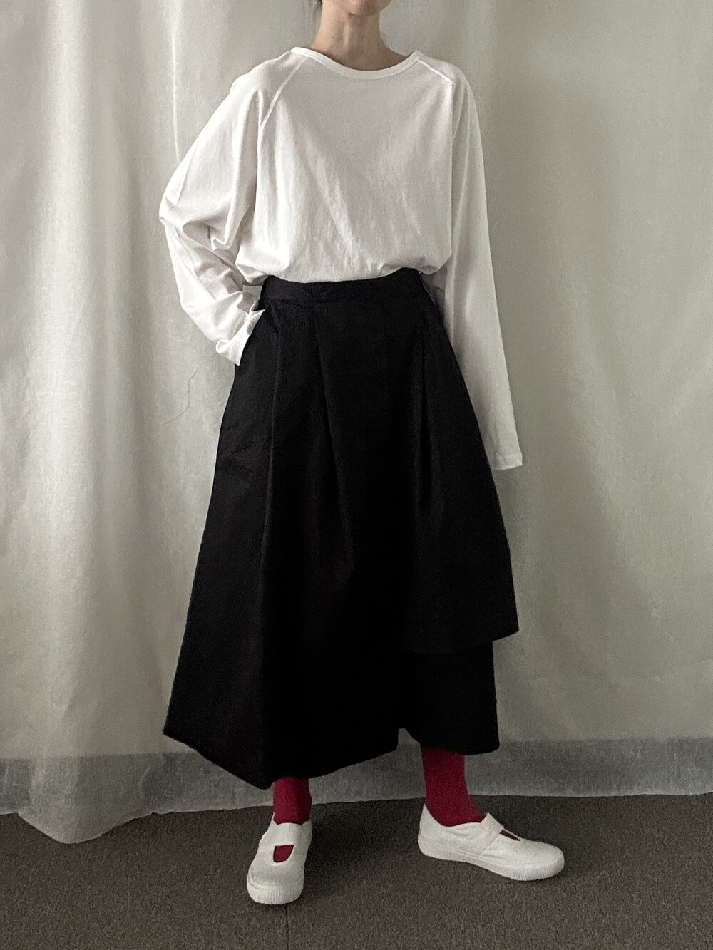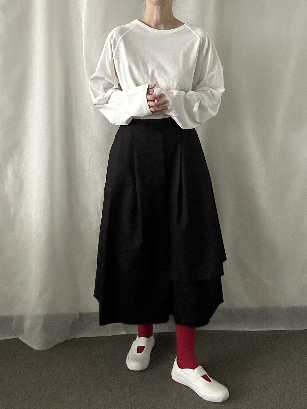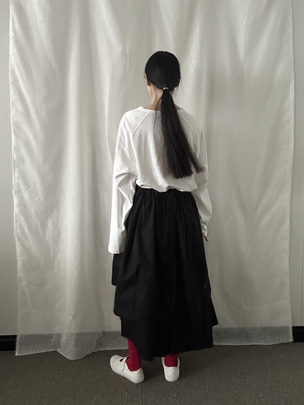 톡톡한 각 잡힌 소재가 아닌 얇고 몸의 실루엣에 따라 흐르듯 떨어지는 티셔츠입니다.
