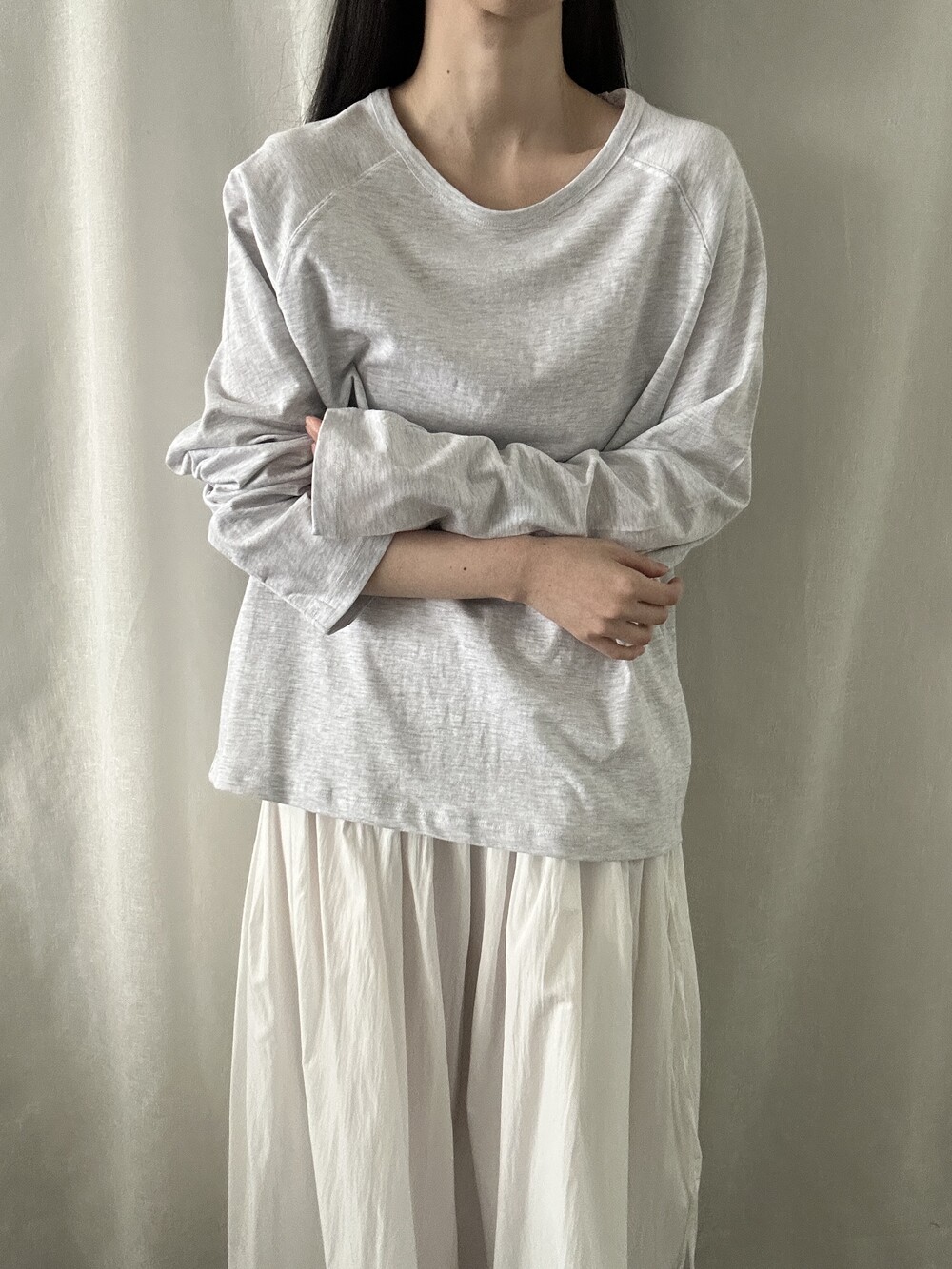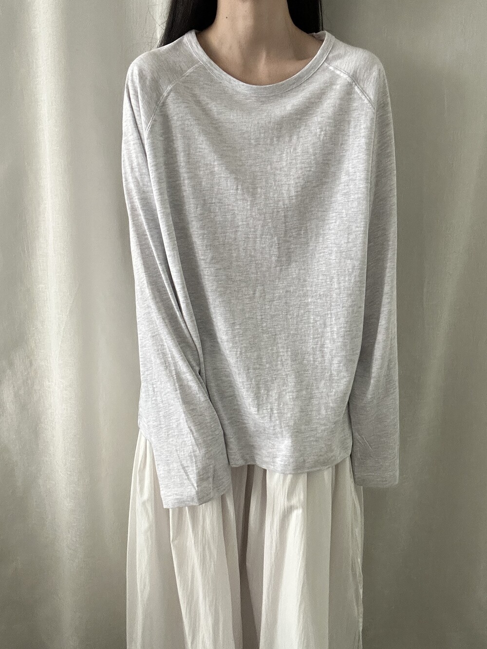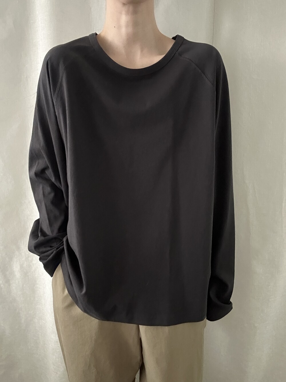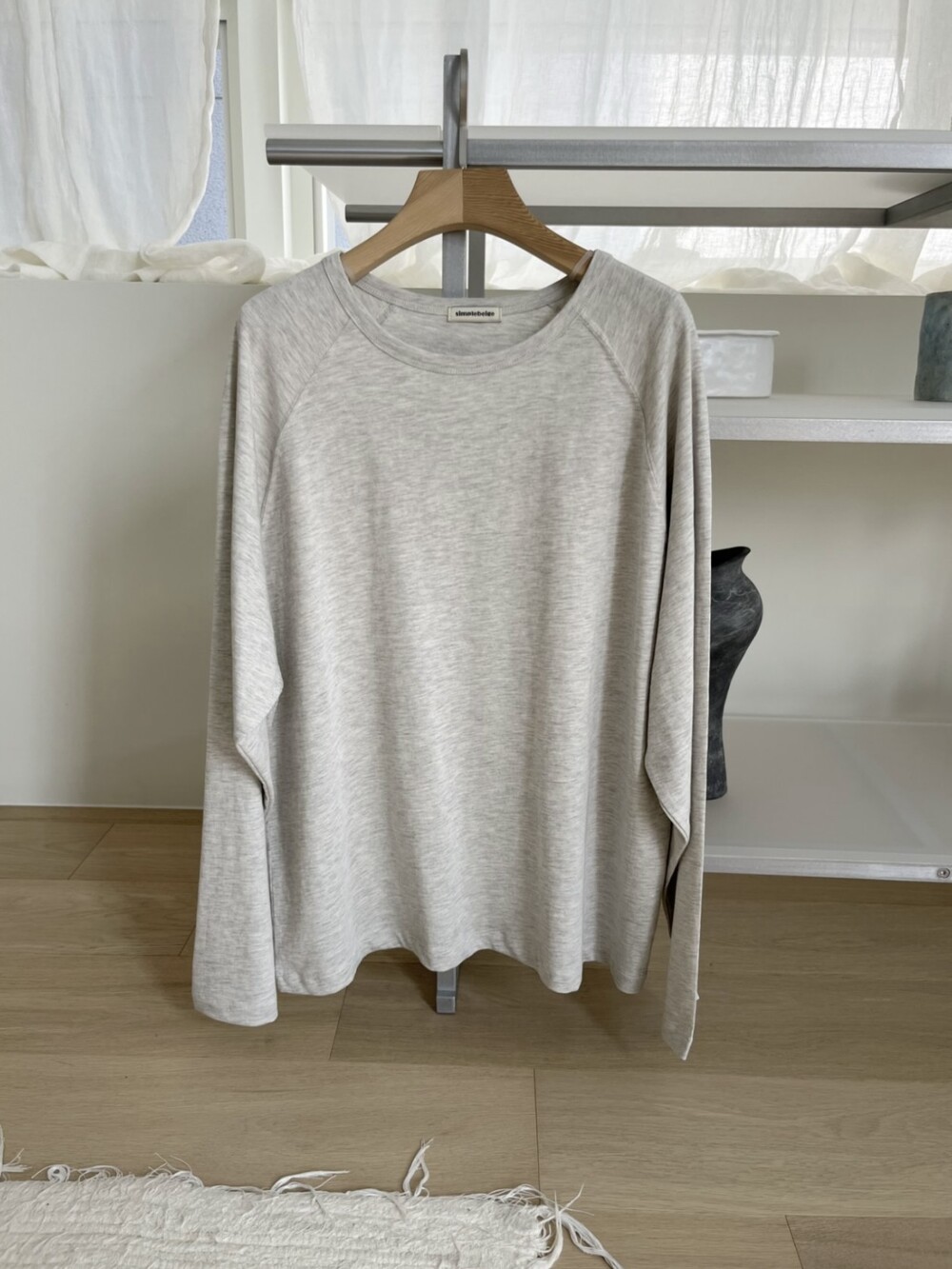 래글런 어깨 패턴으로 넥 라인은 답답하지 않고 길이감도 긴 편입니다.