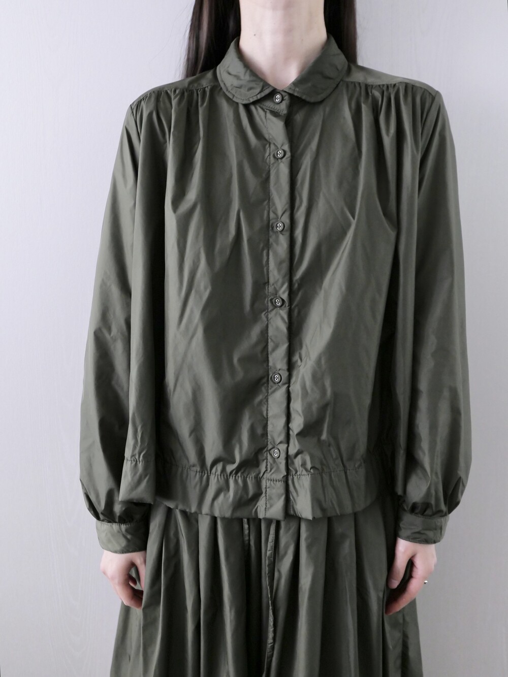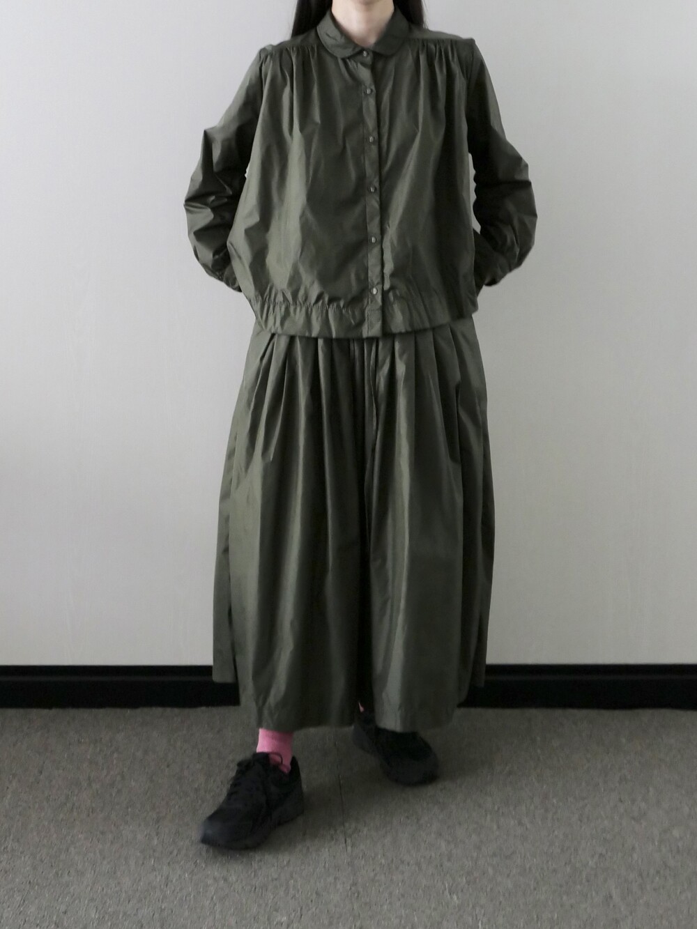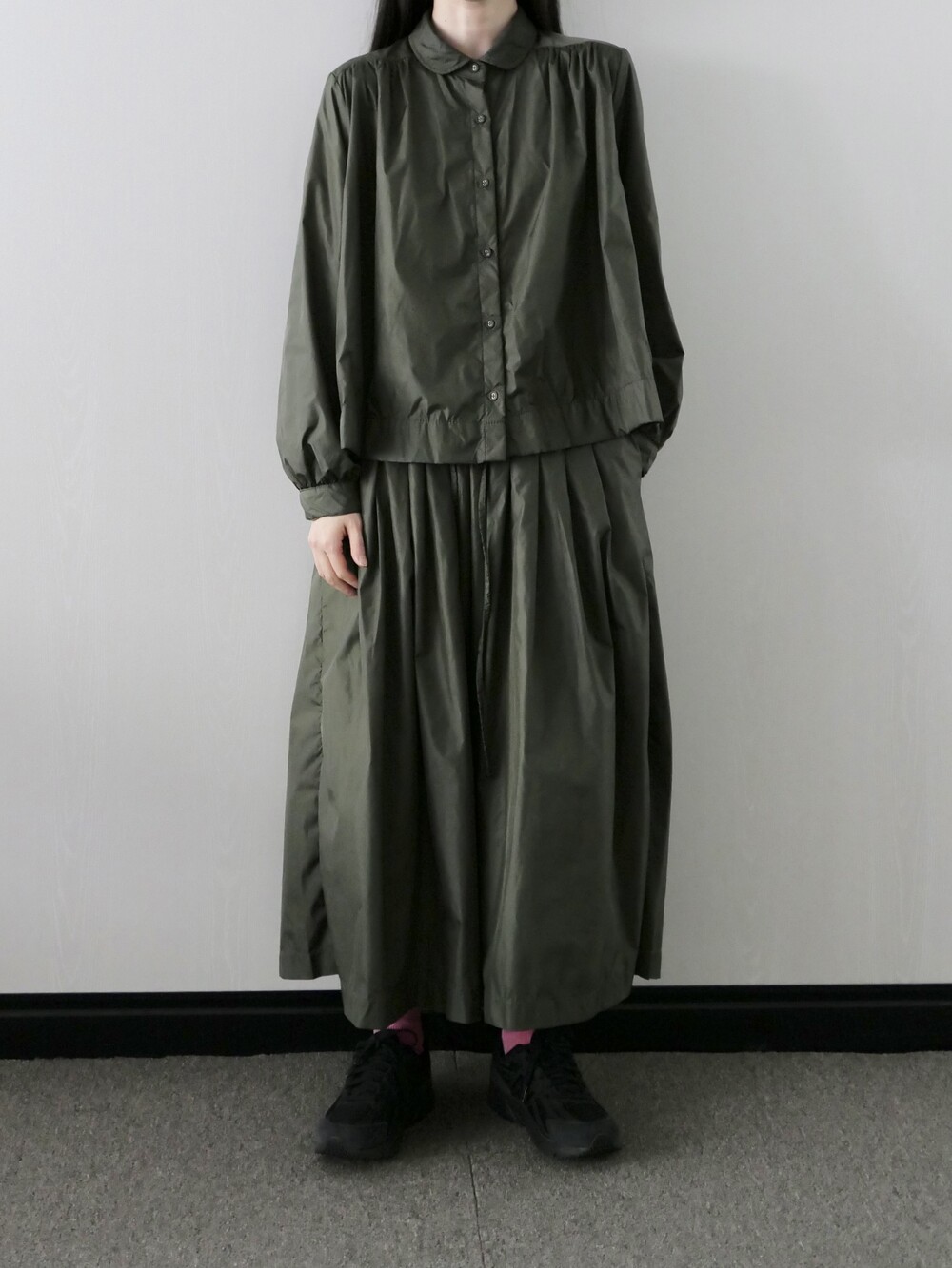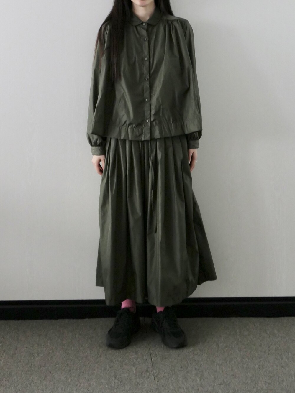 블라우스는 단정하고 귀여운 둥근 카라에 어깨에 셔링이 들어가 단조로움 속에 포인트를 주었습니다.