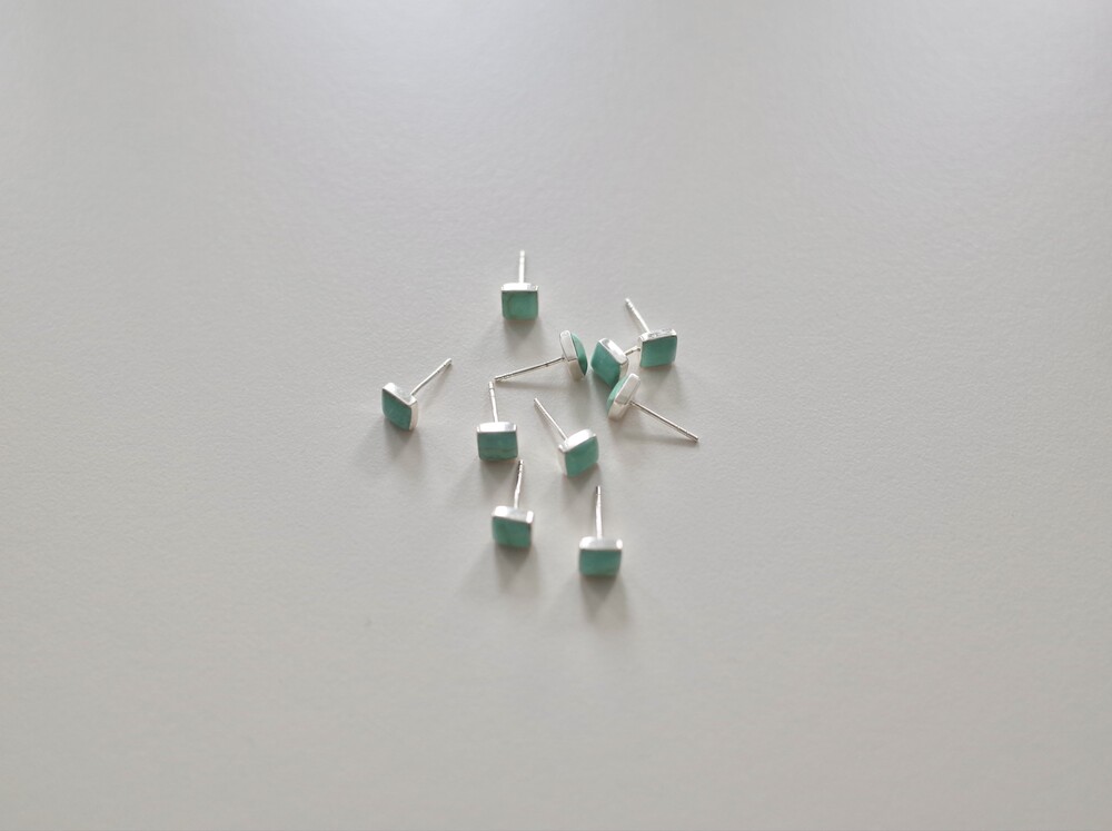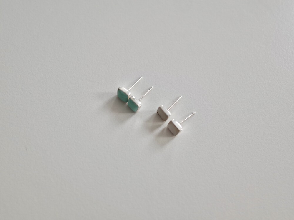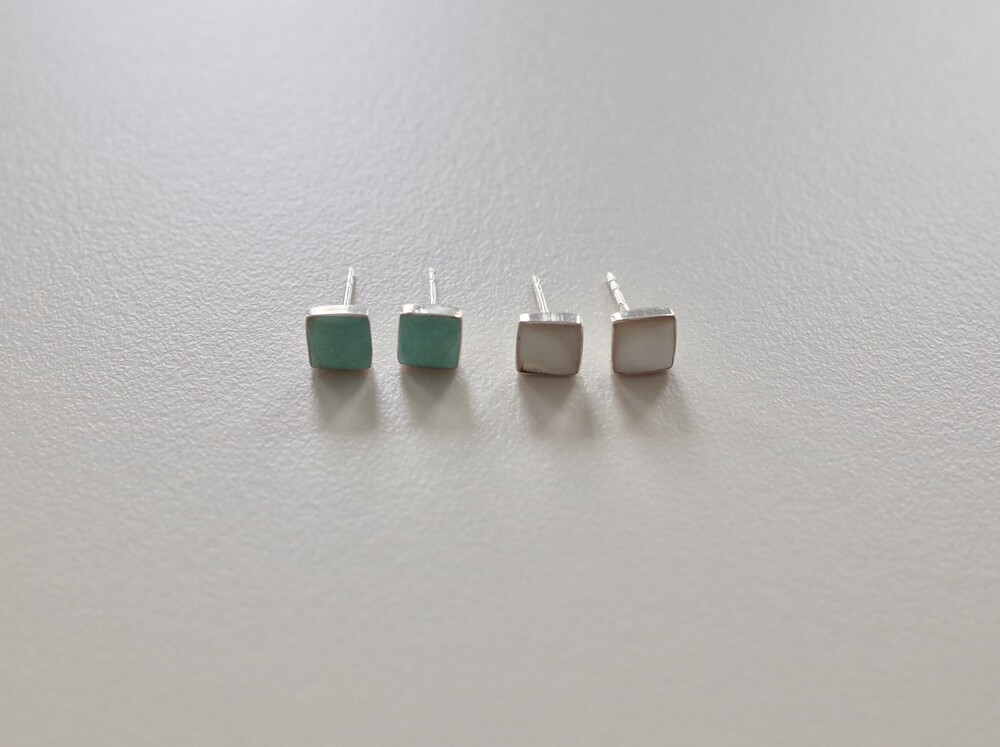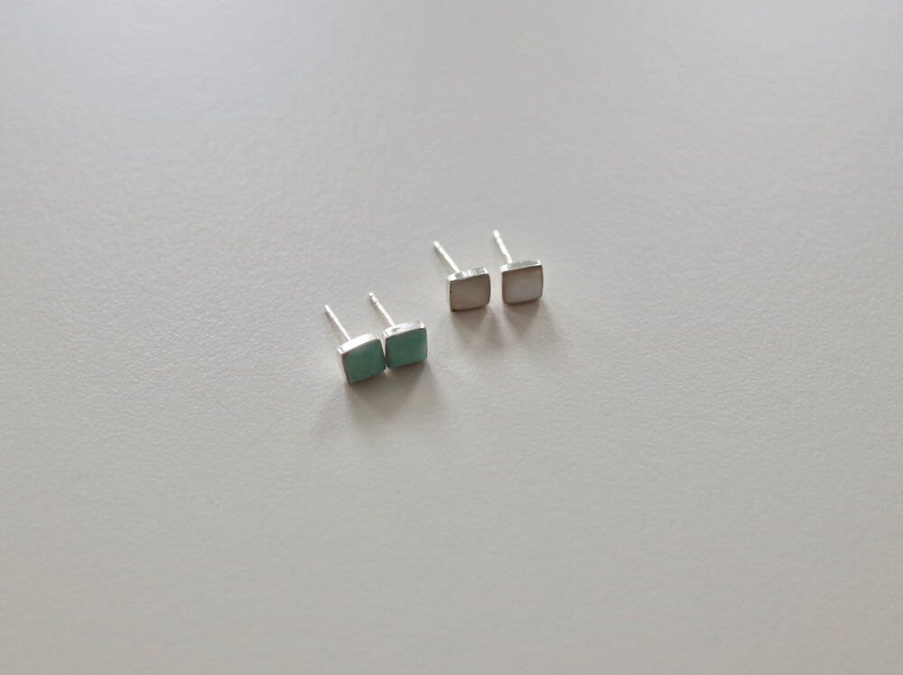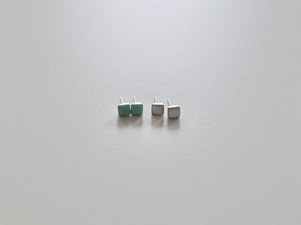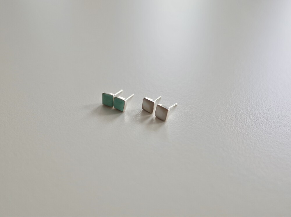 스퀘어 모양에 원석 이어링입니다. 크기가 크지 않아 데일리 아이템으로 추천합니다. 원석을 실버가 감싸고 있어 마감이 고급스럽고 과한 느낌 없이 은은하게 착용하기 좋습니다. 터키석은 더운 여름 포인트 컬러로 착용하기 좋으며 자개는 튀지 않은 컬러라 어떤 룩에도 매치하기 좋습니다.