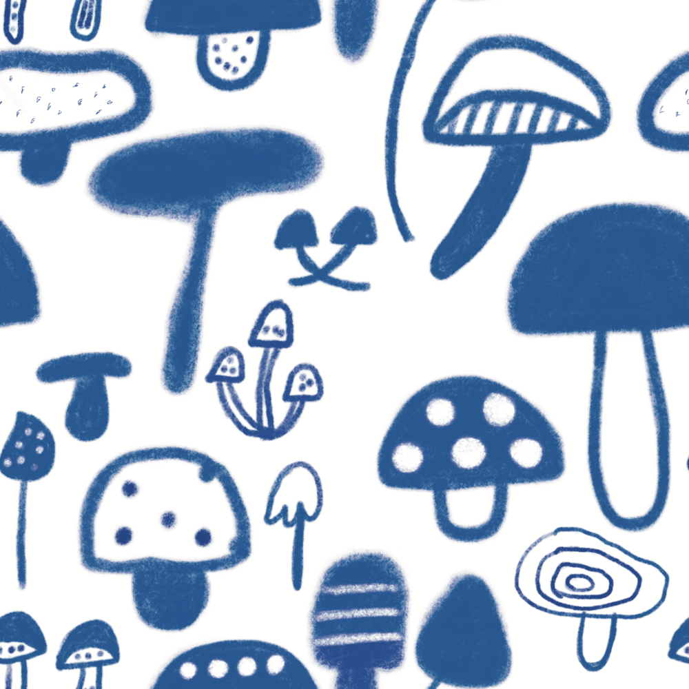 저에게는 말풍선 모양이 꼭 버섯처럼 보여 농도 짙은 파랑색을 사용해 다양한 버섯을 그렸습니다.