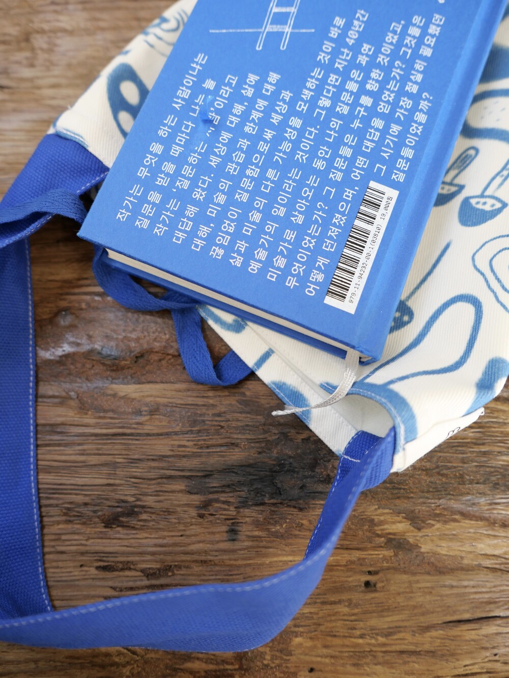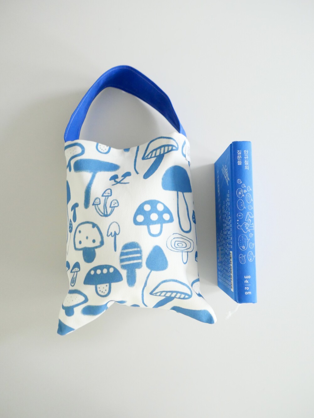 책 ‘ 안규철의 질문들' 에서 영감를 얻어 제작한 패브릭으로 슬기로운생활에서 직접 만든 핸드메이드 북백입니다.