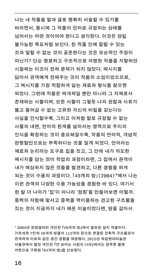 ‘반복을 통해 결과를 만들어 내는, 그 작품 속에 들어 있는 보이지 않는 세계’를 보아내는 것이 예술이라면 말입니다.