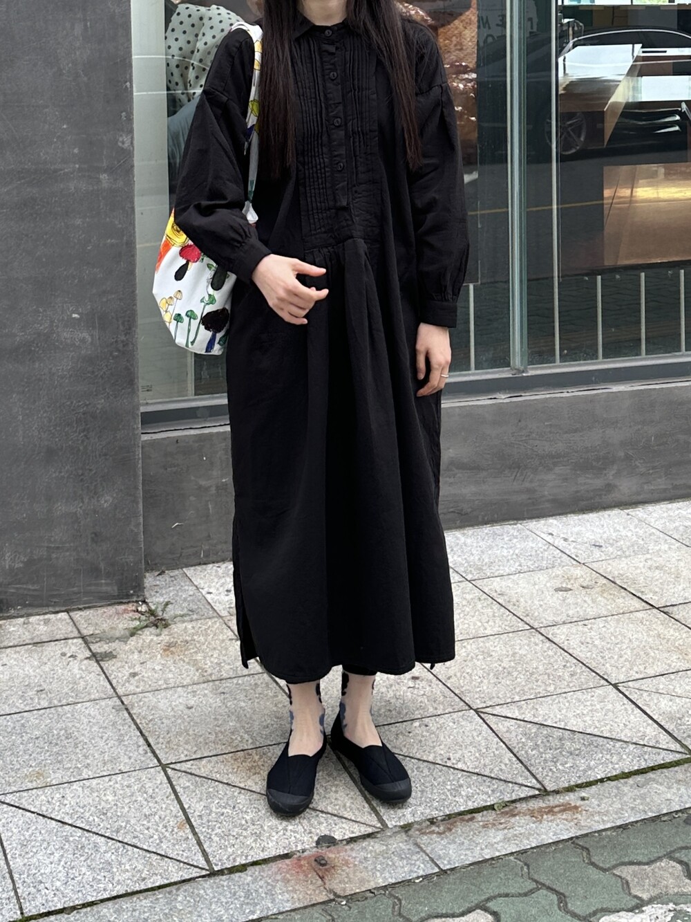 시스루에 큼직한 플라워 패턴이 유니크하고 귀엽습니다.
