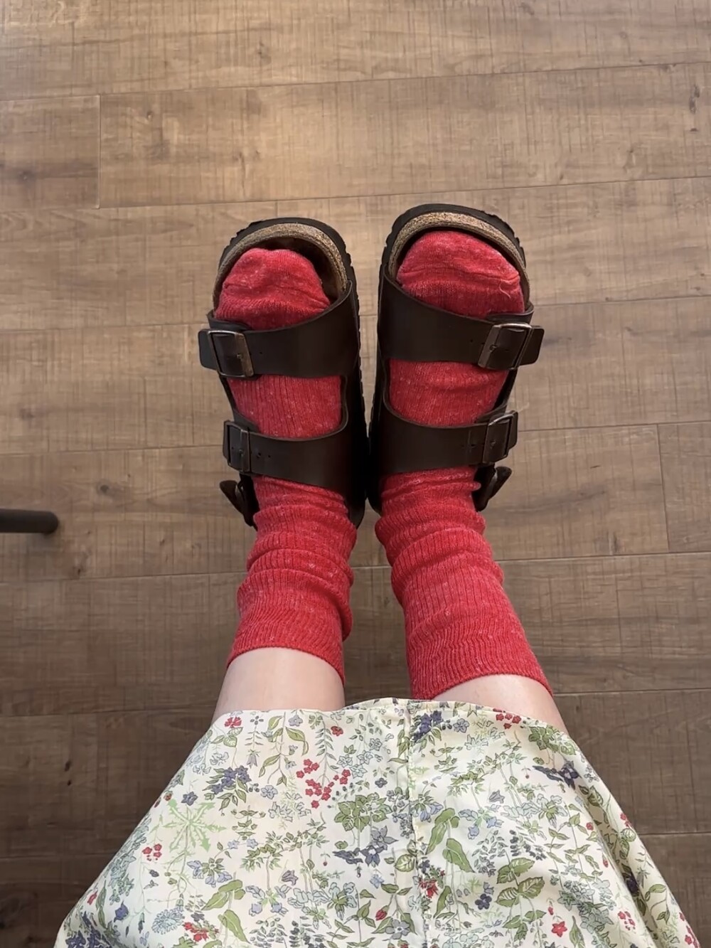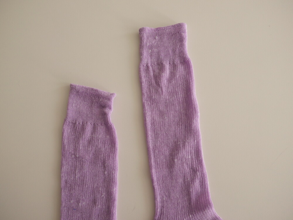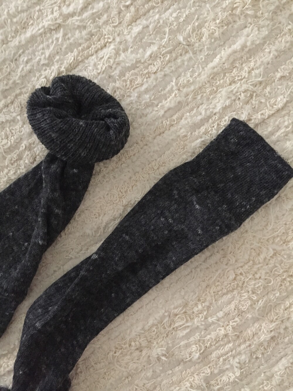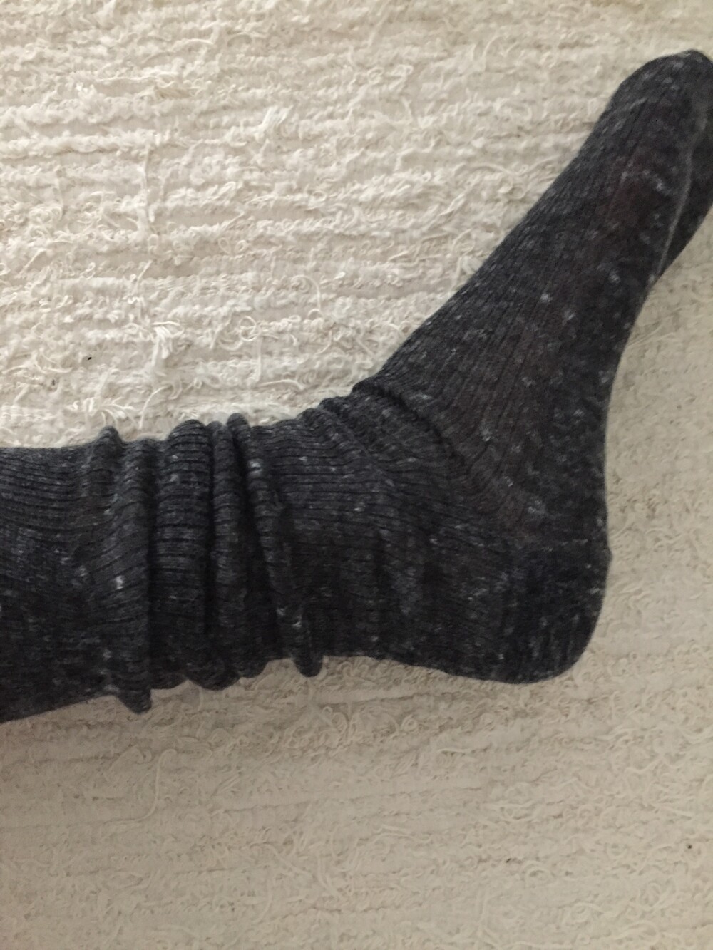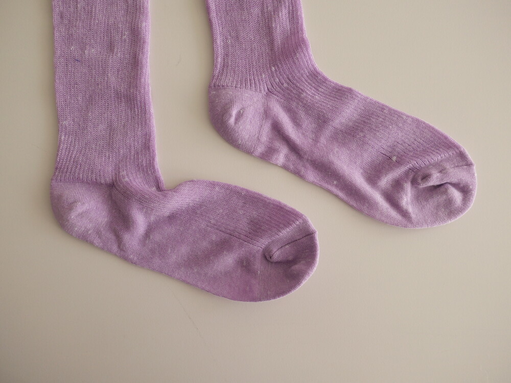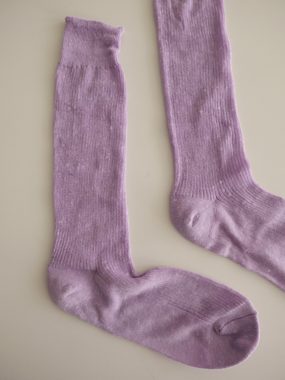 화이트 칩이 콕콕 박힌 빈티지한 색감의 목길이가 긴 양말입니다.