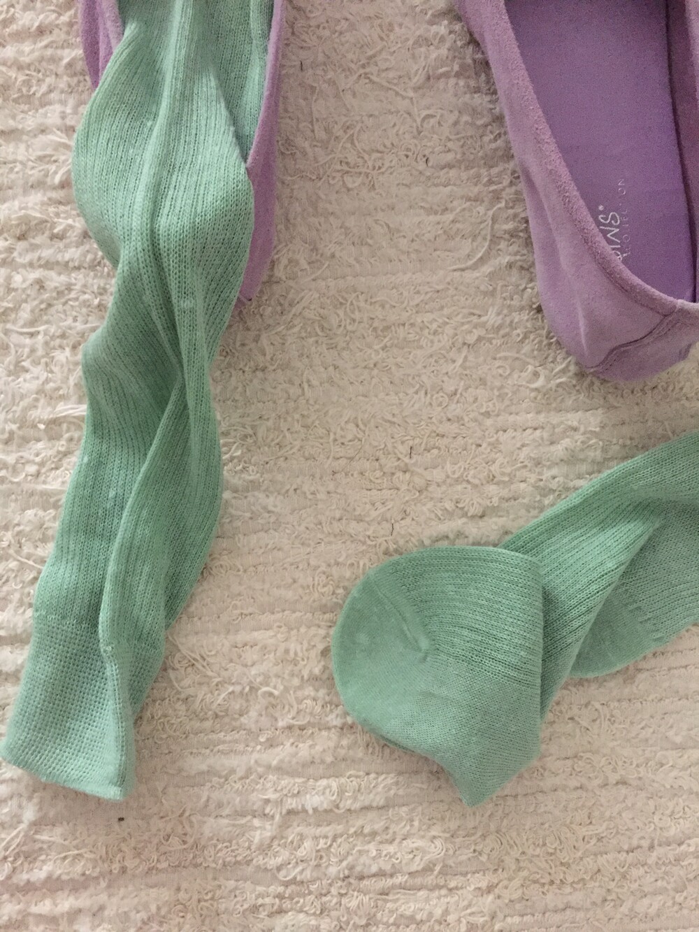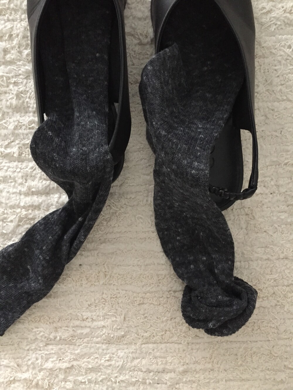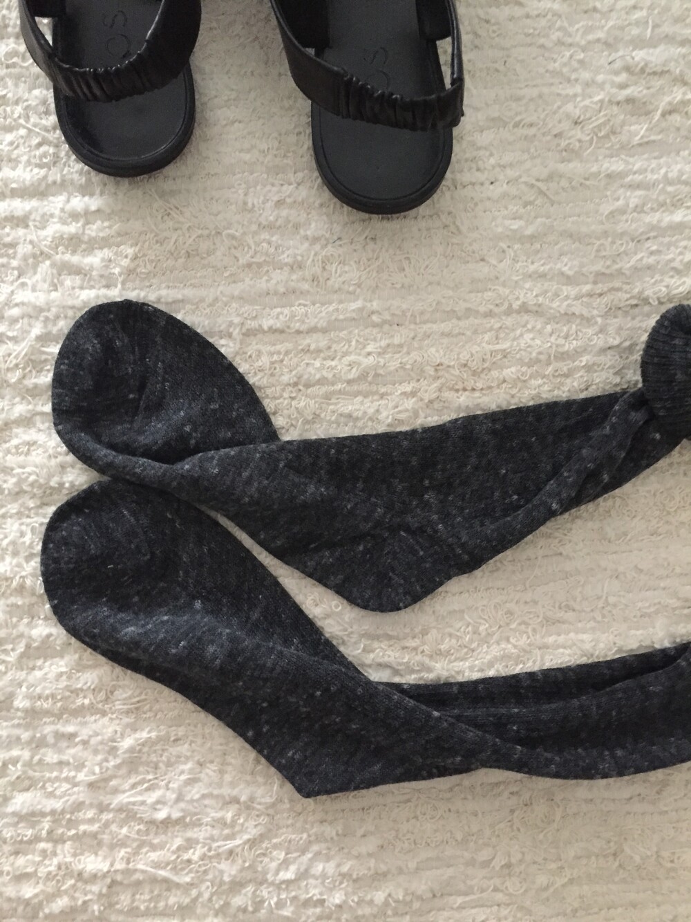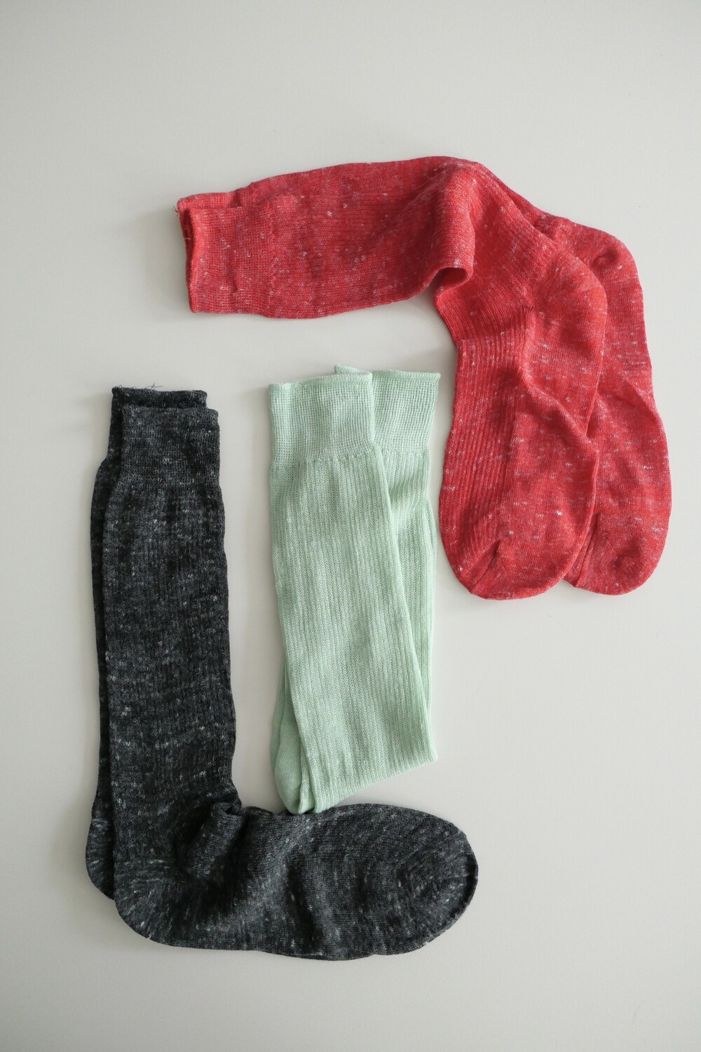 화이트 칩이 콕콕 박힌 빈티지한 색감의 목길이가 긴 양말입니다.