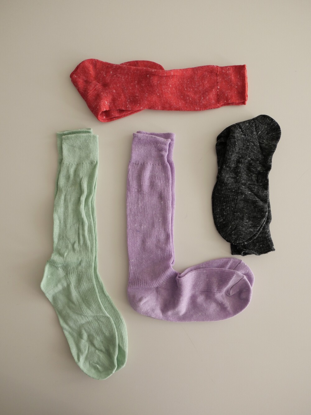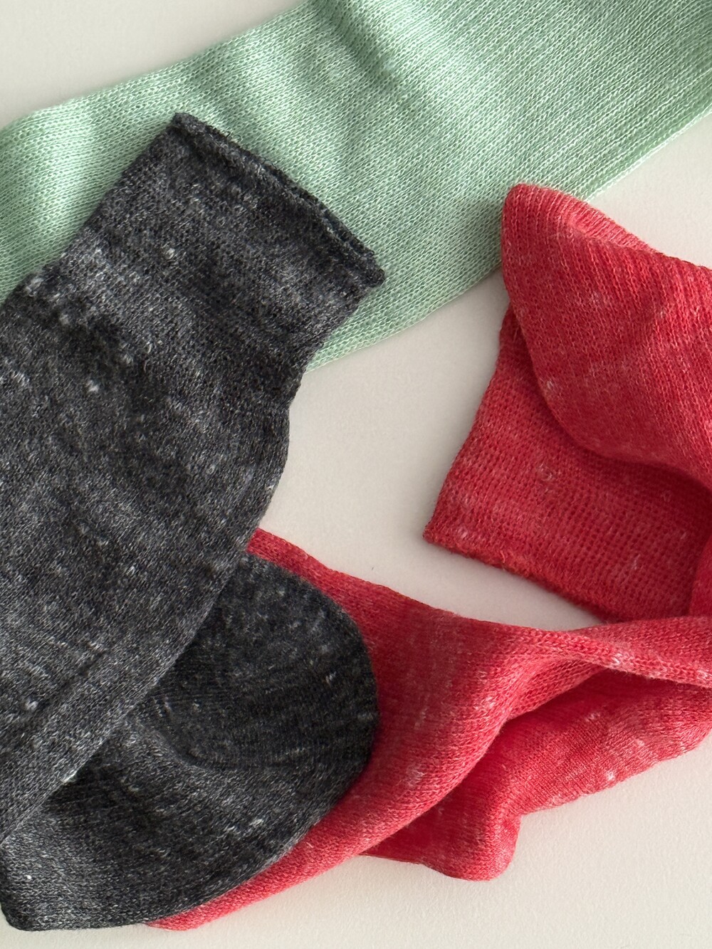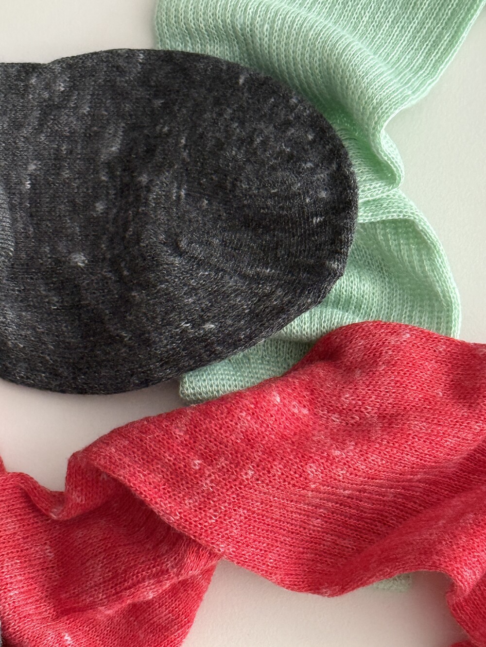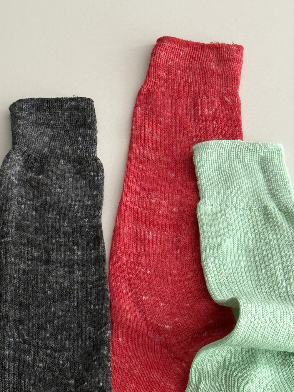 니트 느낌이지만 레이온 함유가 높아 여름에도 신기 좋습니다.