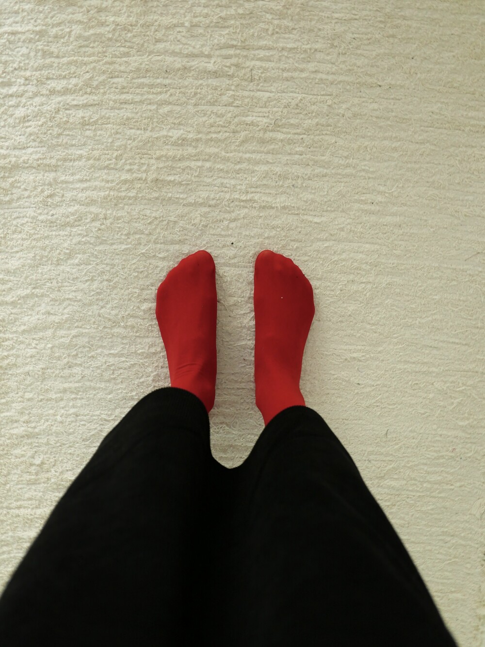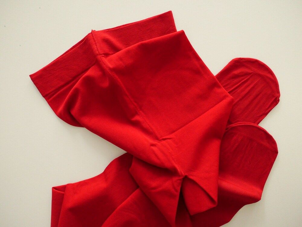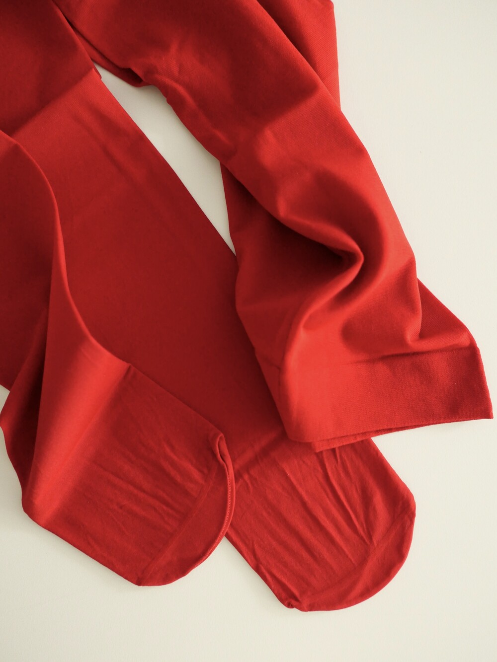 선명한 레드톤이 시선을 사로잡는 클래식 스타킹입니다.