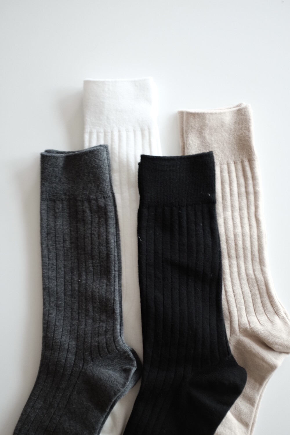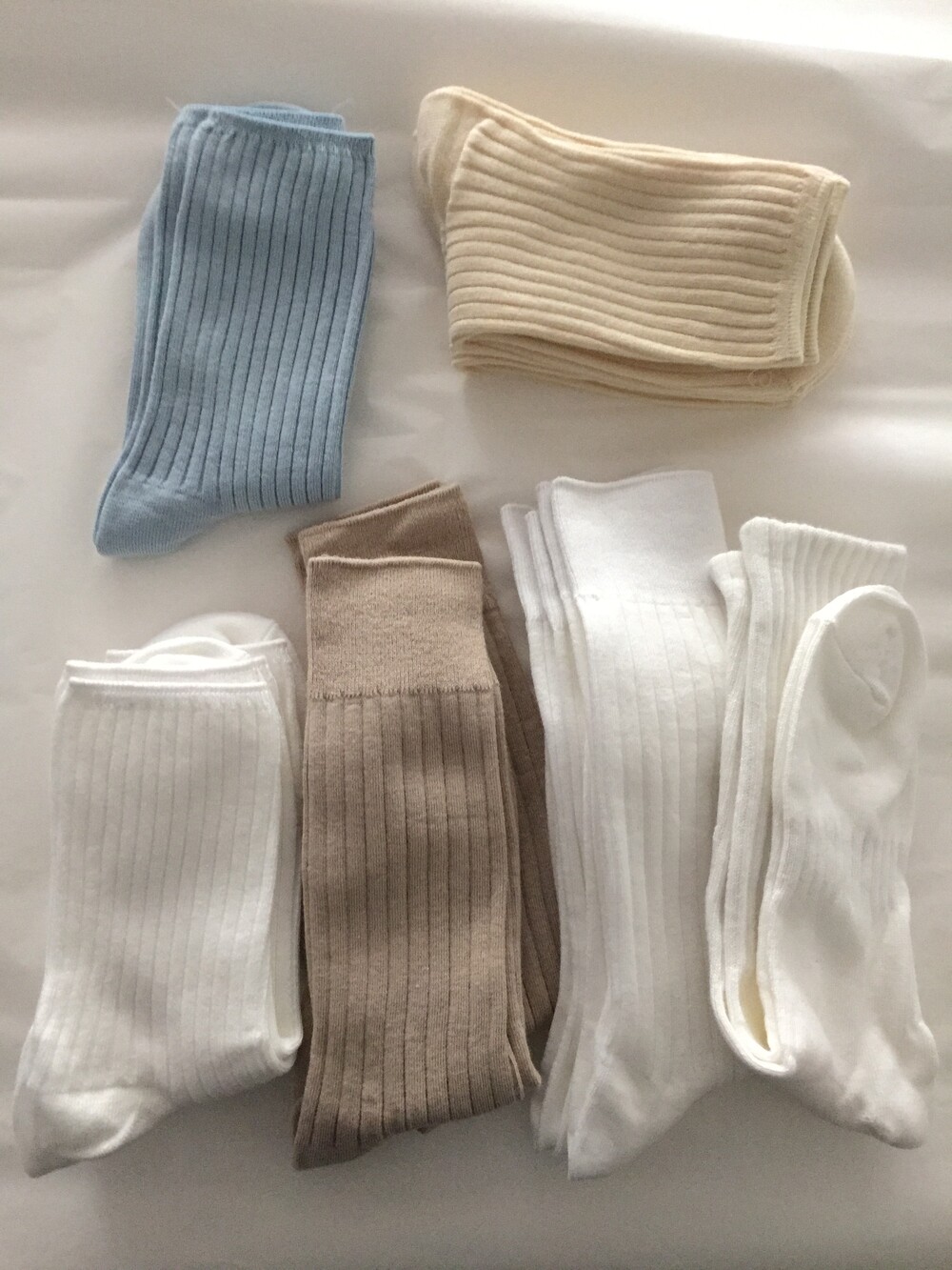 심플하고 베이직한 스타일로 사계절 신기 좋습니다. 어떤 룩에도 어우러지고 쉽게 늘어나지 않는 양말입니다.