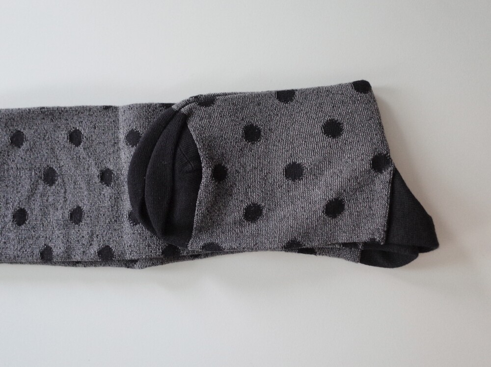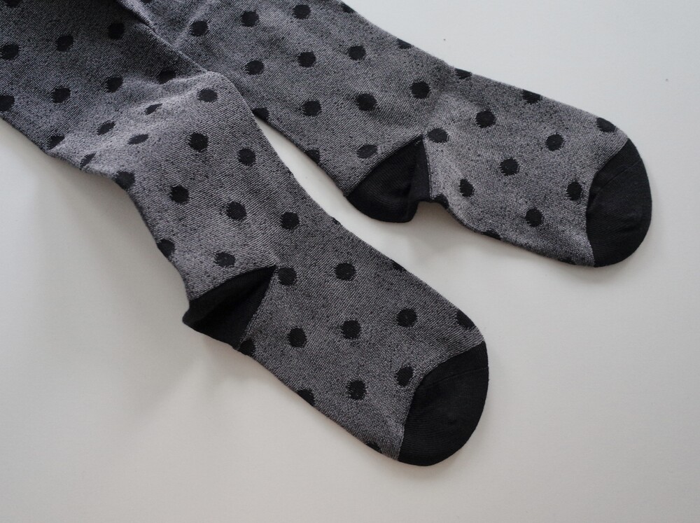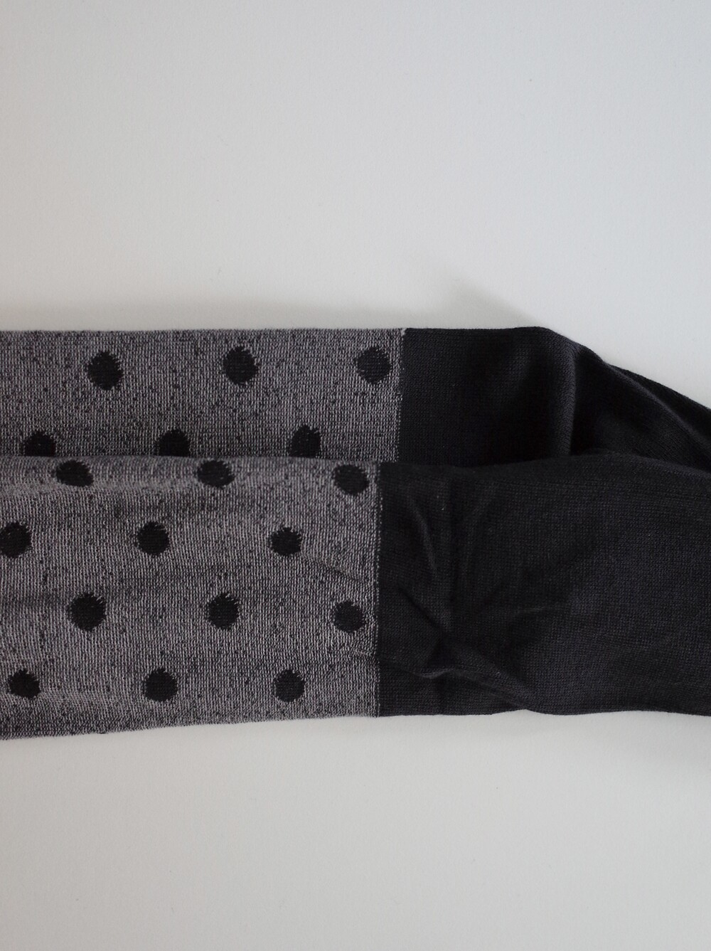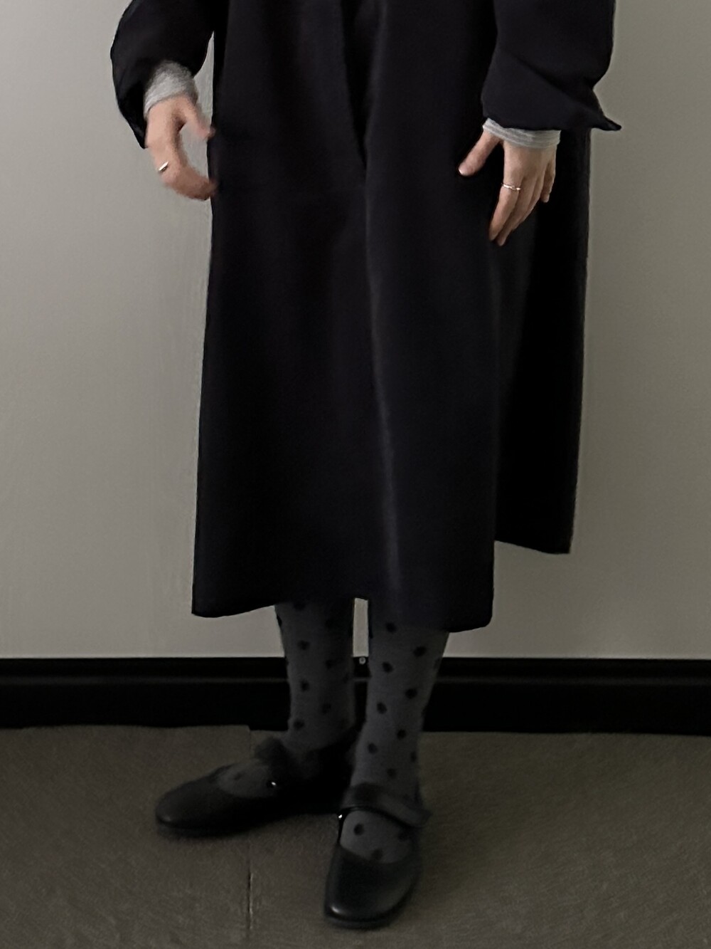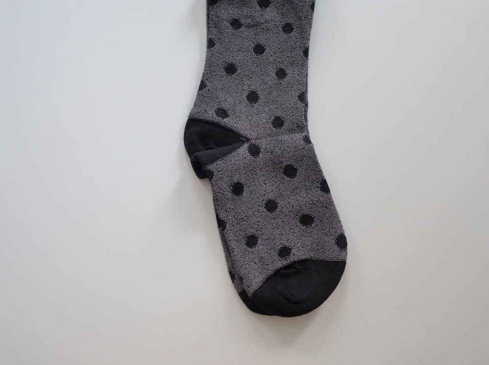 신축성이 좋고 터치감이 부드러워 자극 없이 착용 가능합니다. 차콜 컬러에 블랙 도트로 배색이 과하지 않아 매치하기 좋습니다.