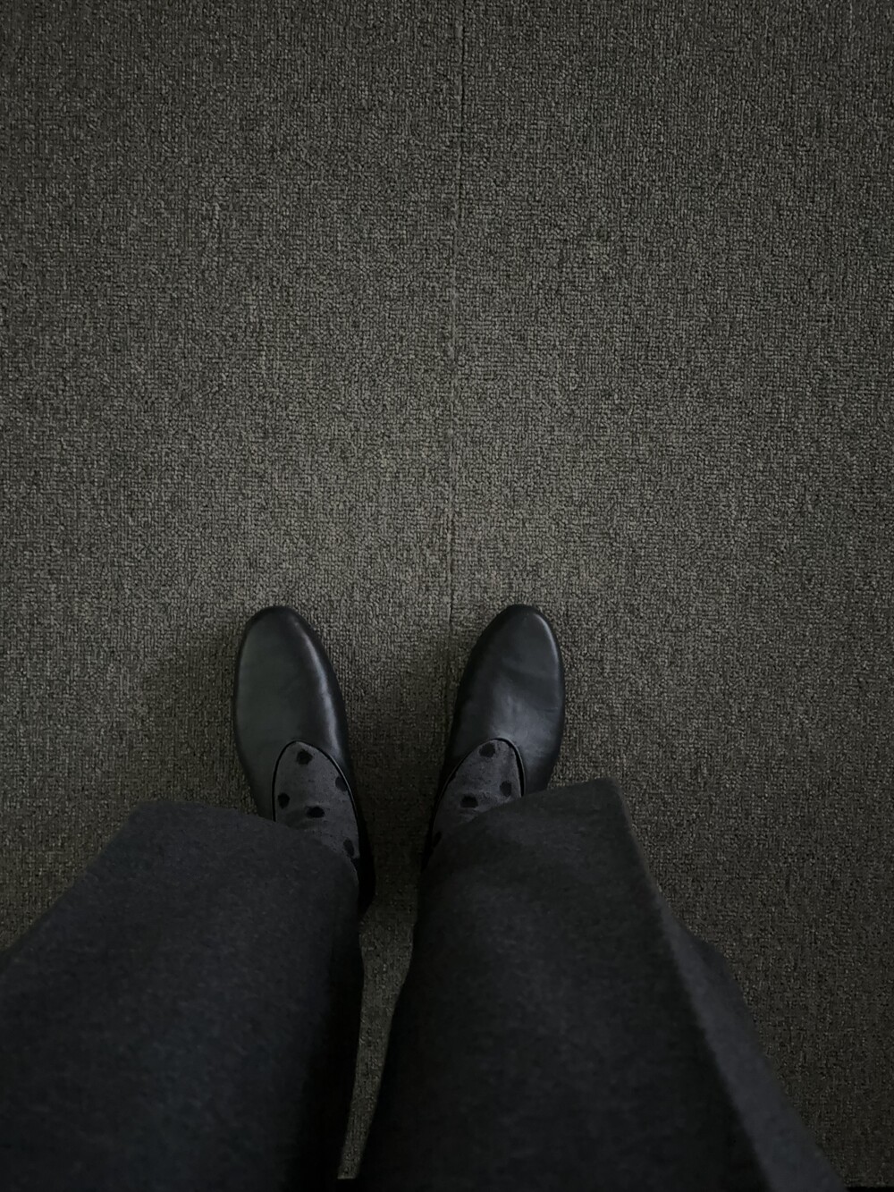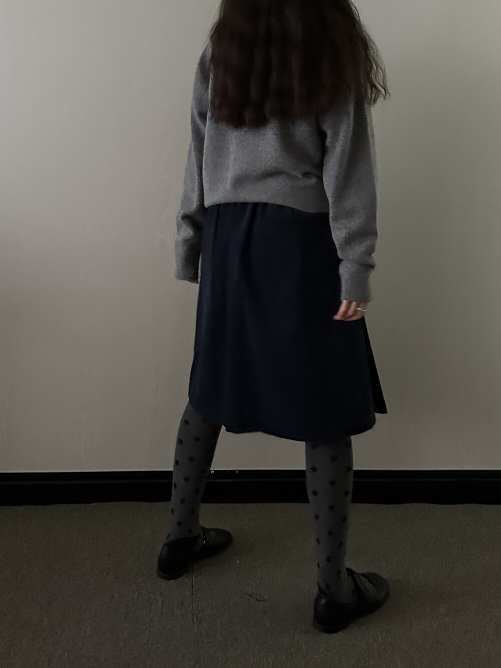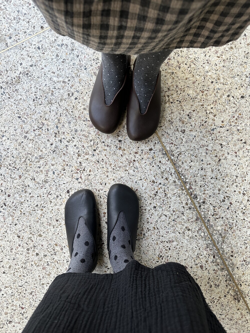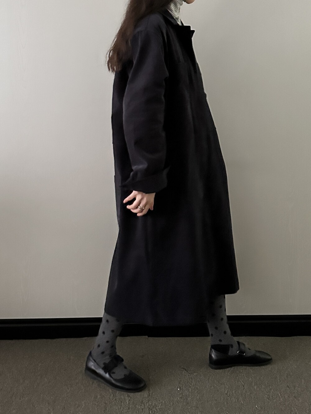 신축성이 좋고 터치감이 부드러워 자극 없이 착용 가능합니다. 차콜 컬러에 블랙 도트로 배색이 과하지 않아 매치하기 좋습니다.