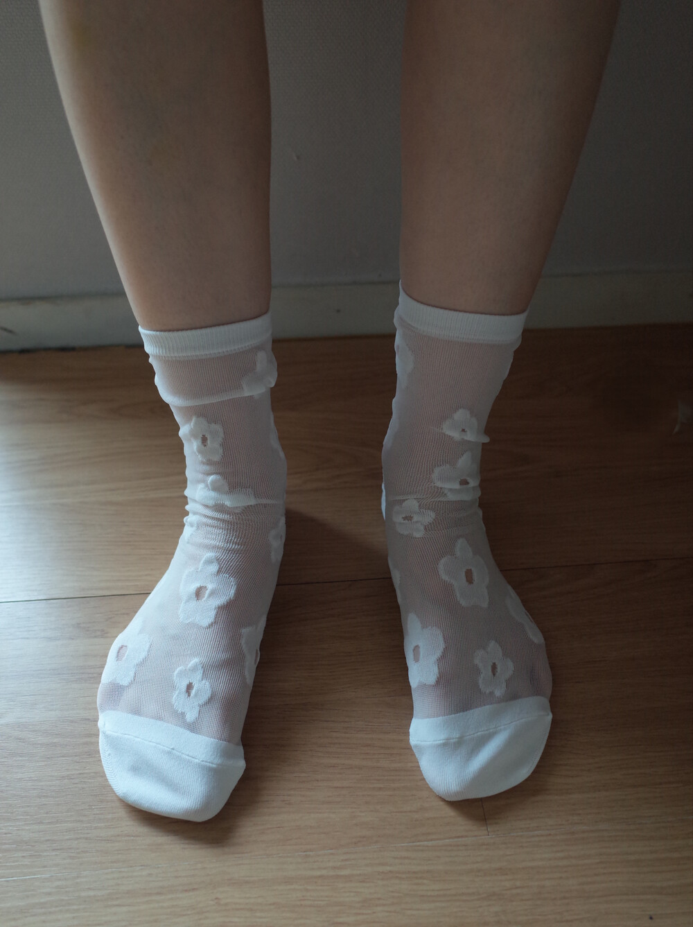 시스루에 플라워 무늬가 매력적인 양말입니다.
