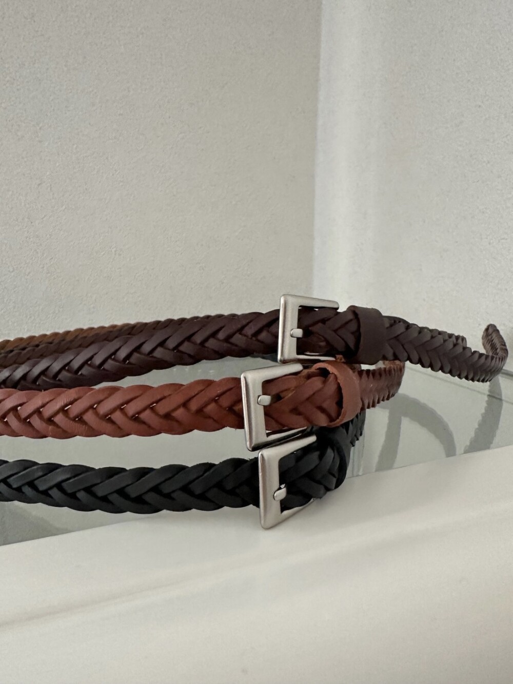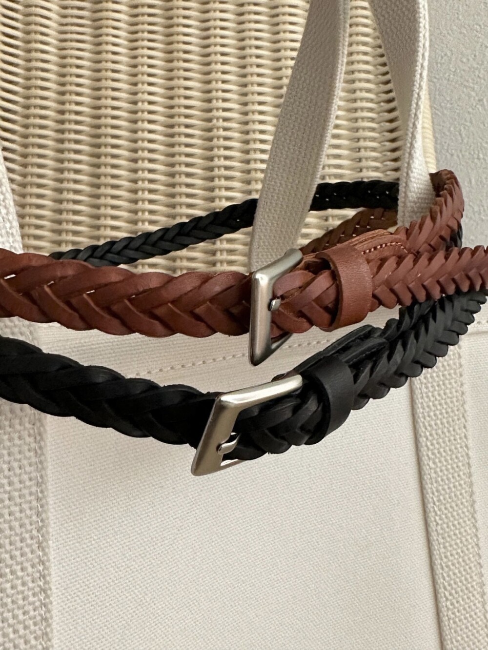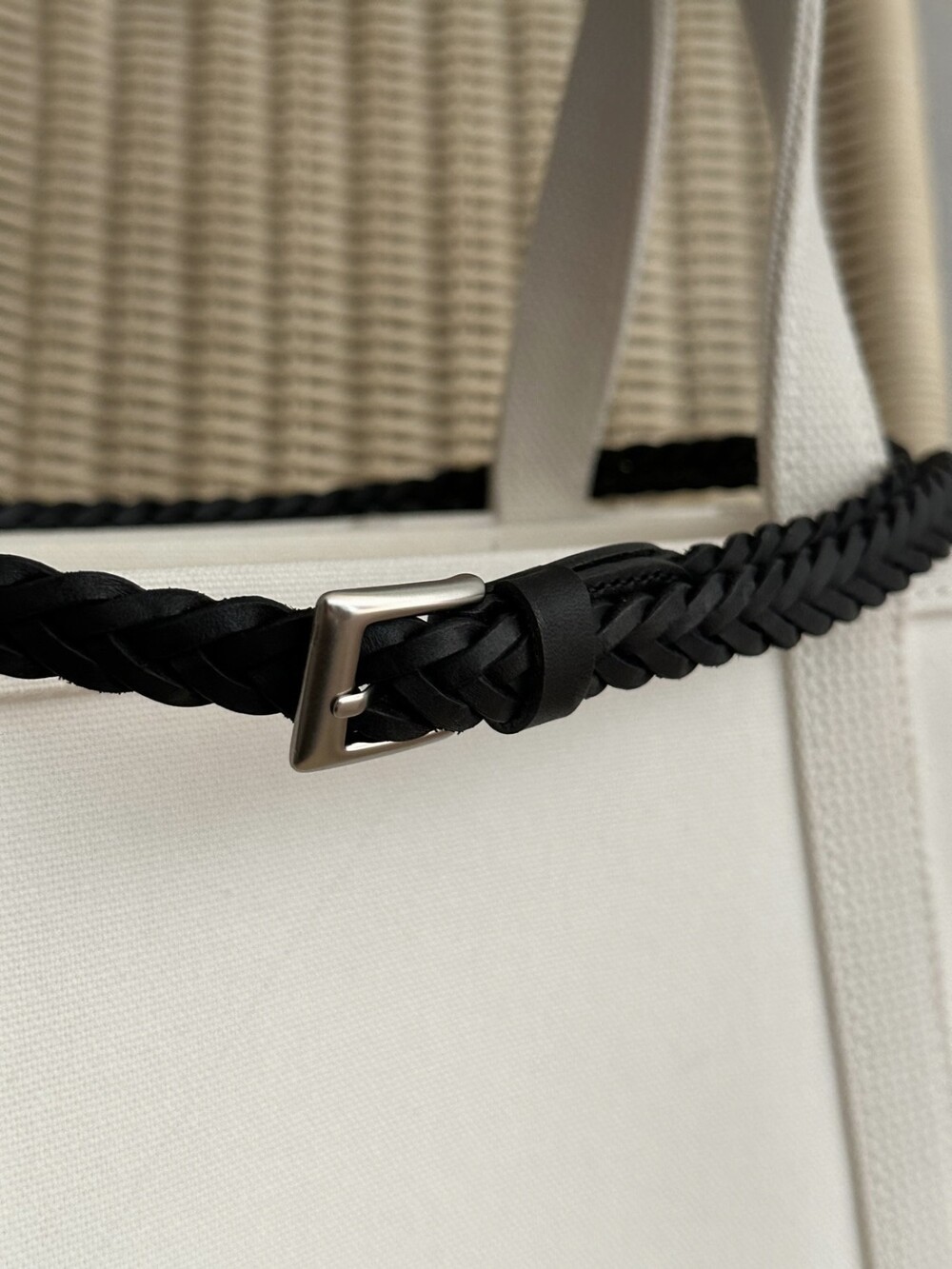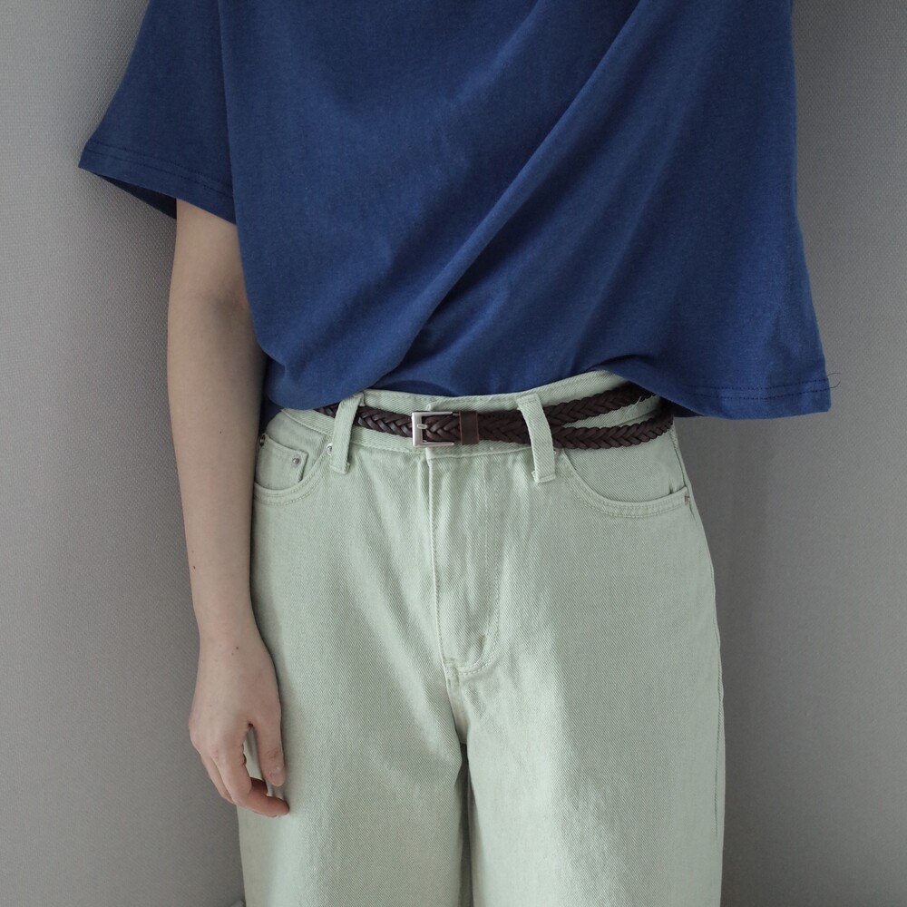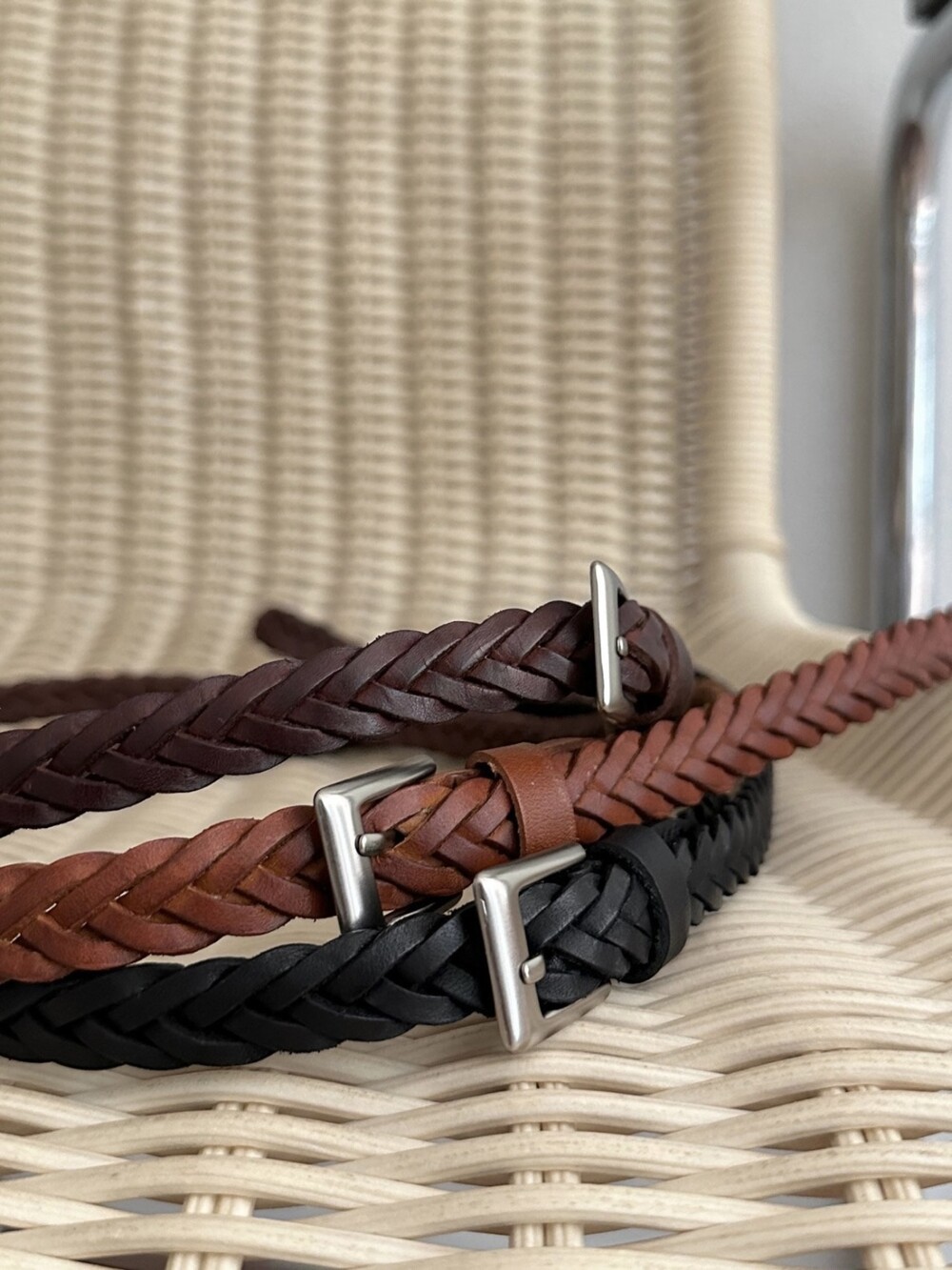 얇은 폭으로 다양하게 매치하기 좋은 위빙 디자인 벨트입니다.
