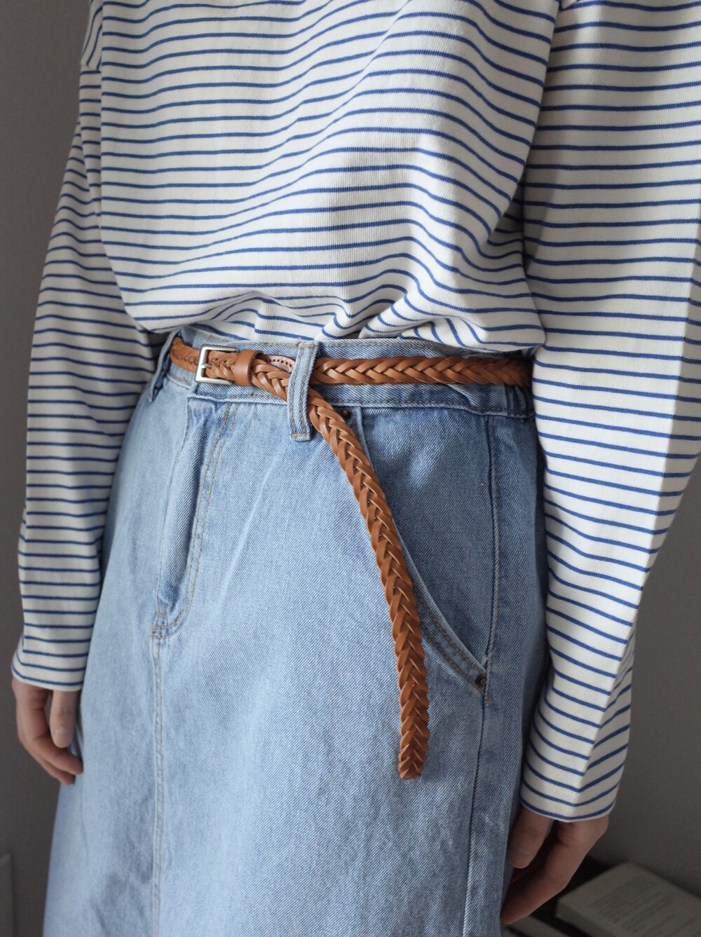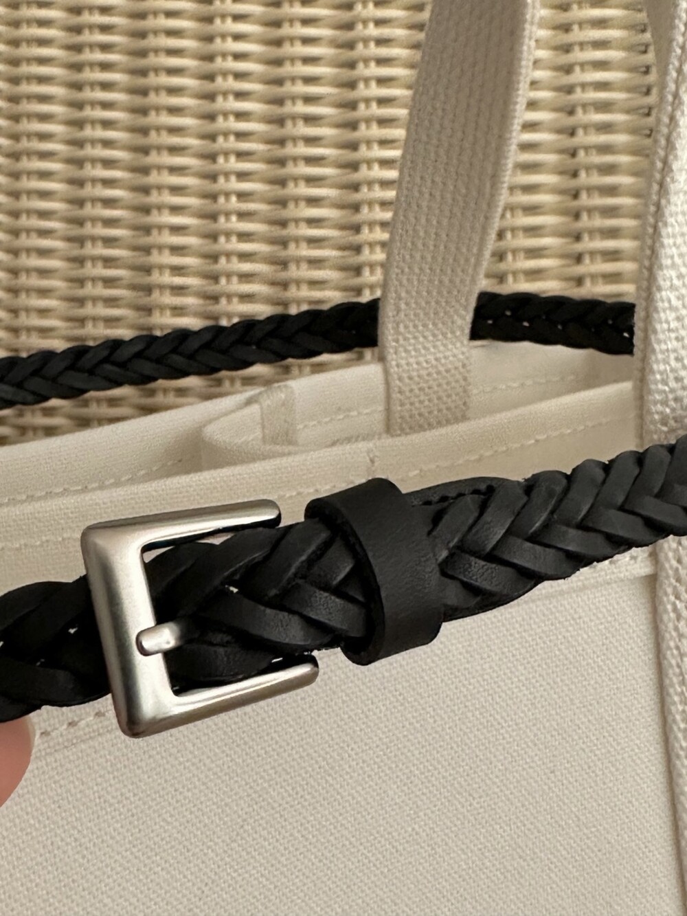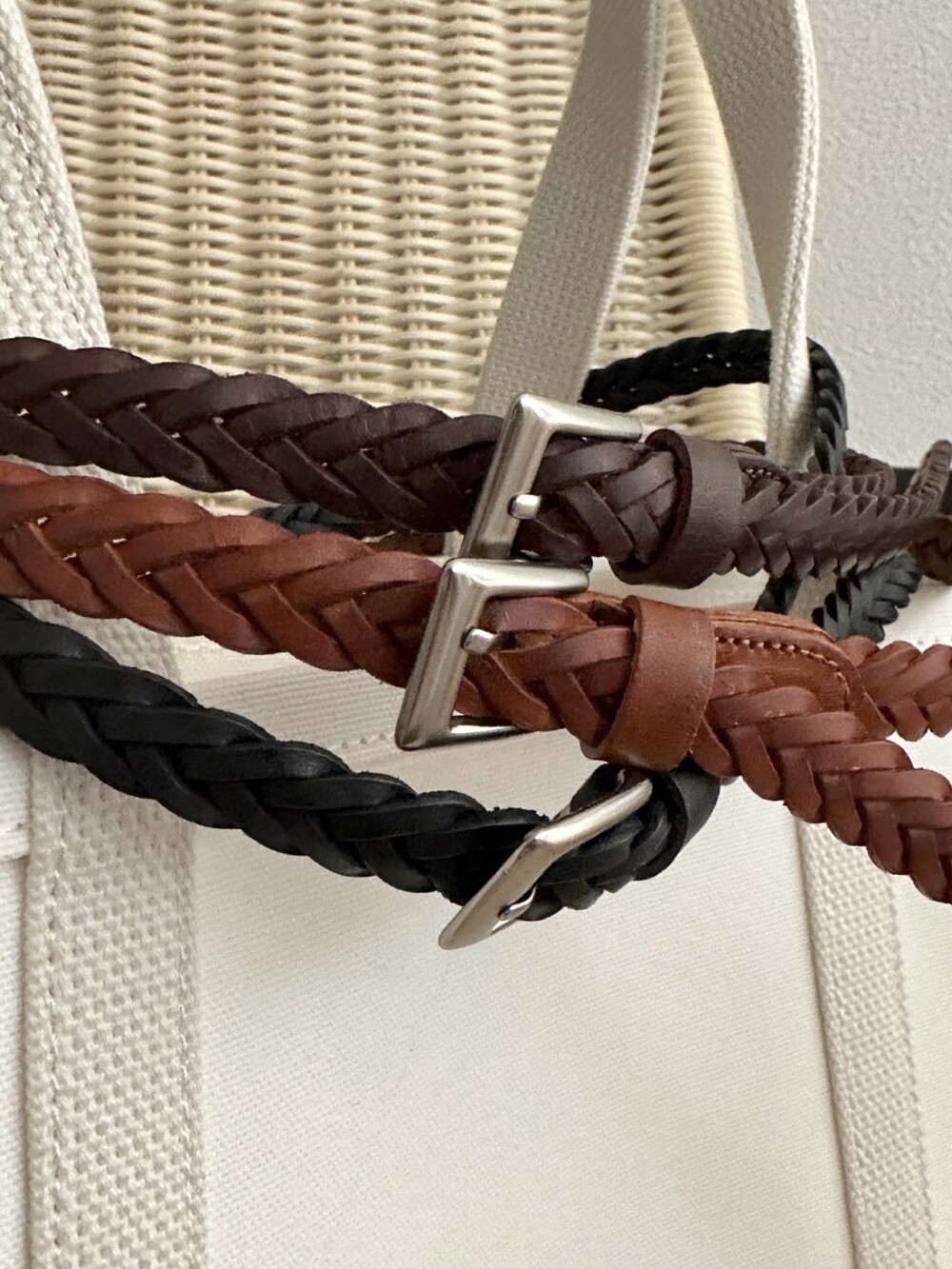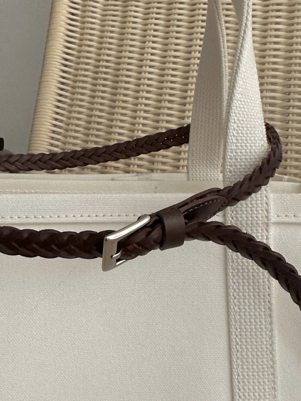 얇은 폭으로 다양하게 매치하기 좋은 위빙 디자인 벨트입니다.