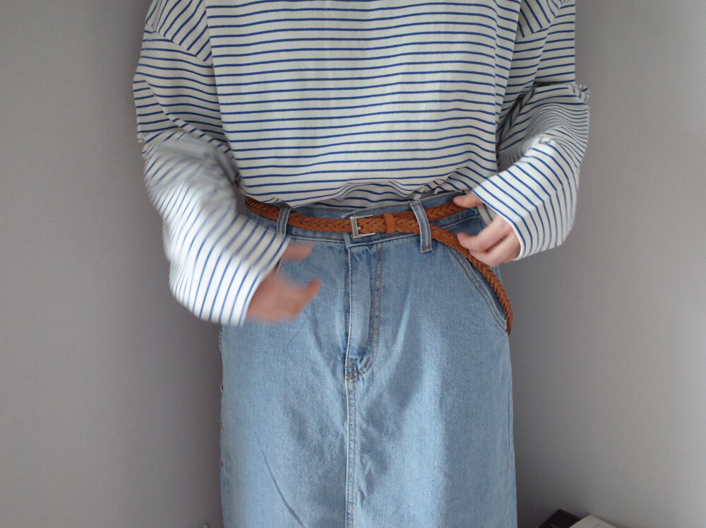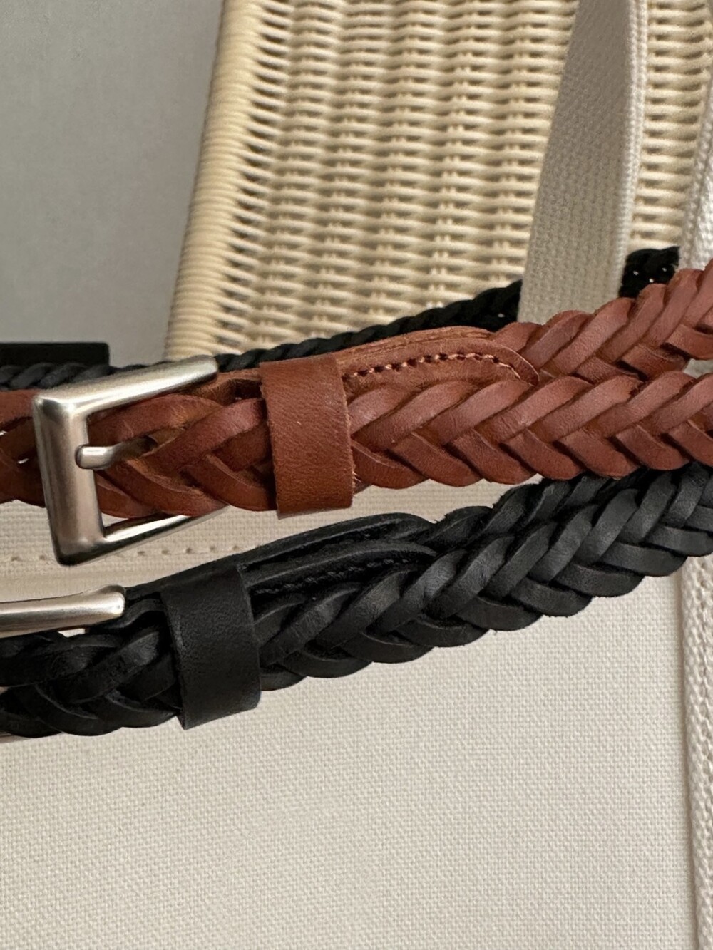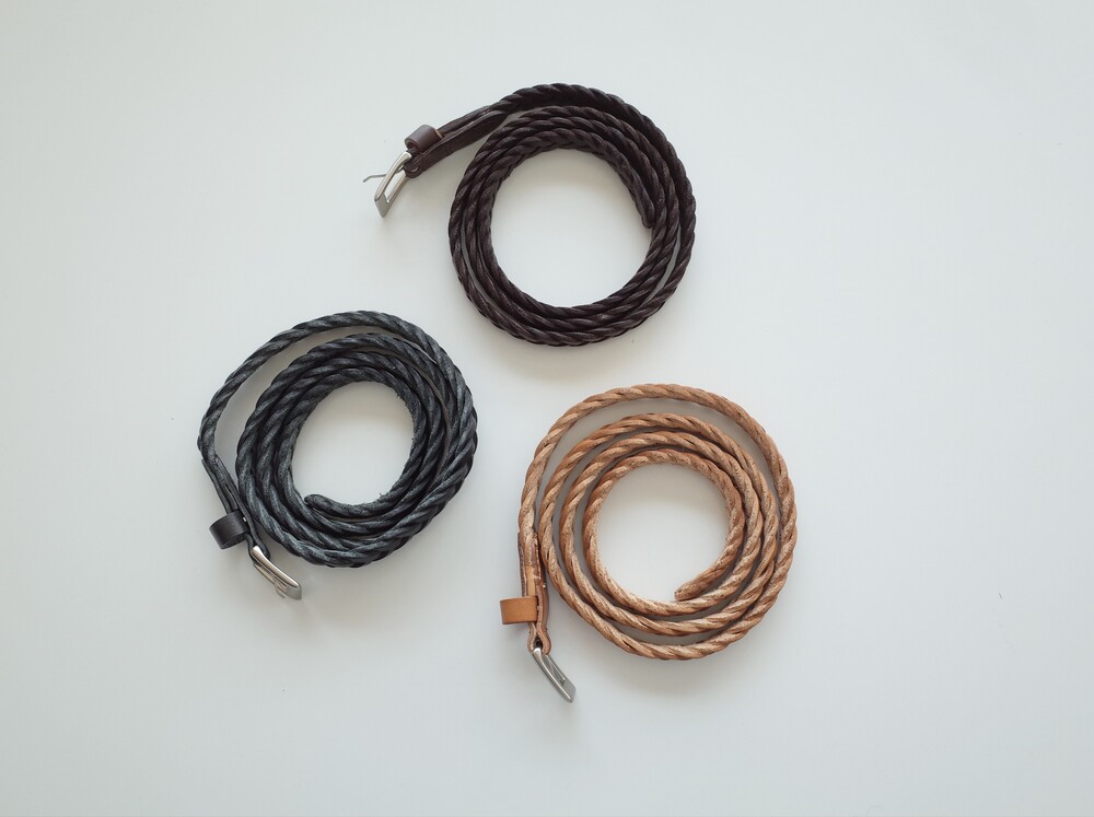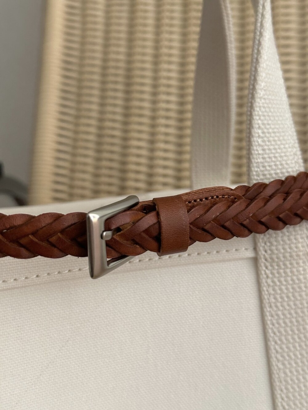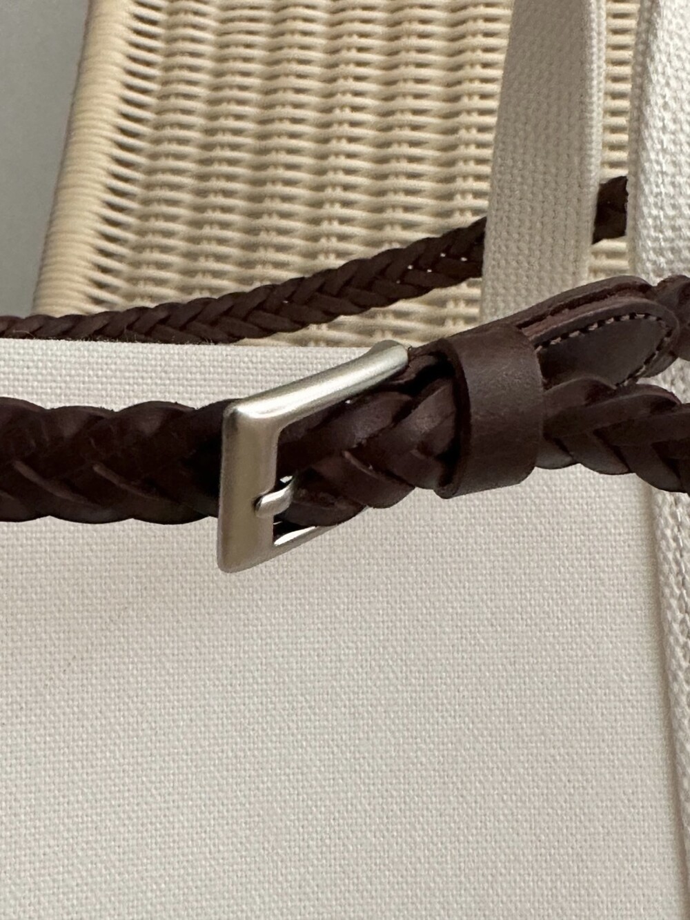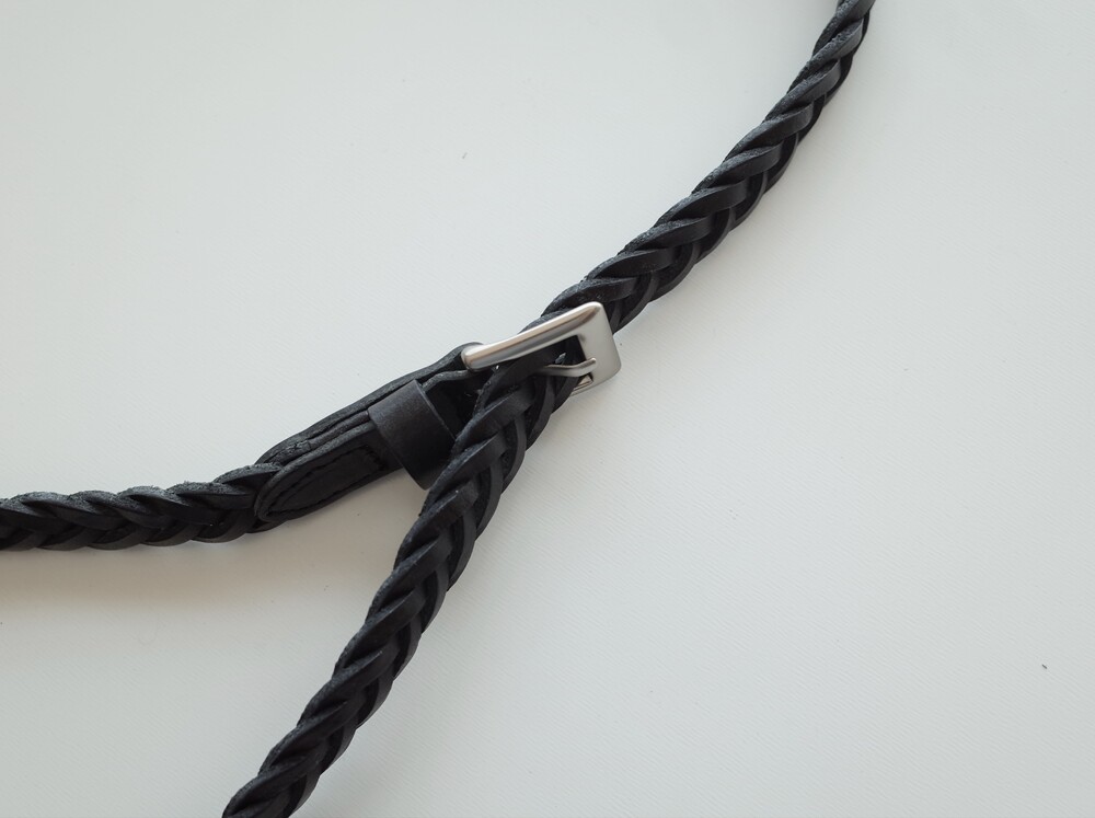 얇은 폭으로 다양하게 매치하기 좋은 위빙 디자인 벨트입니다.